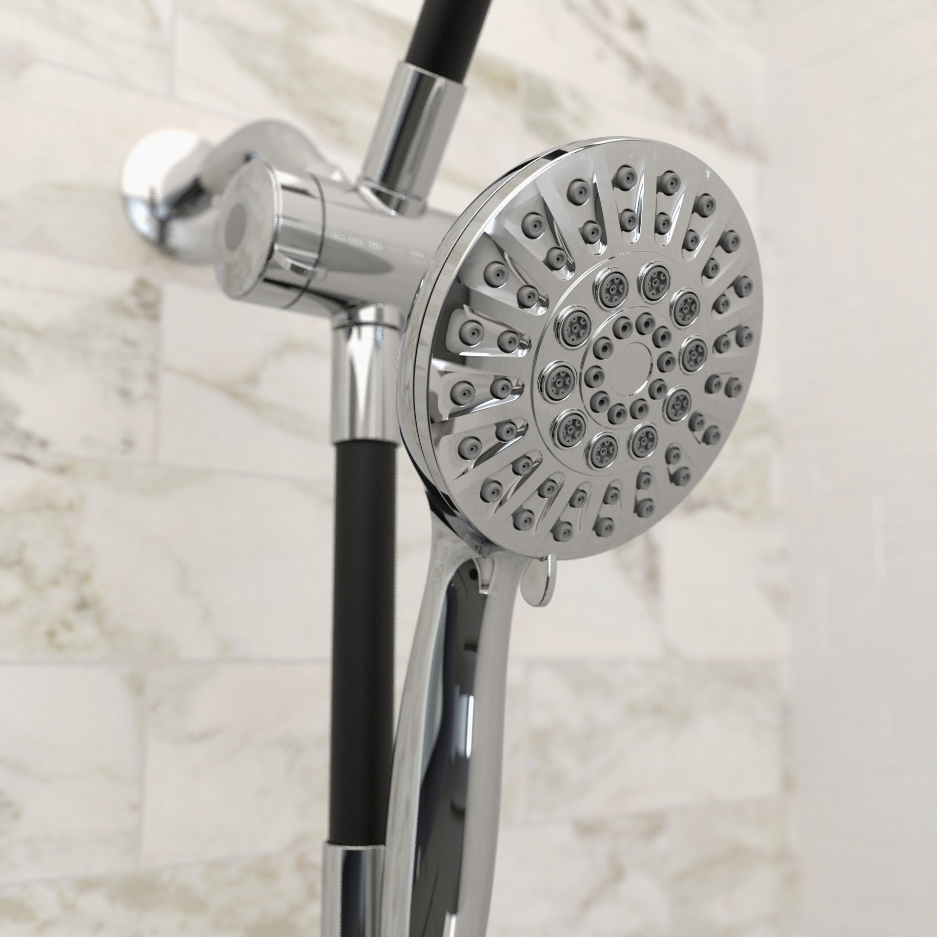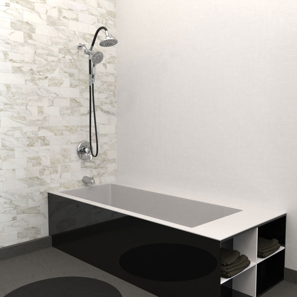 • Hand shower with 6 flow patterns, including pause, and a 59" PVC hose.