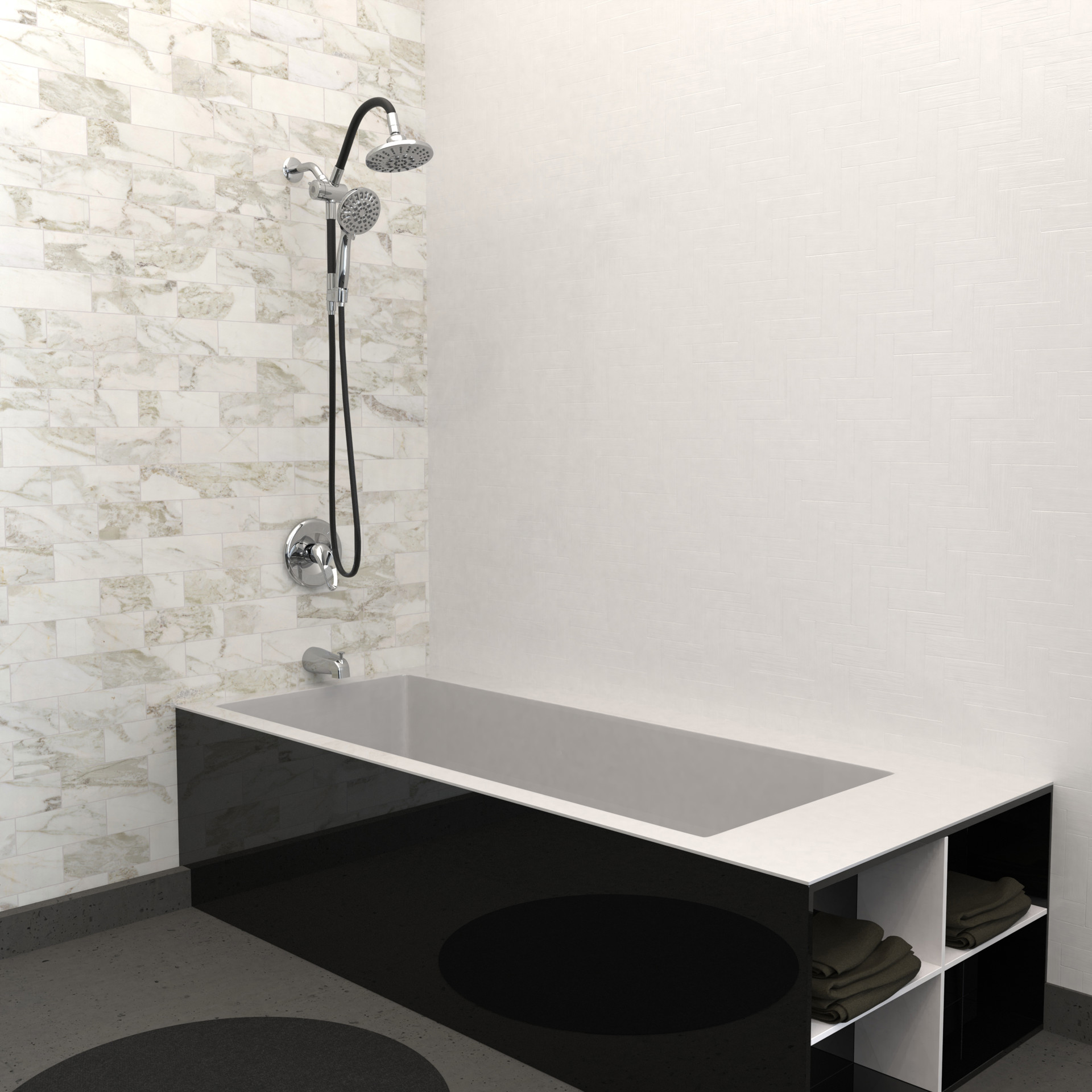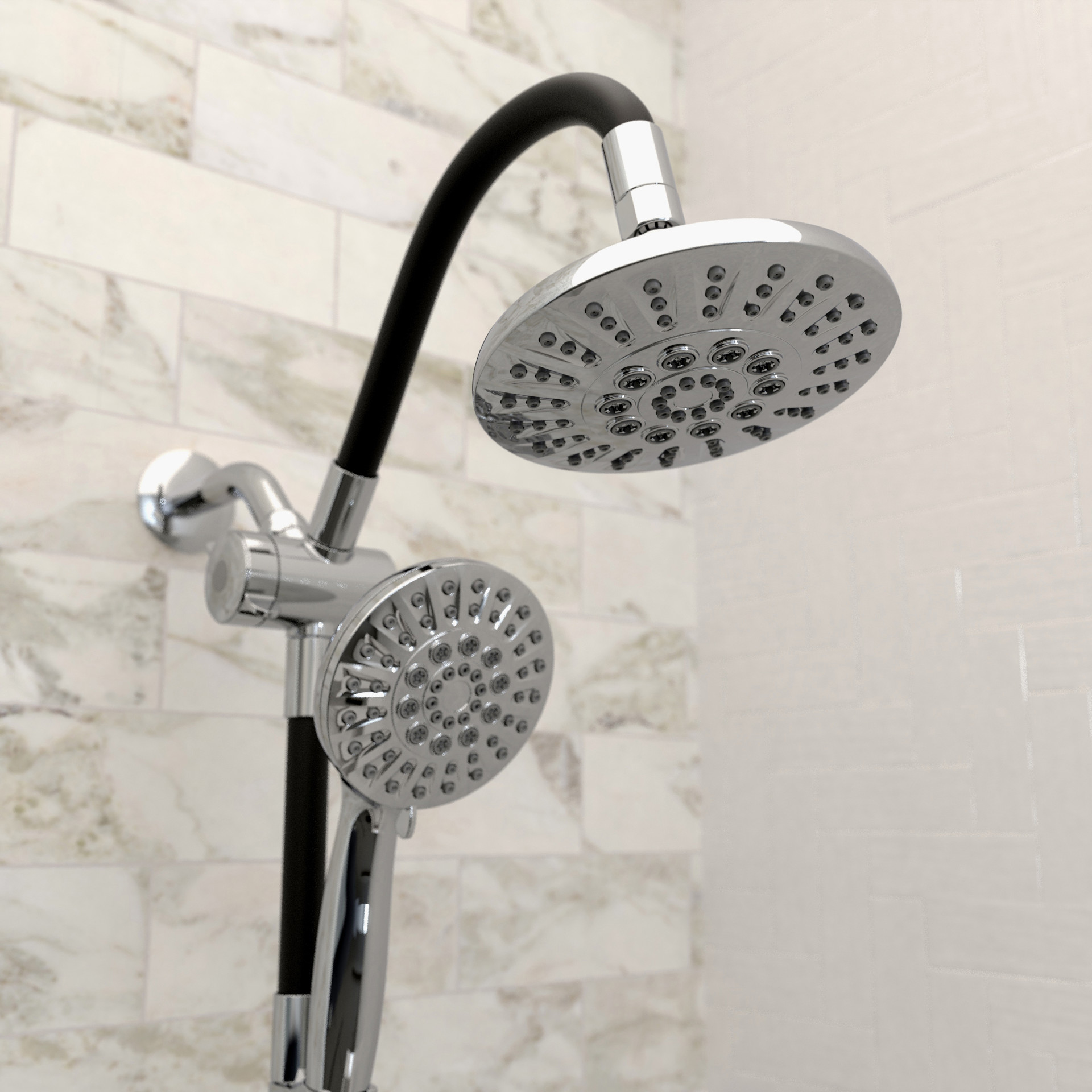 • Hand shower with hose and holder.