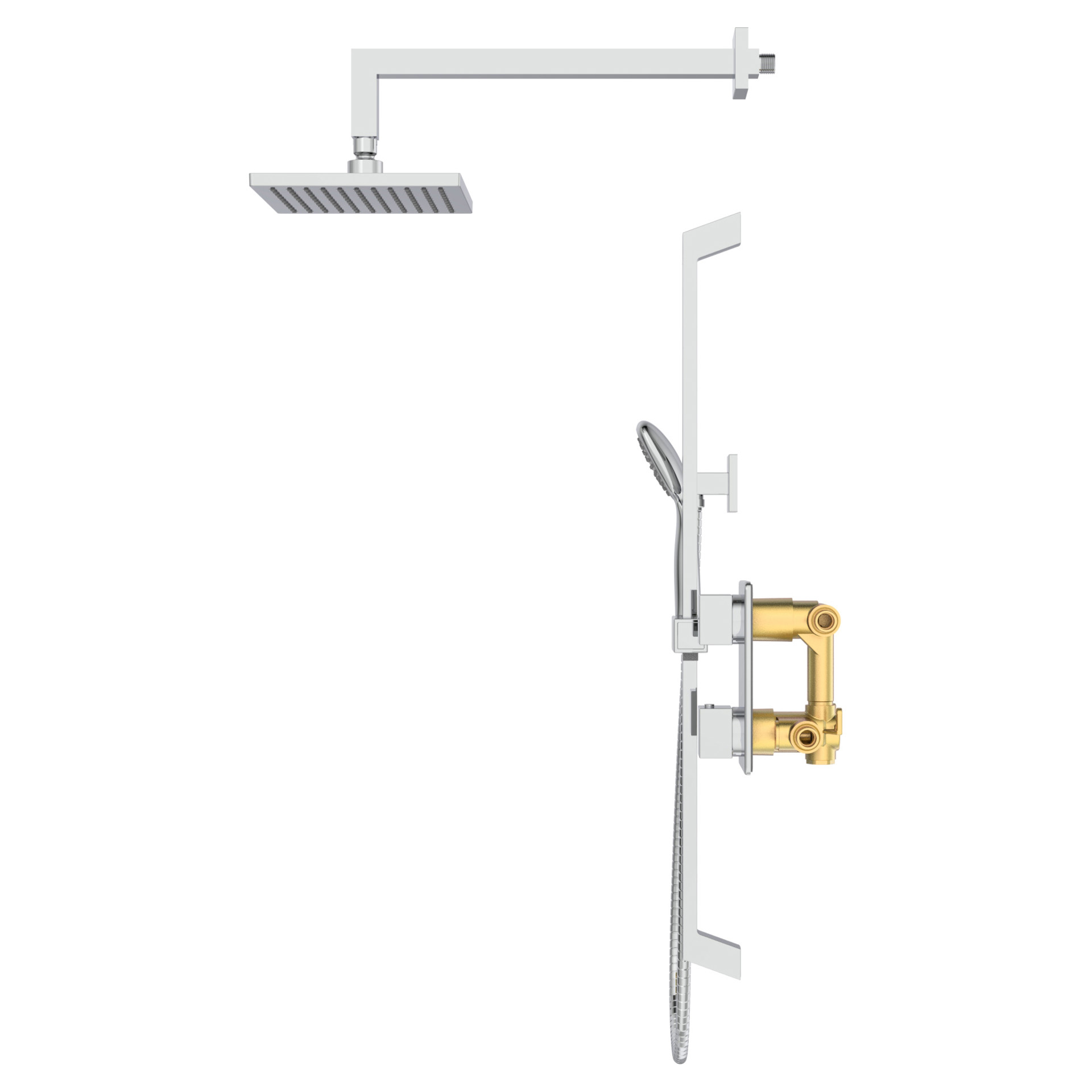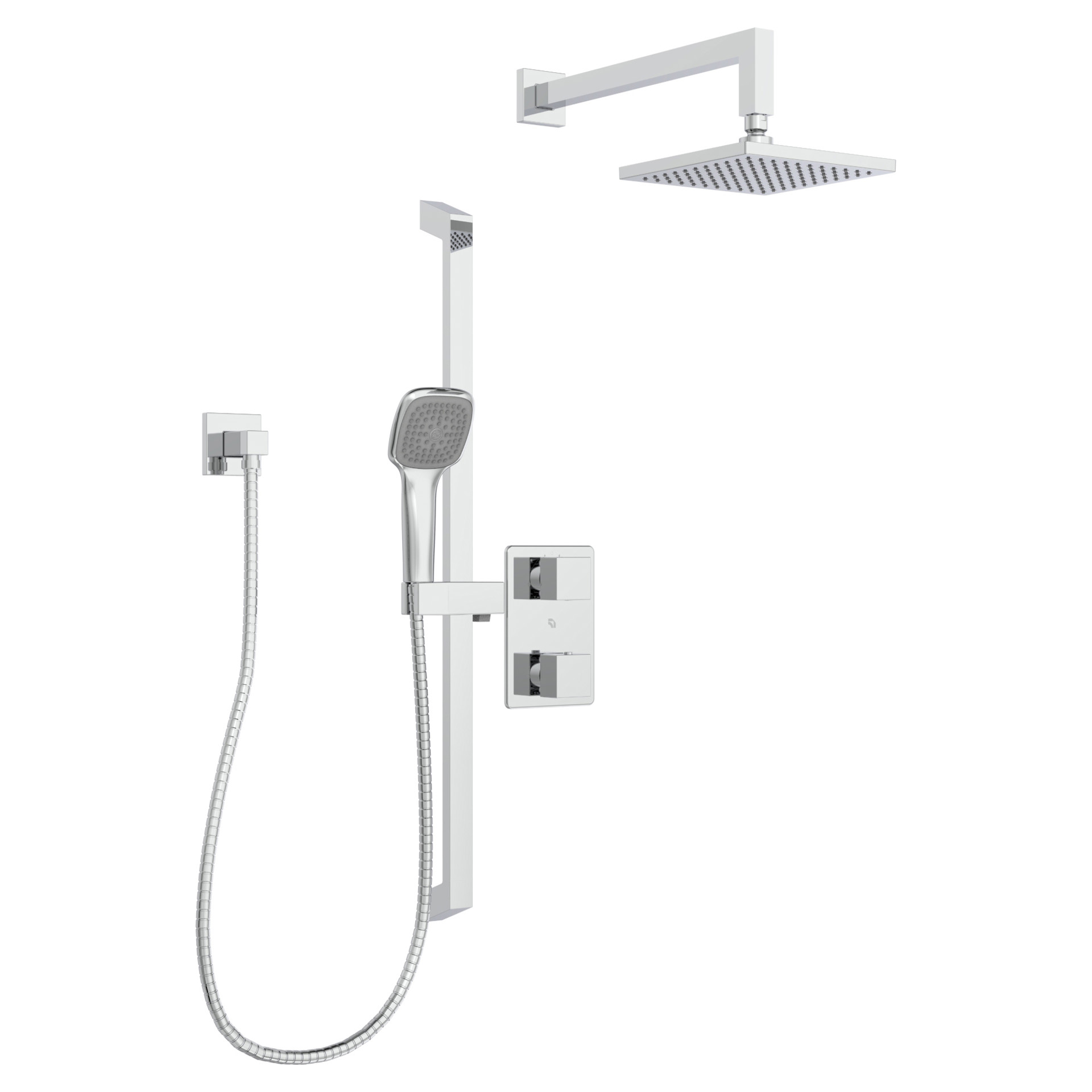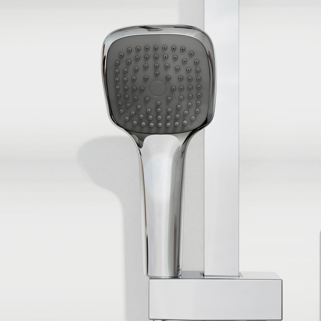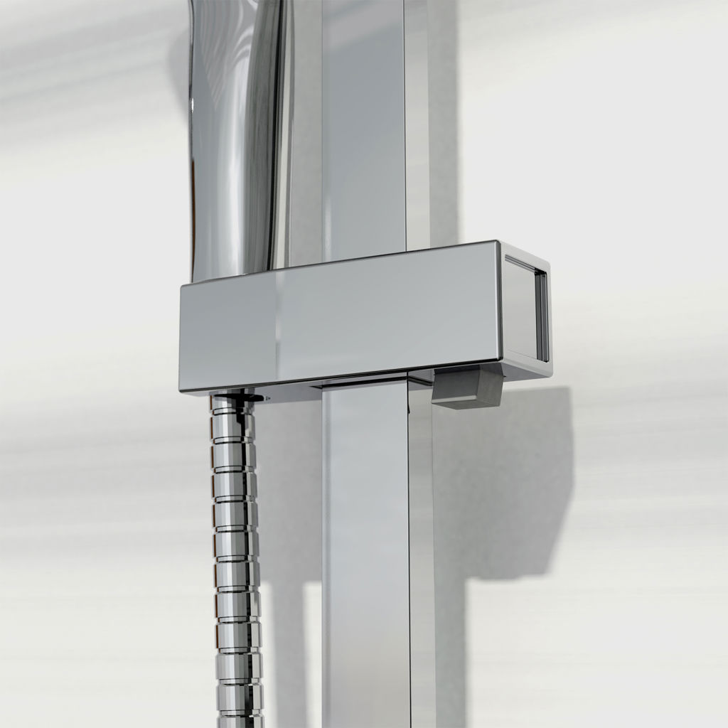 • Shower head, hand shower with sliding bar and diverter spout.