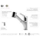 This is the perfect, affordable solution for the contemporary kitchen. The Deka faucet will please with its quiet nylon hose and swivel joint that frees up movement. Add the dual-function retractable hand shower and Neris soap dispenser and the Deka becomes the chef's go-to tool!