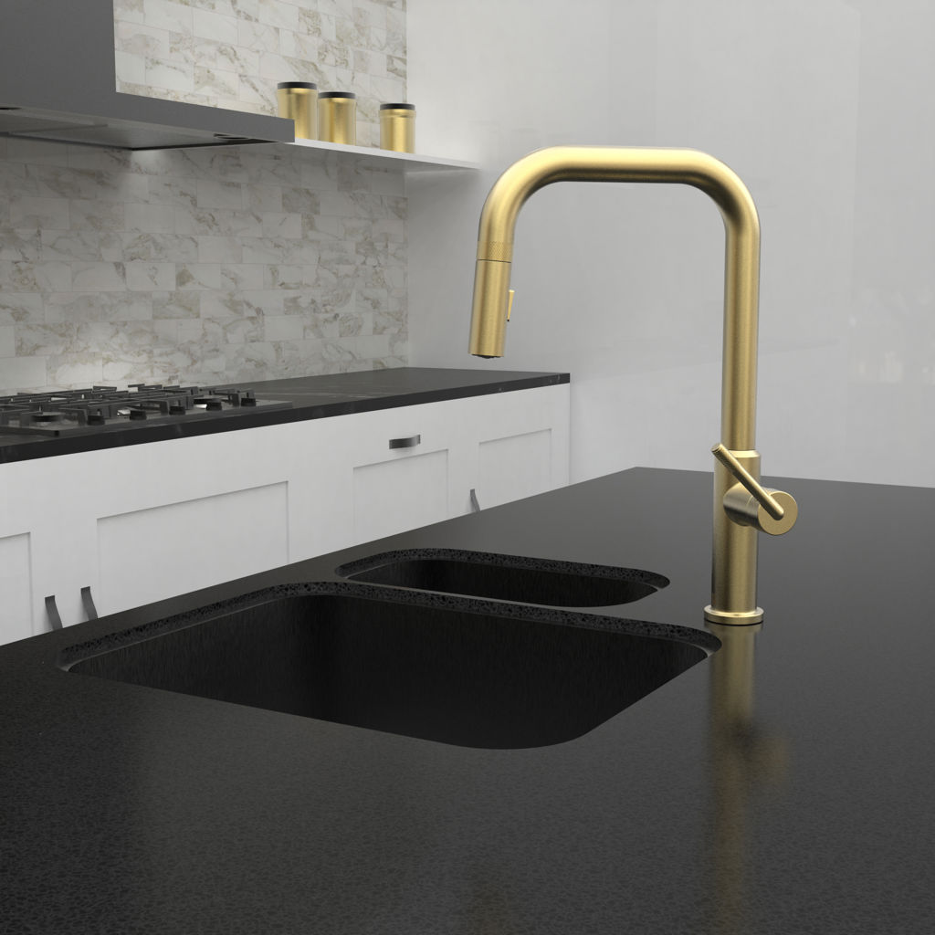 The ADORE kitchen faucet, is the ideal companion to any modern kitchen. Its bold looks and textured accents are the perfect combination between functionality and style.