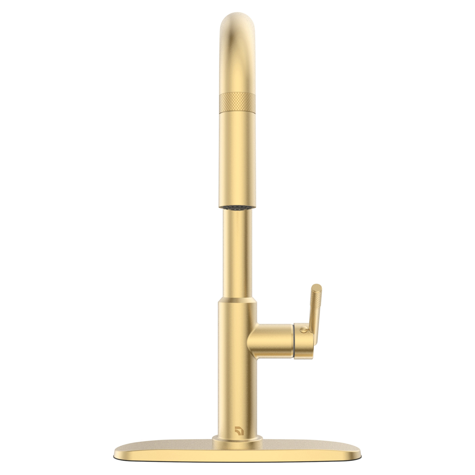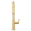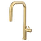 • Swivel pull down spout with push button diverter for stream or spray jets and 59" braided nylon flexible hose.