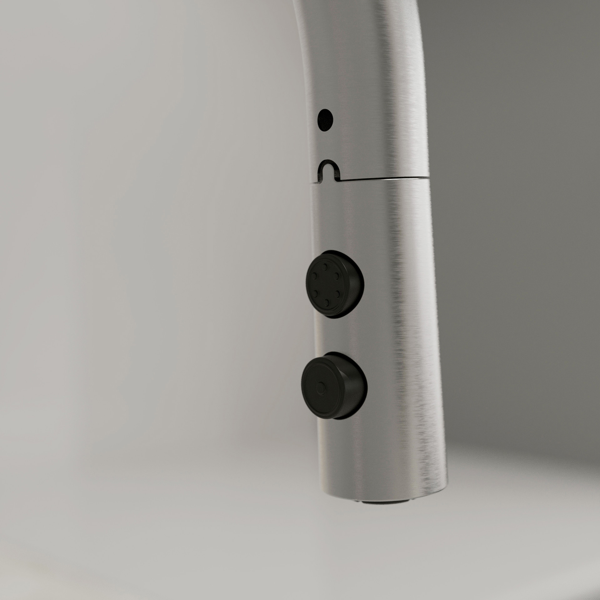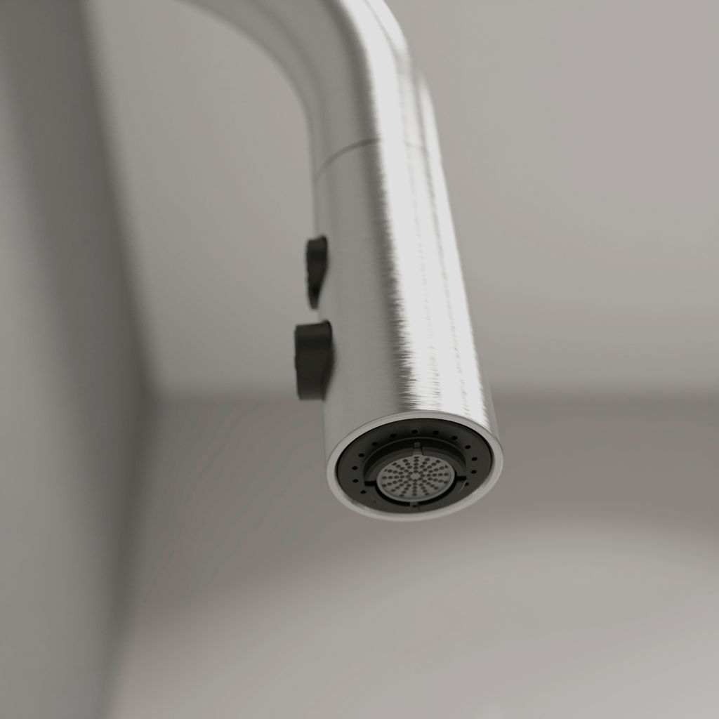 • Swivel spout integrating removable handshower with jet reverser button (concentrated, dffus) and 60” braided nylon hose