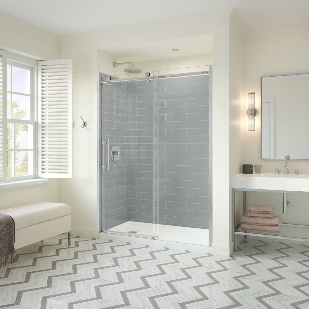 Utile Shower Kit with Grey Finished Panels and Left Drain Maax Bath 107121-301-501-100