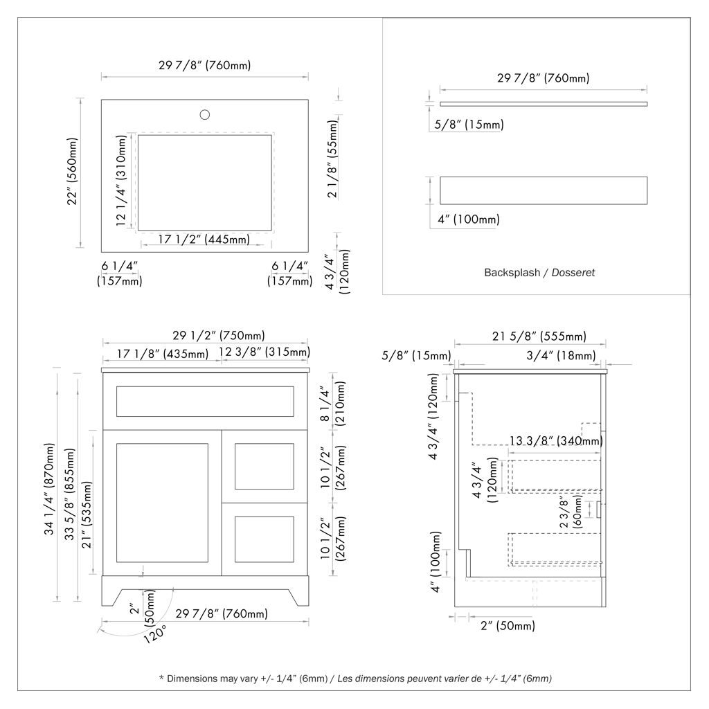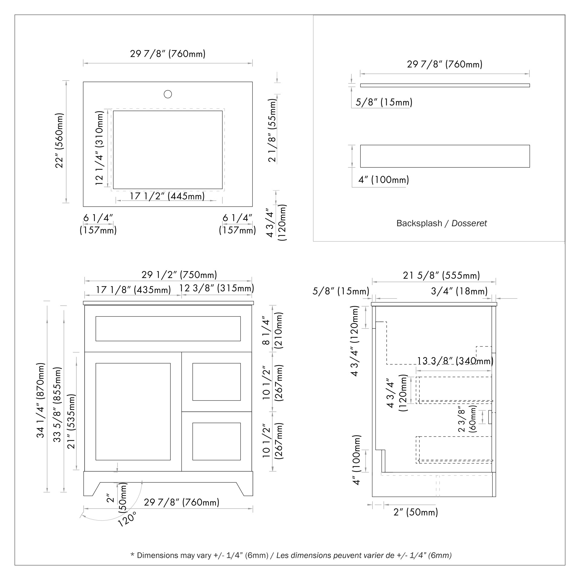 Our vanities are made of MDF for durability and elegance, with engineered stone countertops and a matching backsplash for an elegant, cohesive look.