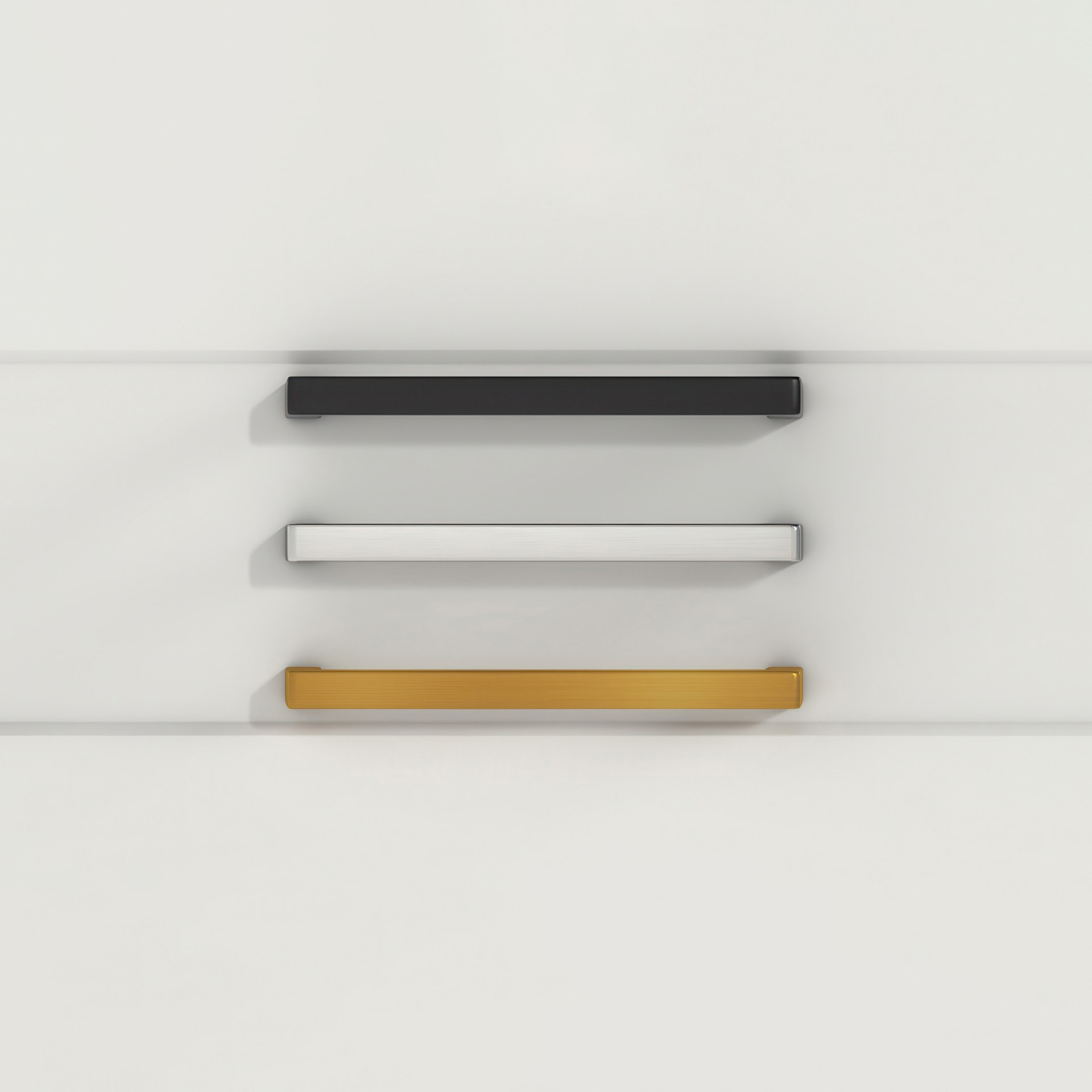 To perfectly match your faucets, each vanity comes with three handle options in matte black, brushed nickel and gold.