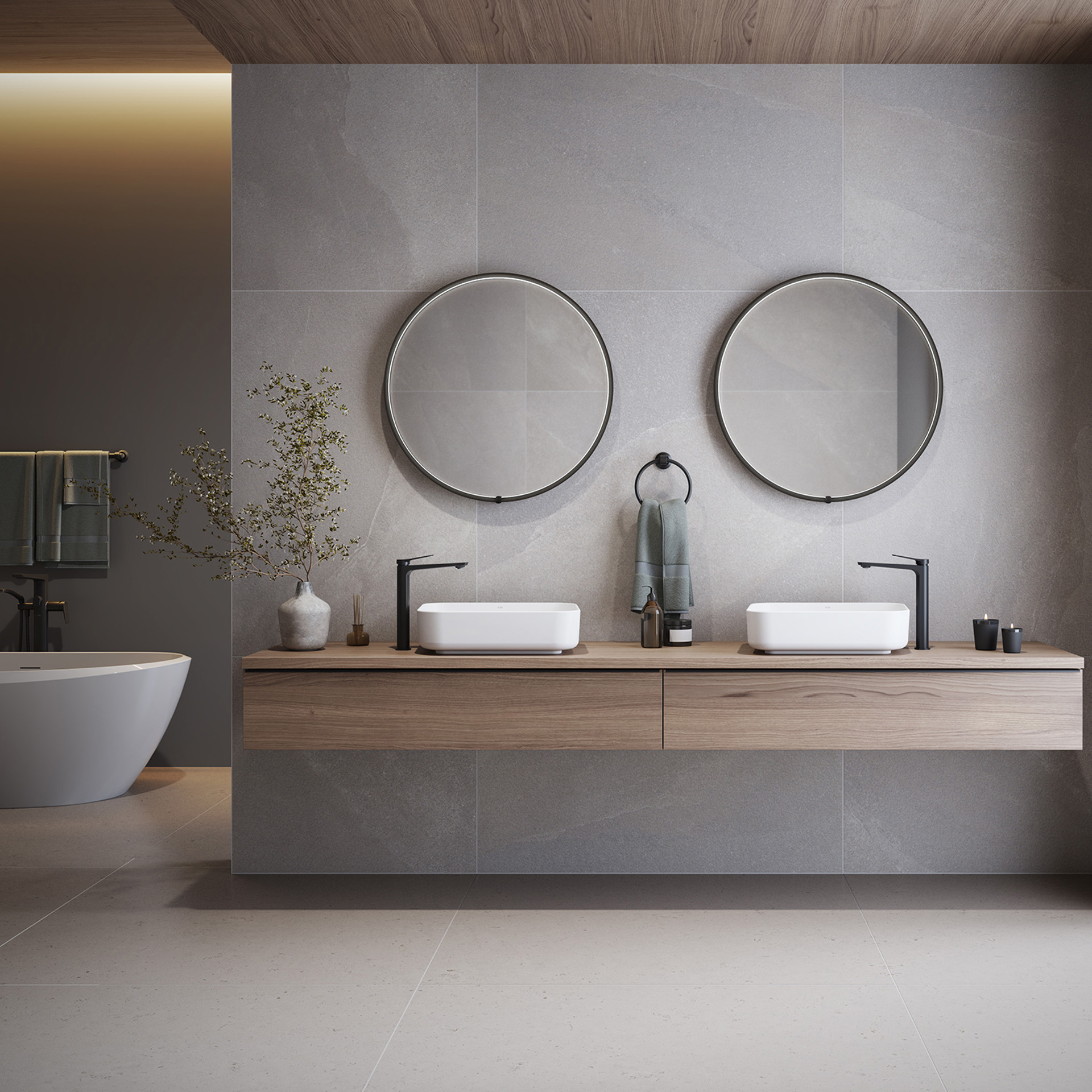 The Nox black-framed mirror with concealed LED lighting and in-frame touch-sensitive switch combines refined design and functionality