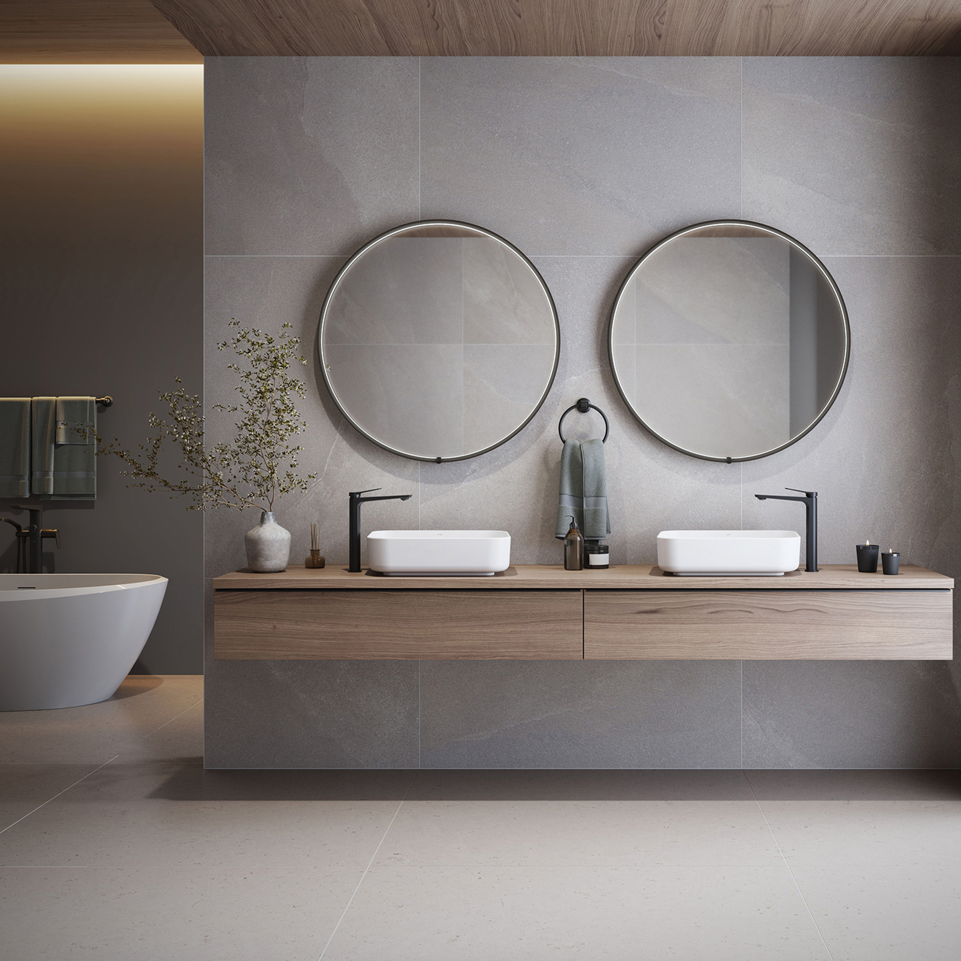 The Nox black-framed mirror with concealed LED lighting and in-frame touch-sensitive switch combines refined design and functionality