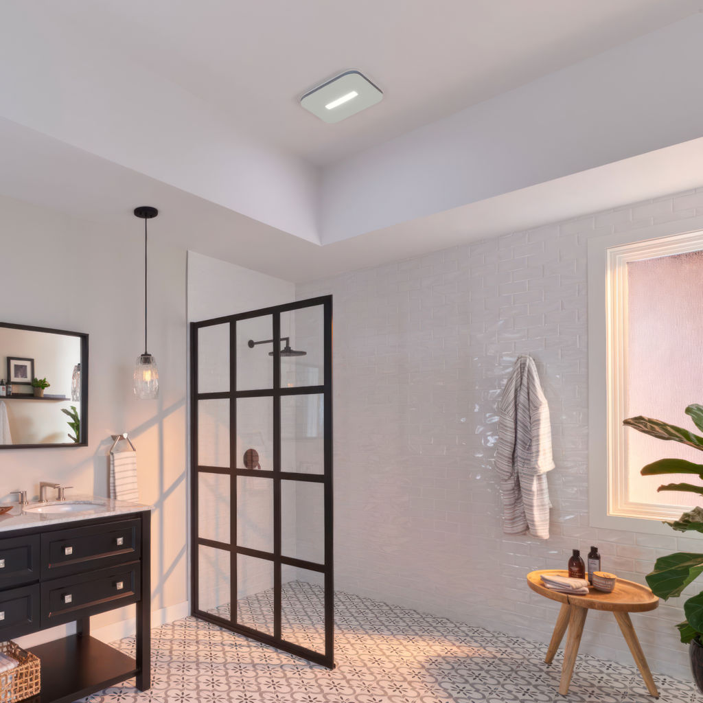 The Broan® Roomside Series fan with CleanCoverTM grille adds a touch of elegance and freshness to any bathroom décor. Say goodbye to standard grilles that trap dust and can be tedious to clean.