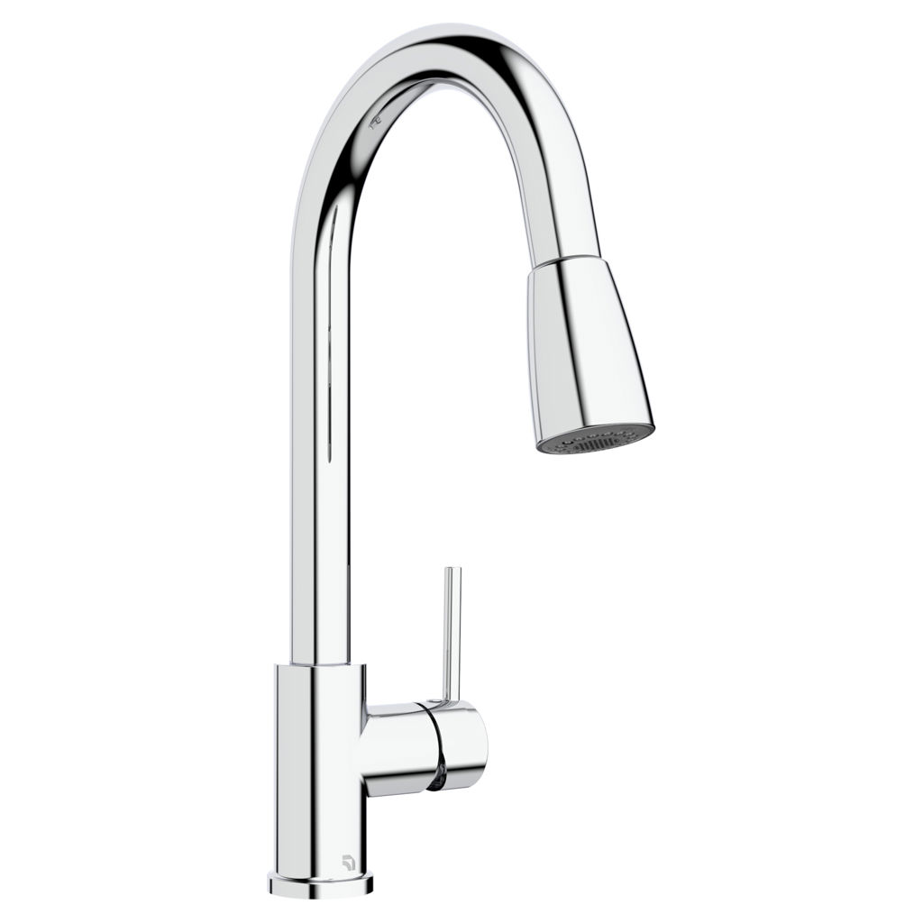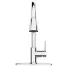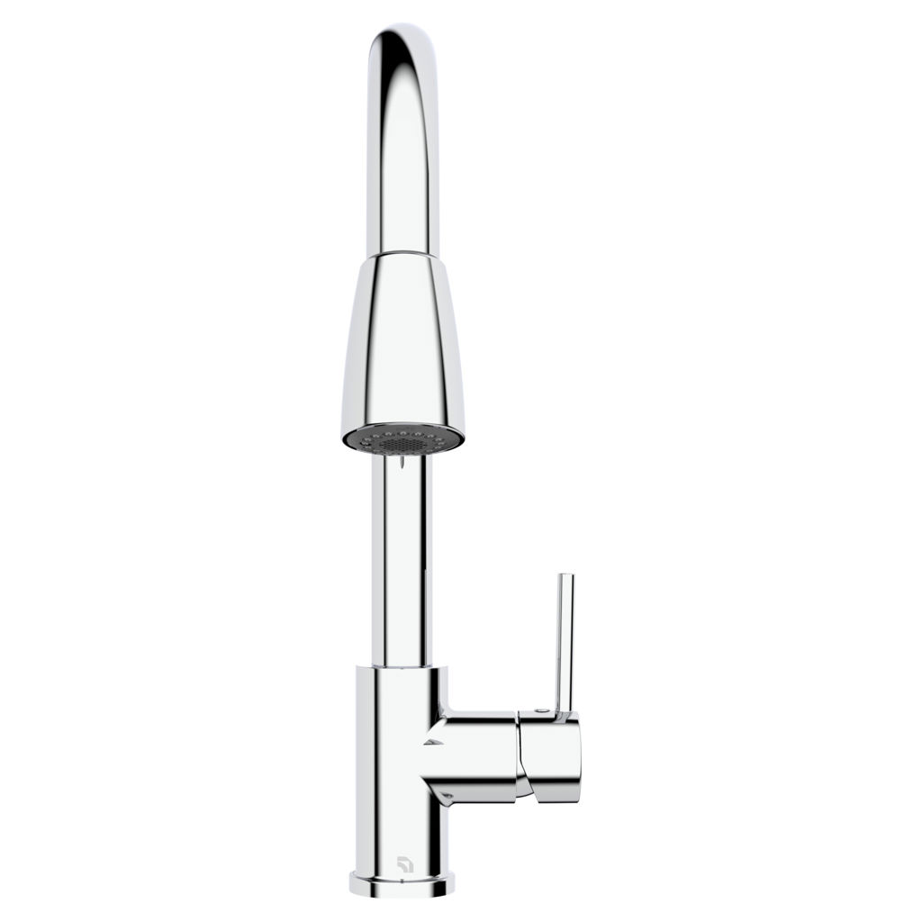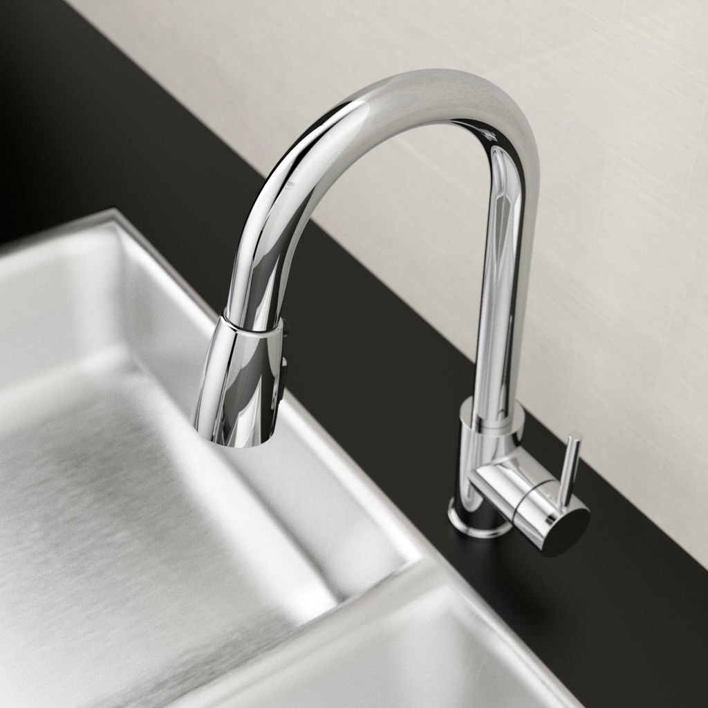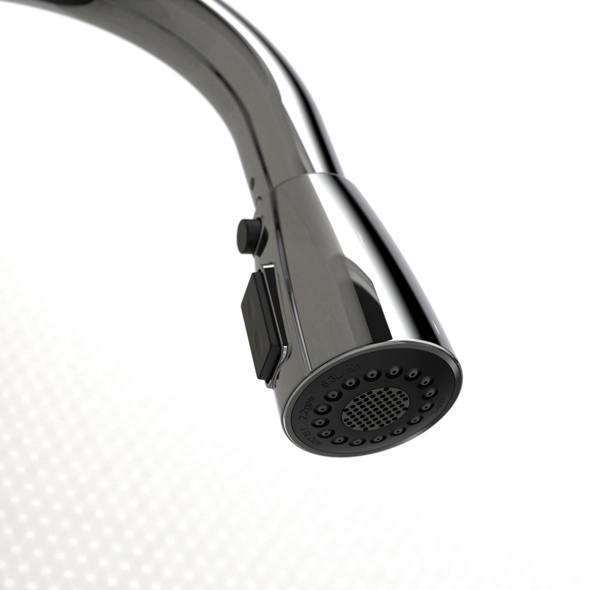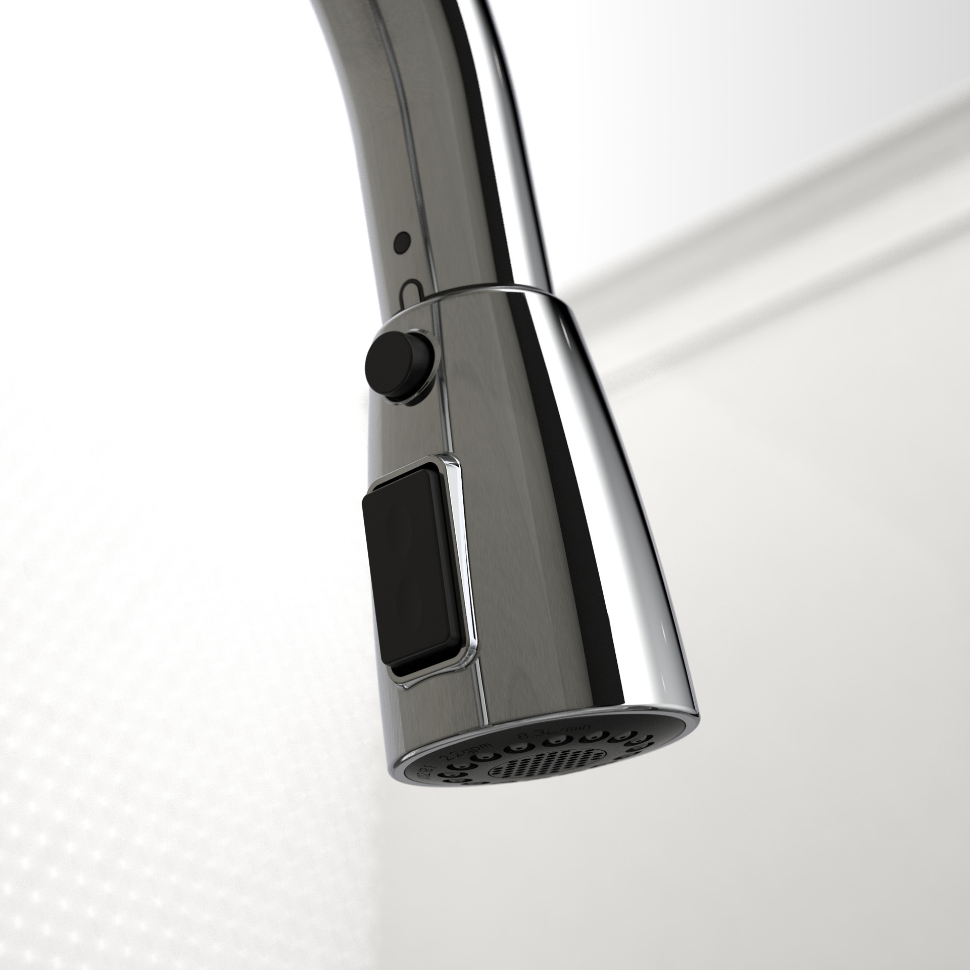The swivel pull down spout with push-button diverter spray is ideal for a quick switch between spray and stream jets.