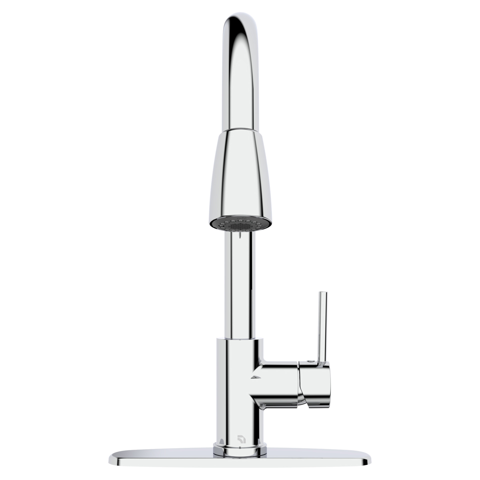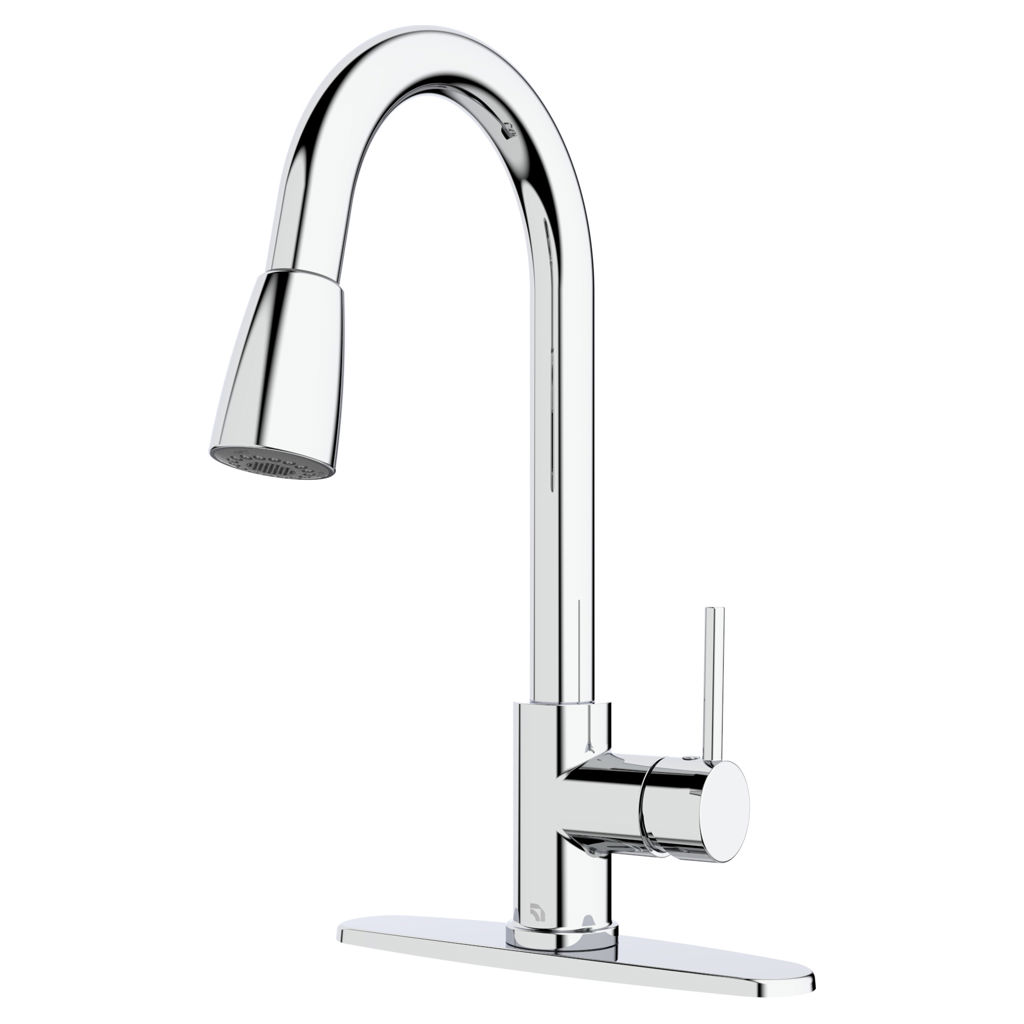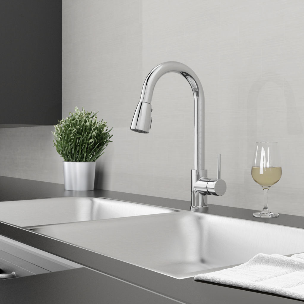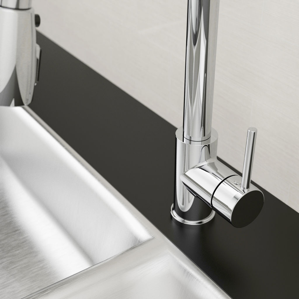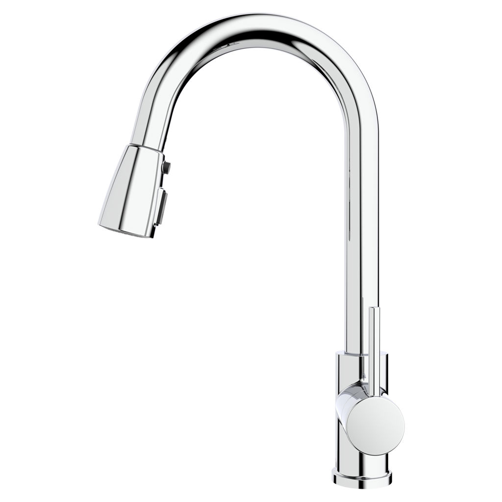 The swivel pull down spout with push-button diverter spray is ideal for a quick switch between spray and stream jets.