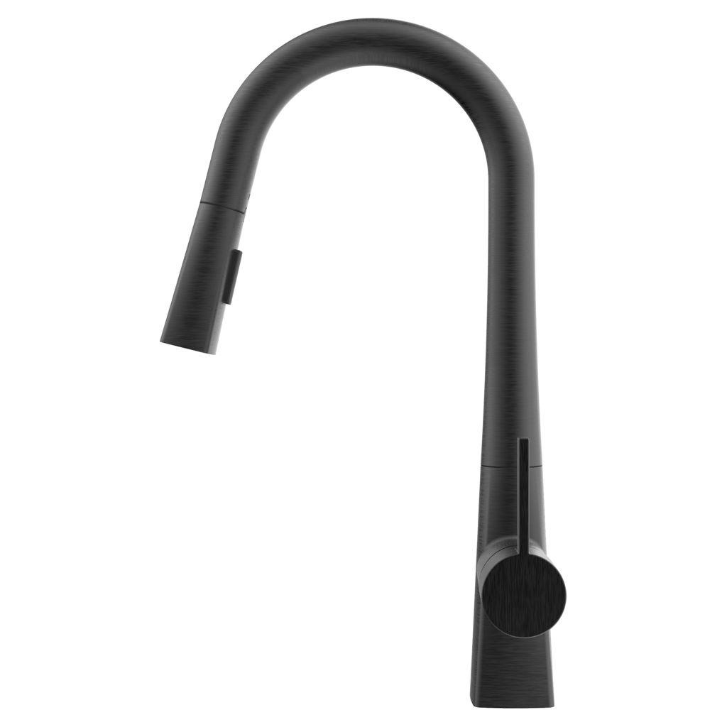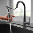 The push-button diverter spray spout is ideal for a quick switch between spray and stream jets, in a black stainless sleel finish.