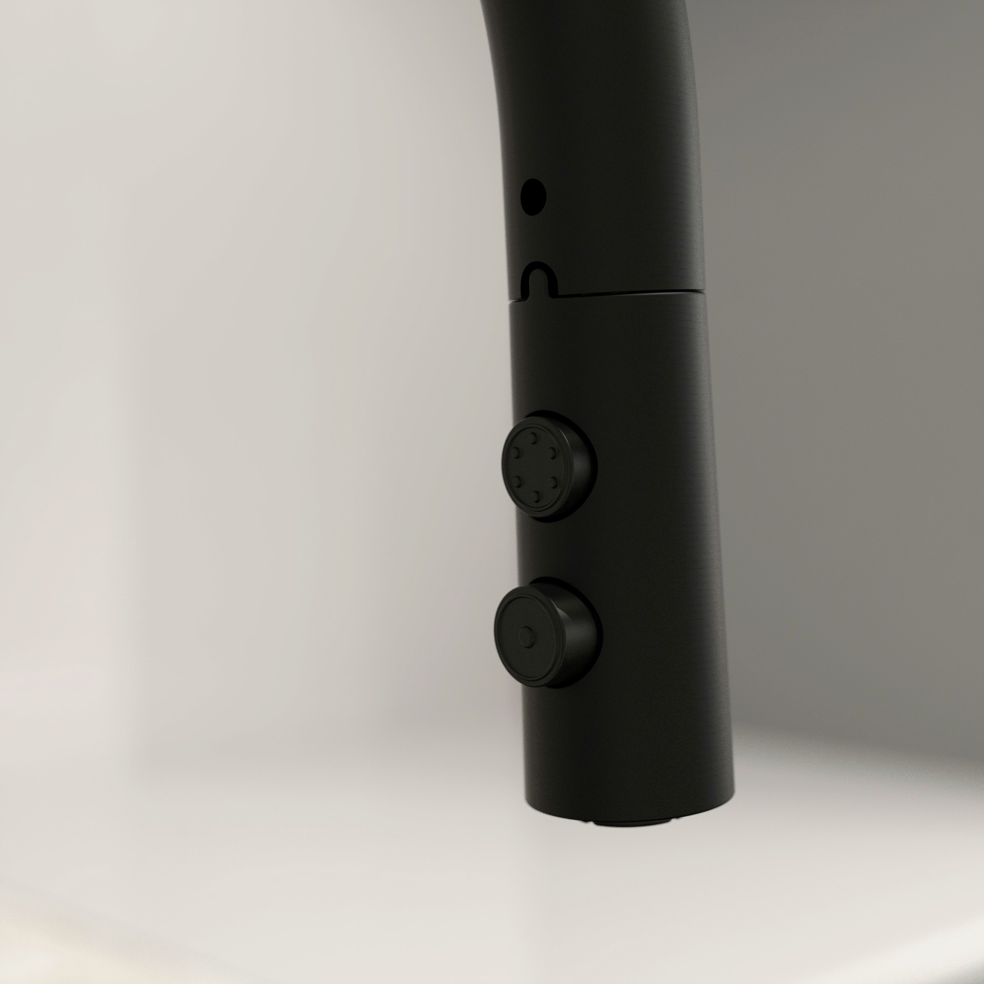 • Swivel spout integrating removable handshower with jet reverser button (concentrated, dffus) and 60” braided nylon hose