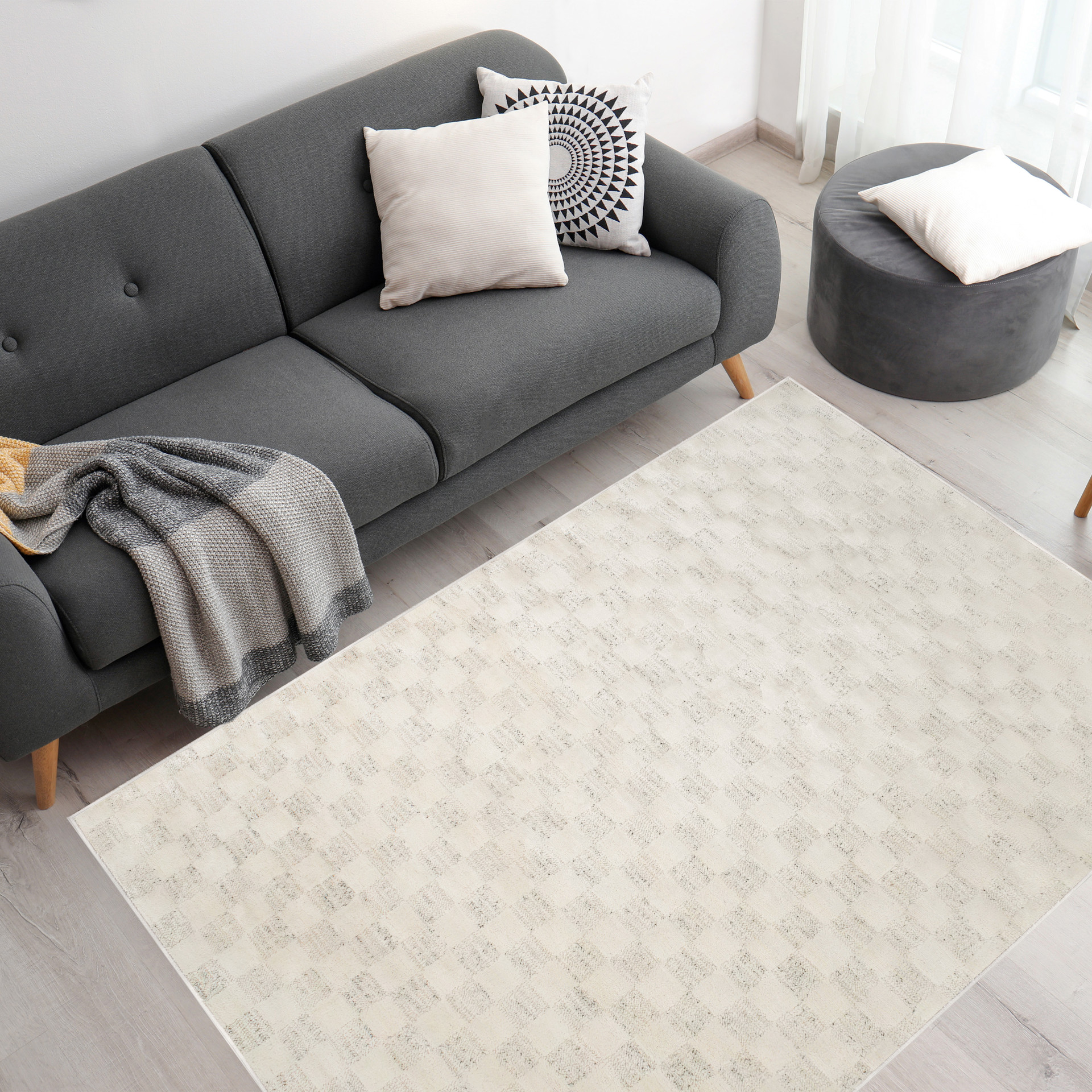 Its 7mm pile height provides a plush feel that guarantees comfort and warmth at all times. Designed with an impressive checkered pattern that adds a touch of sophistication to any space.