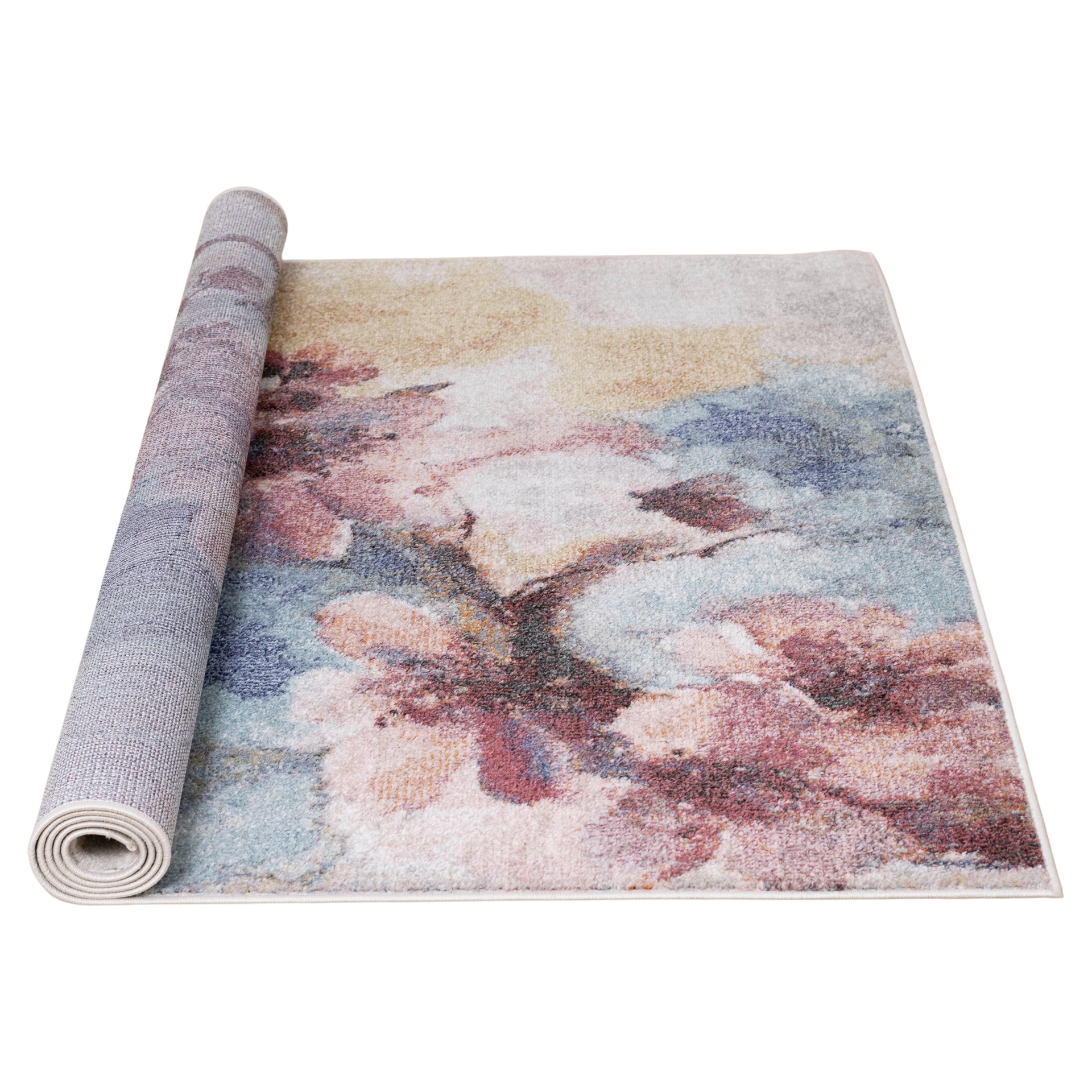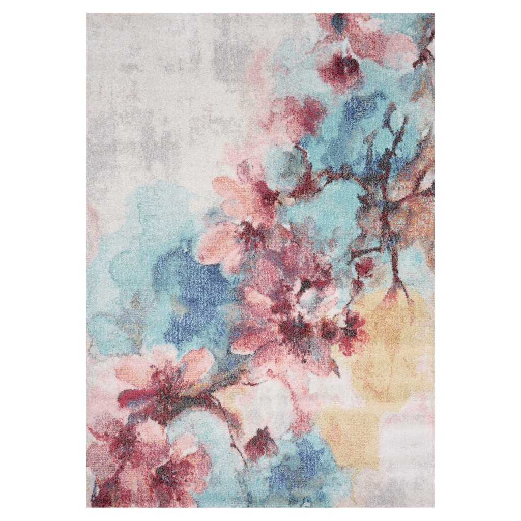 Fresco Blue Pink Yellow Cherry Blossom Area Rug - 5' X 8'