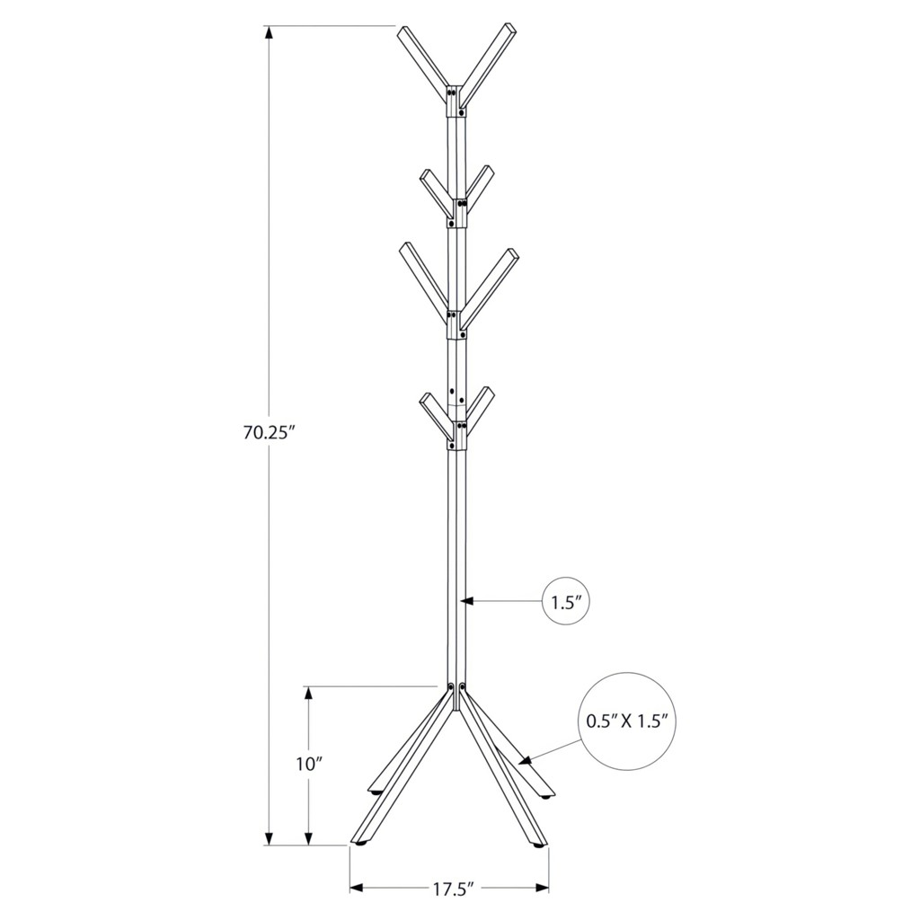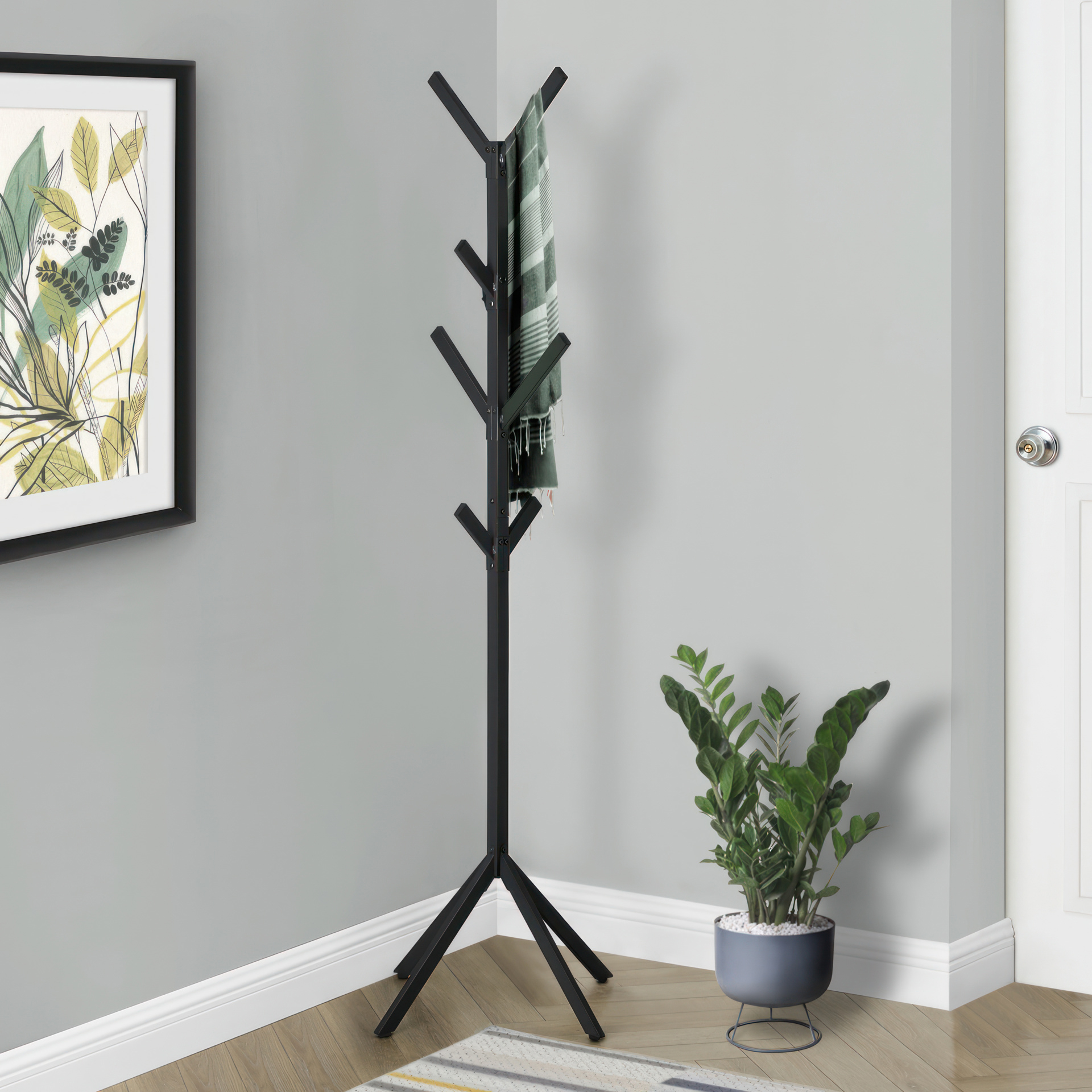 The sturdy 4-pronged base helps to keep the weight properly distributed. With a bold black matte finish, this coat rack will anchor that corner of your entryway, bedroom, and your office for a strong, contemporary look. Assembly is required.