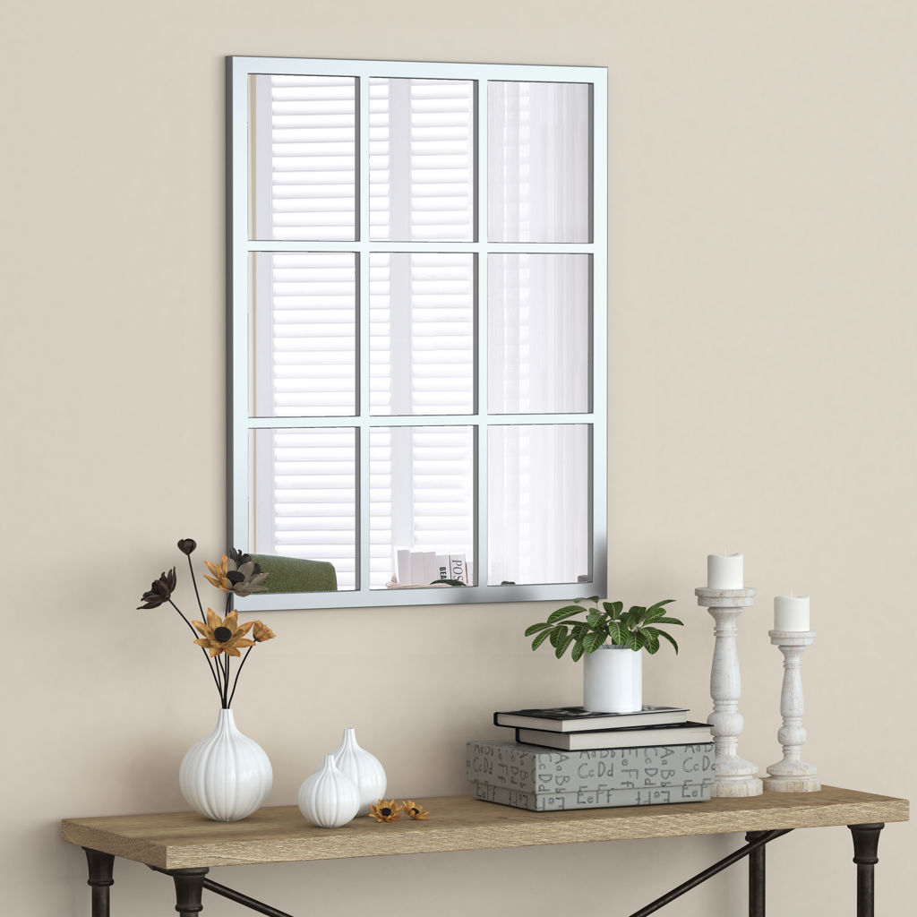 Rectangular Window Pane Mirror Silver Finish 28" X 36"