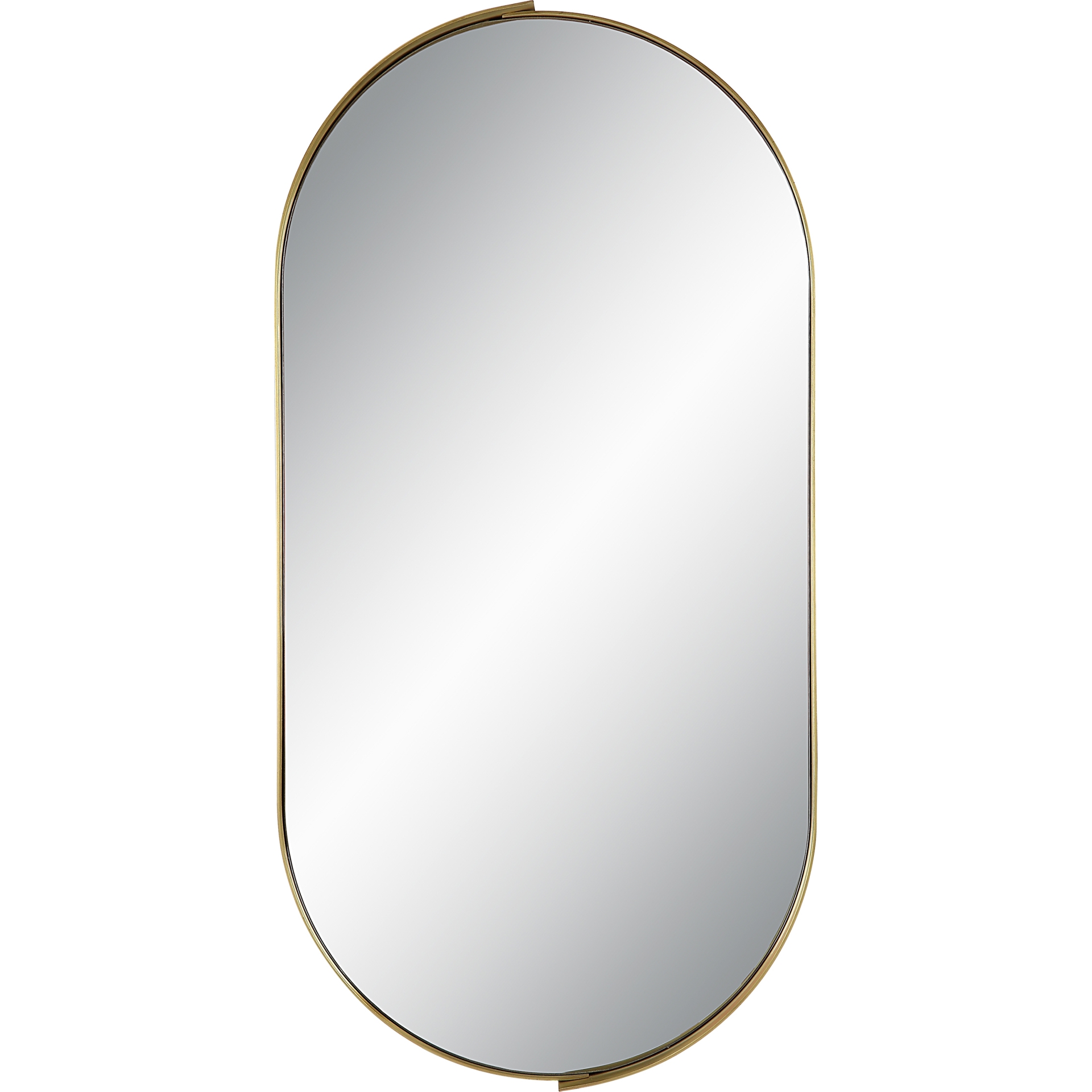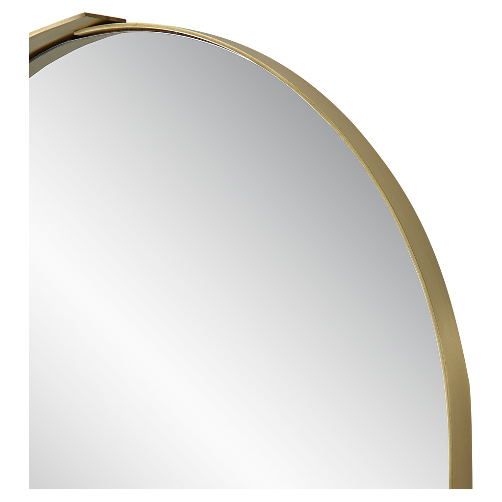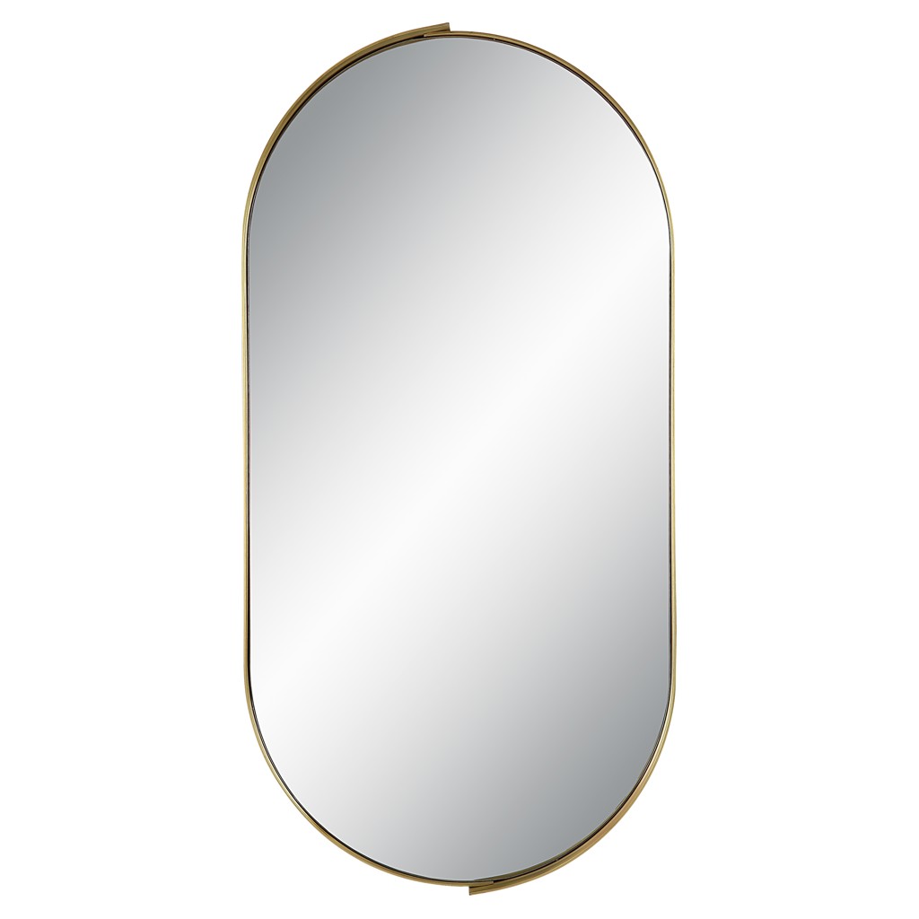 Set horizontally, it can expand the appearance of a dining table or living room space. With satin brass details, this framed mirror is well-suited for both classic and contemporary aesthetics.