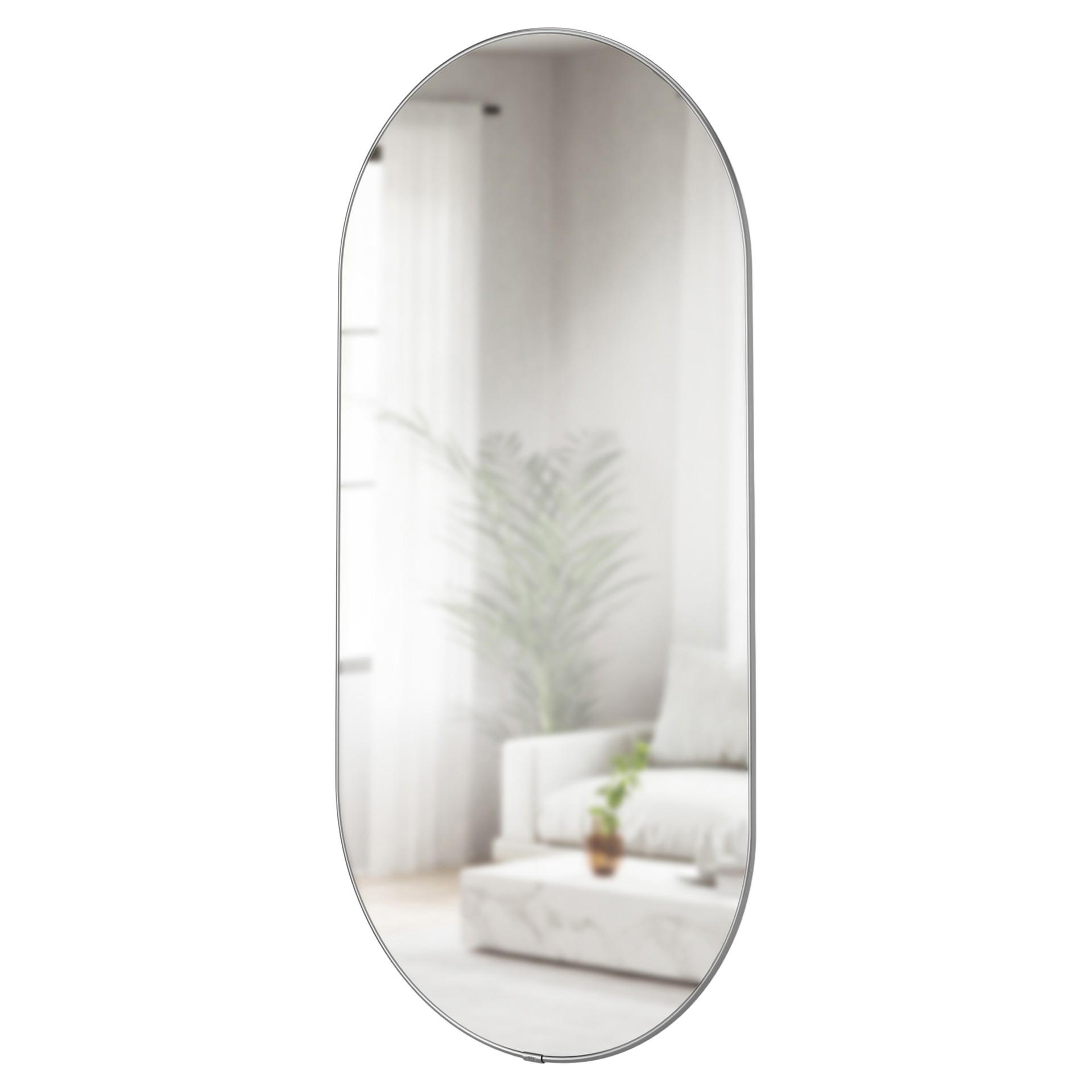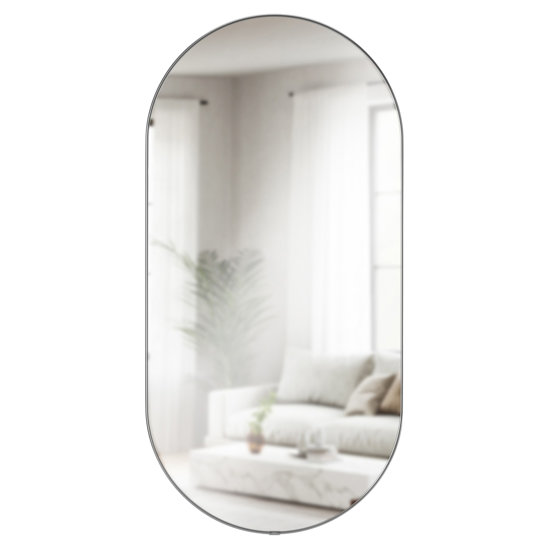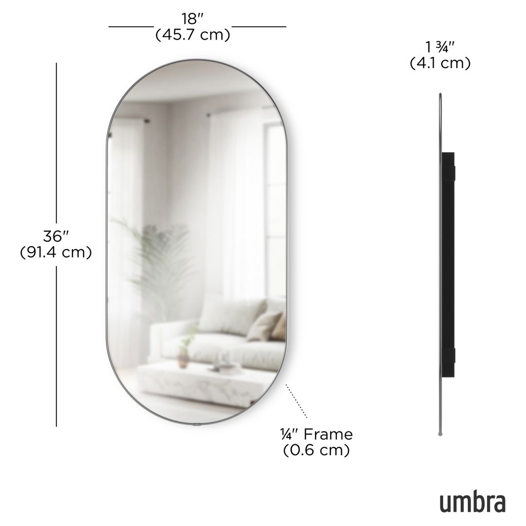 • Pill-shaped mirror: The elongated oval silhouette adds a modern, sophisticated touch to any room.