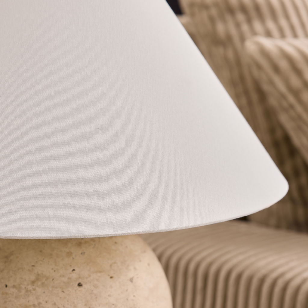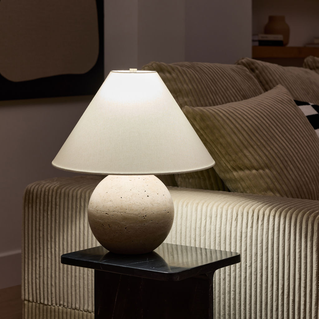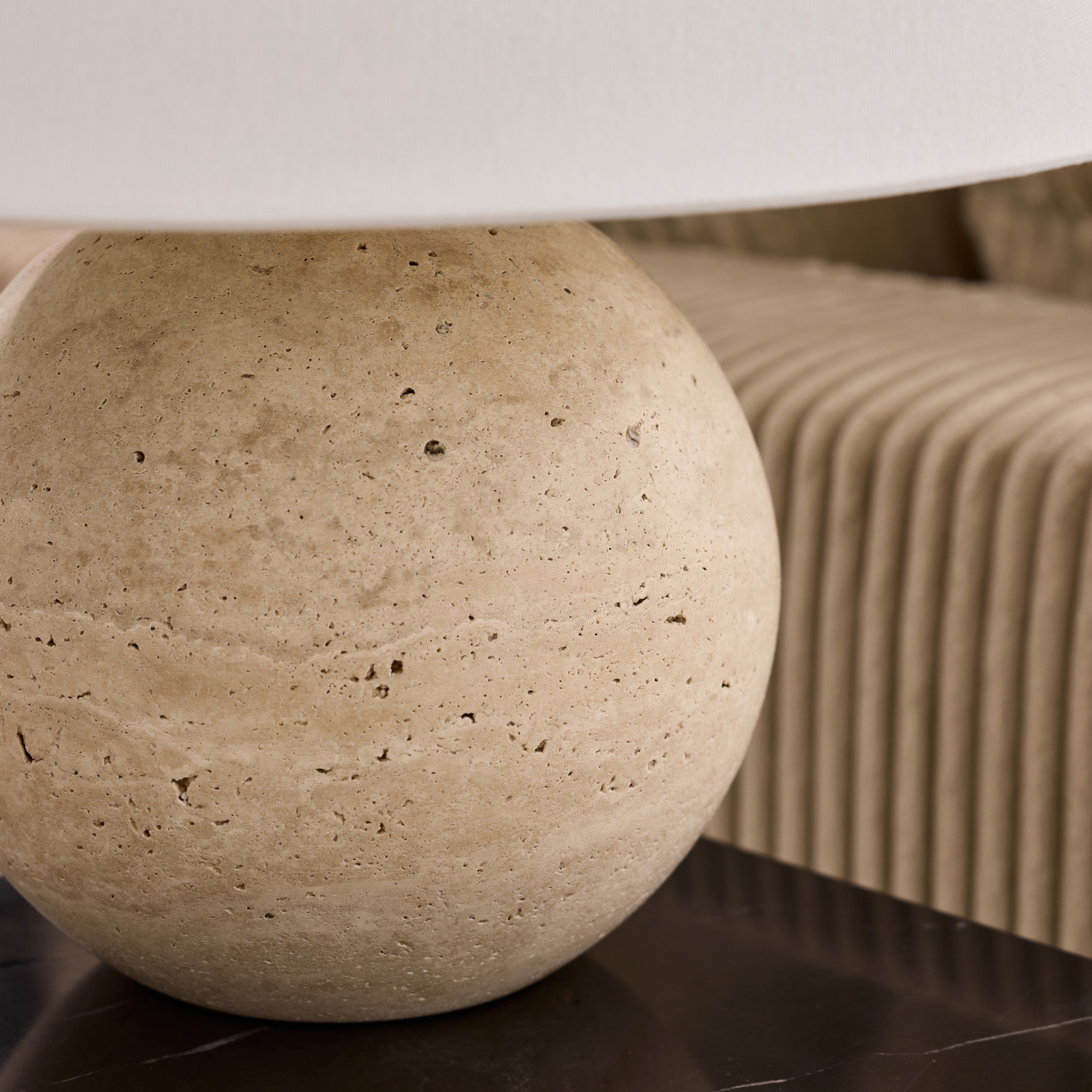 The Assen table lamp is set to become the fashionable sidekick your room update has been waiting for. Blending form and function, it features a stunning honed travertine base in tones of cream that complements many styles of interior.