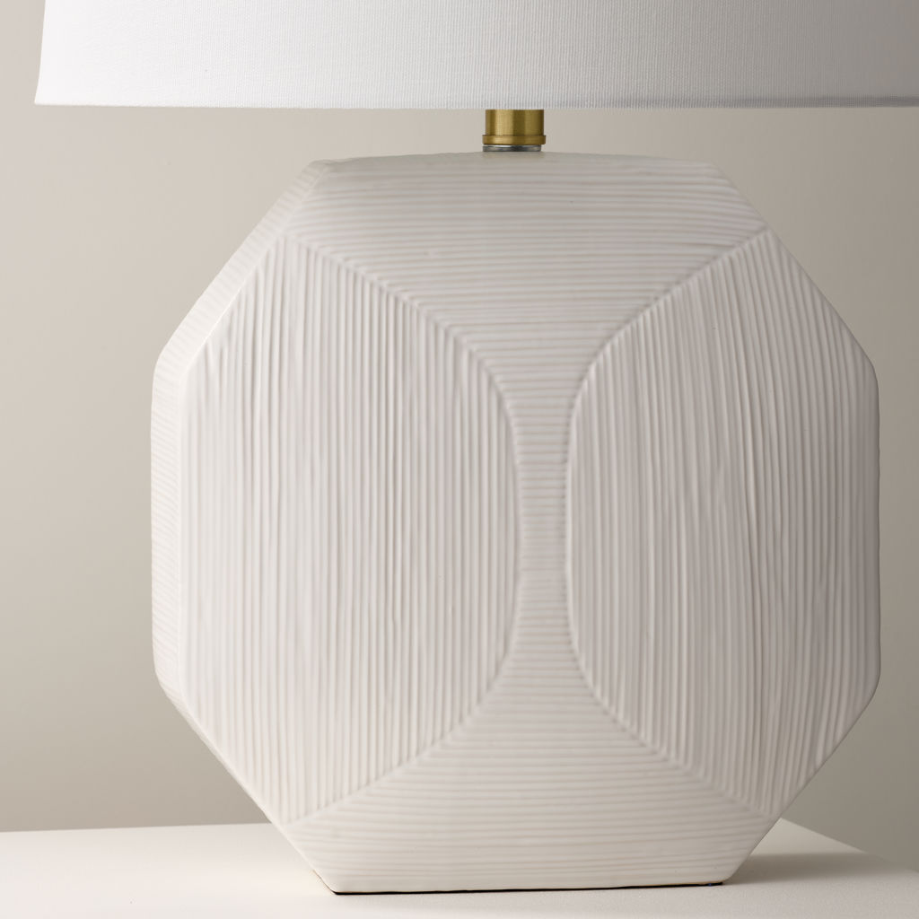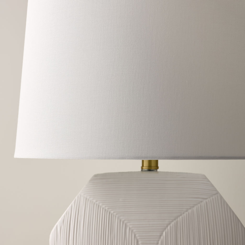 This ceramic lamp features a clean, geometric base and a cylindrical shade, giving it a modern and minimalist aesthetic. It's matte finish, adds to its understated elegance.