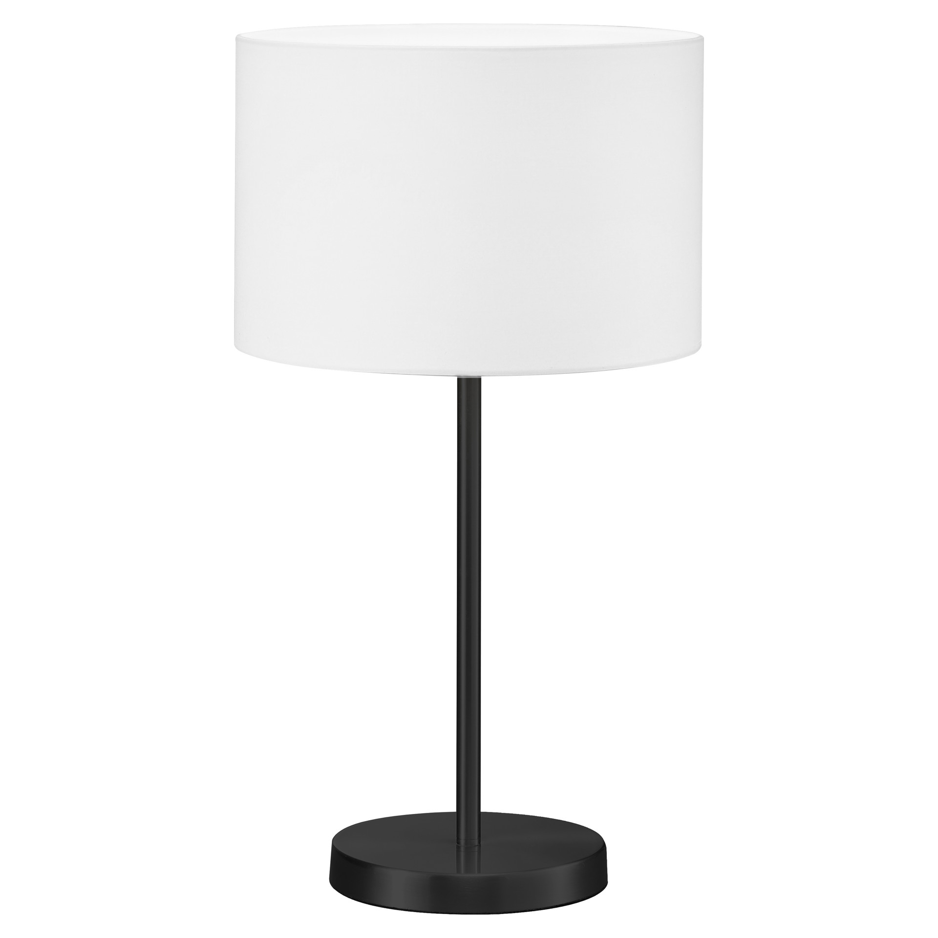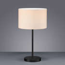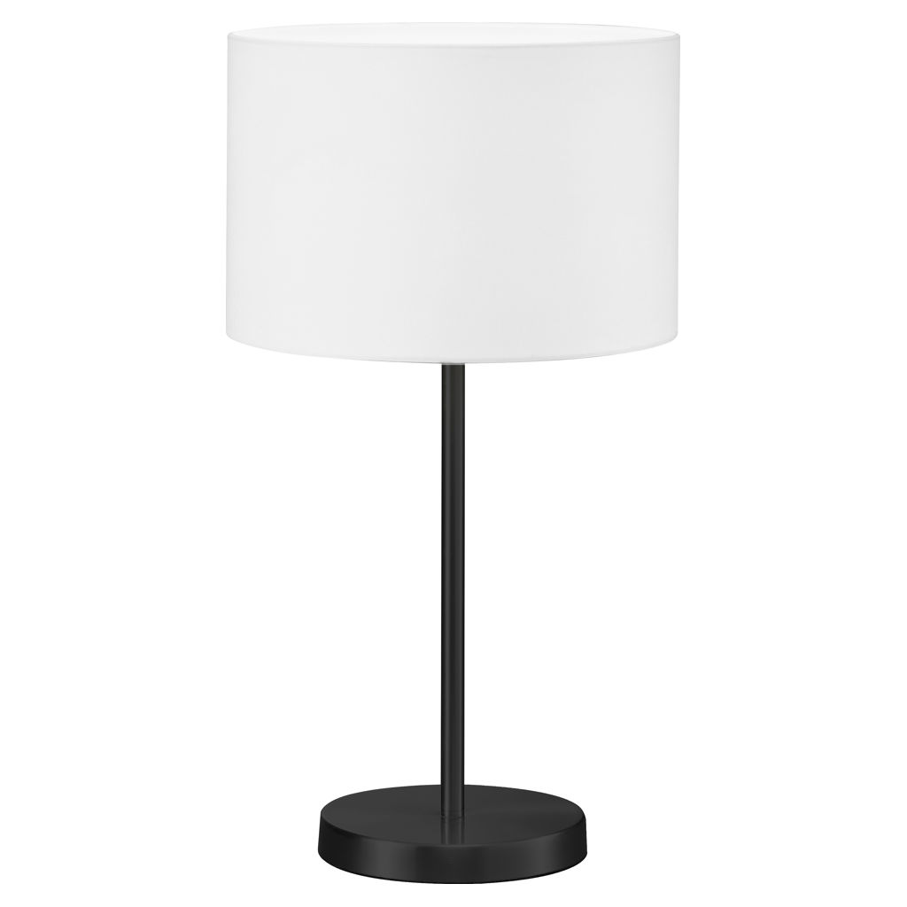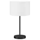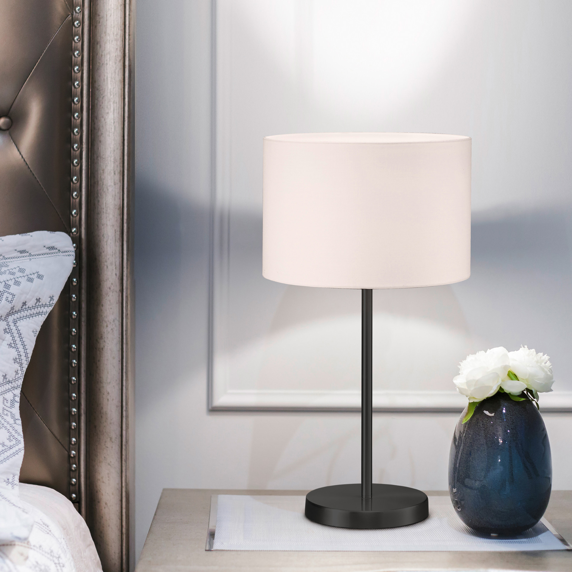 Its black base adds a refined, modern touch, while the white fabric-covered lampshade softly diffuses light, creating a warm and soothing atmosphere.