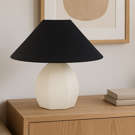 When contrasting shapes lighten up. Keeley plays with opposites, a warm, rounded base sets a soft foundation, while the angled black shade adds a sculptural edge.