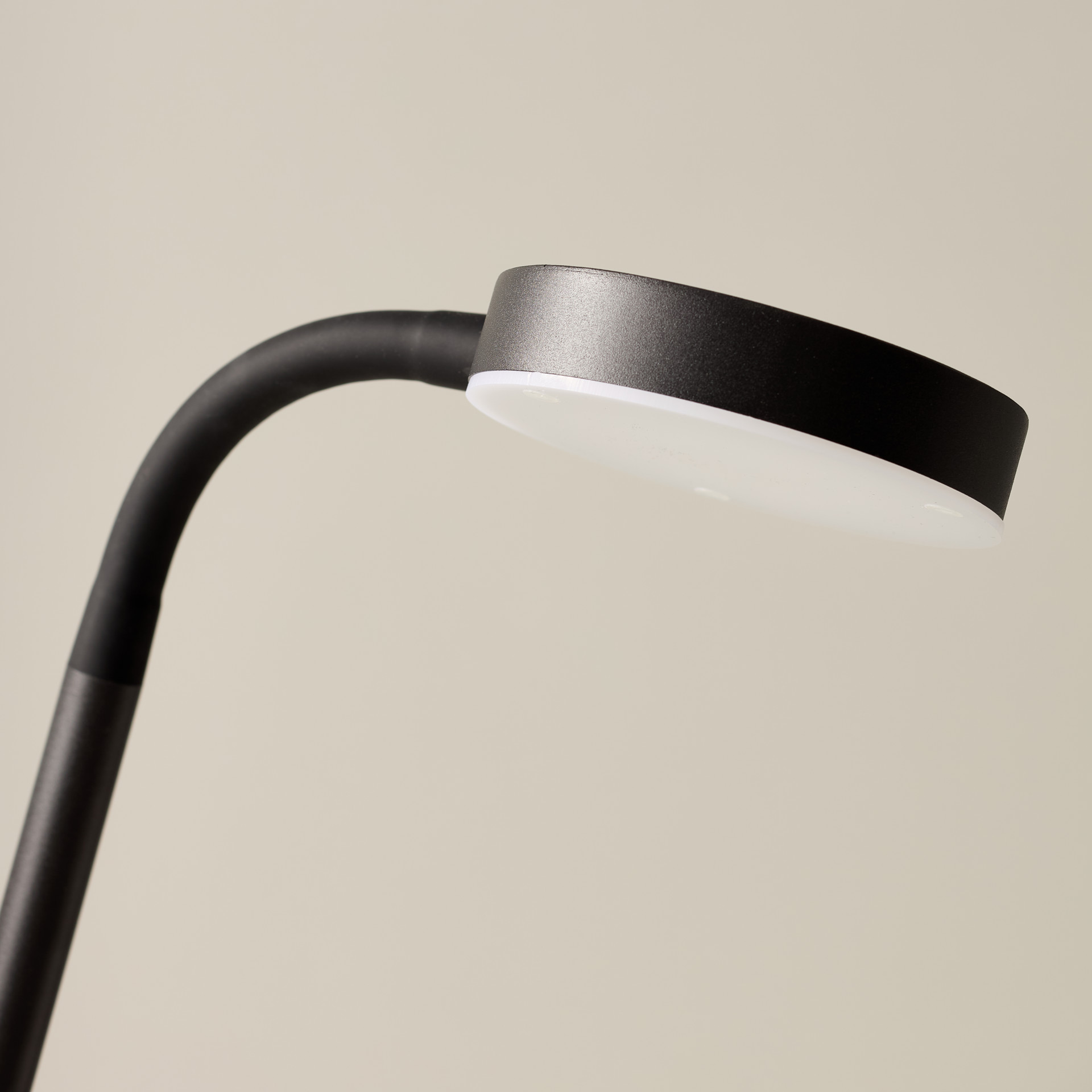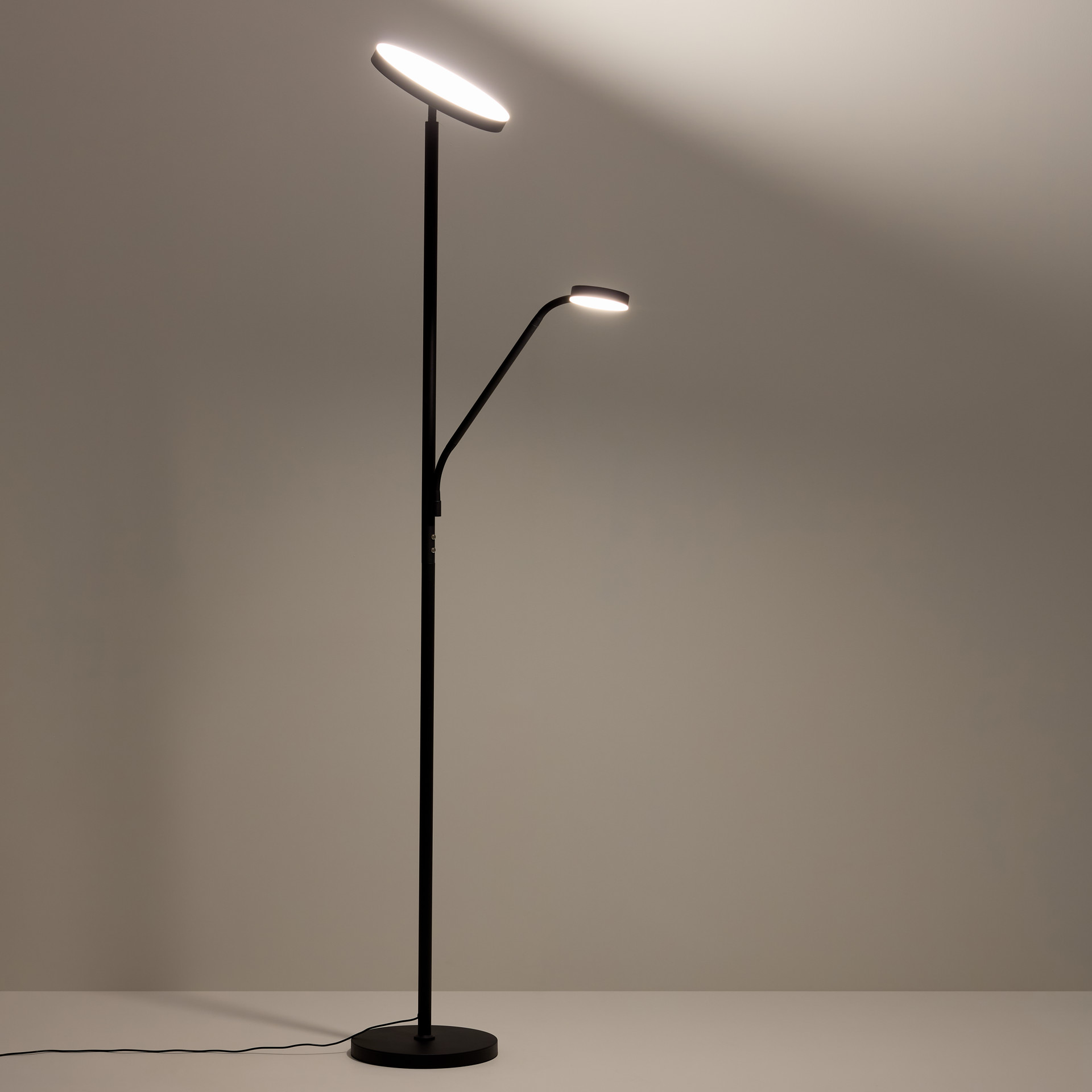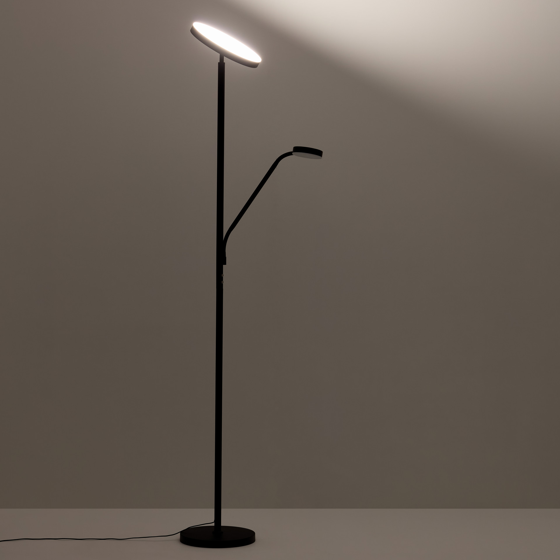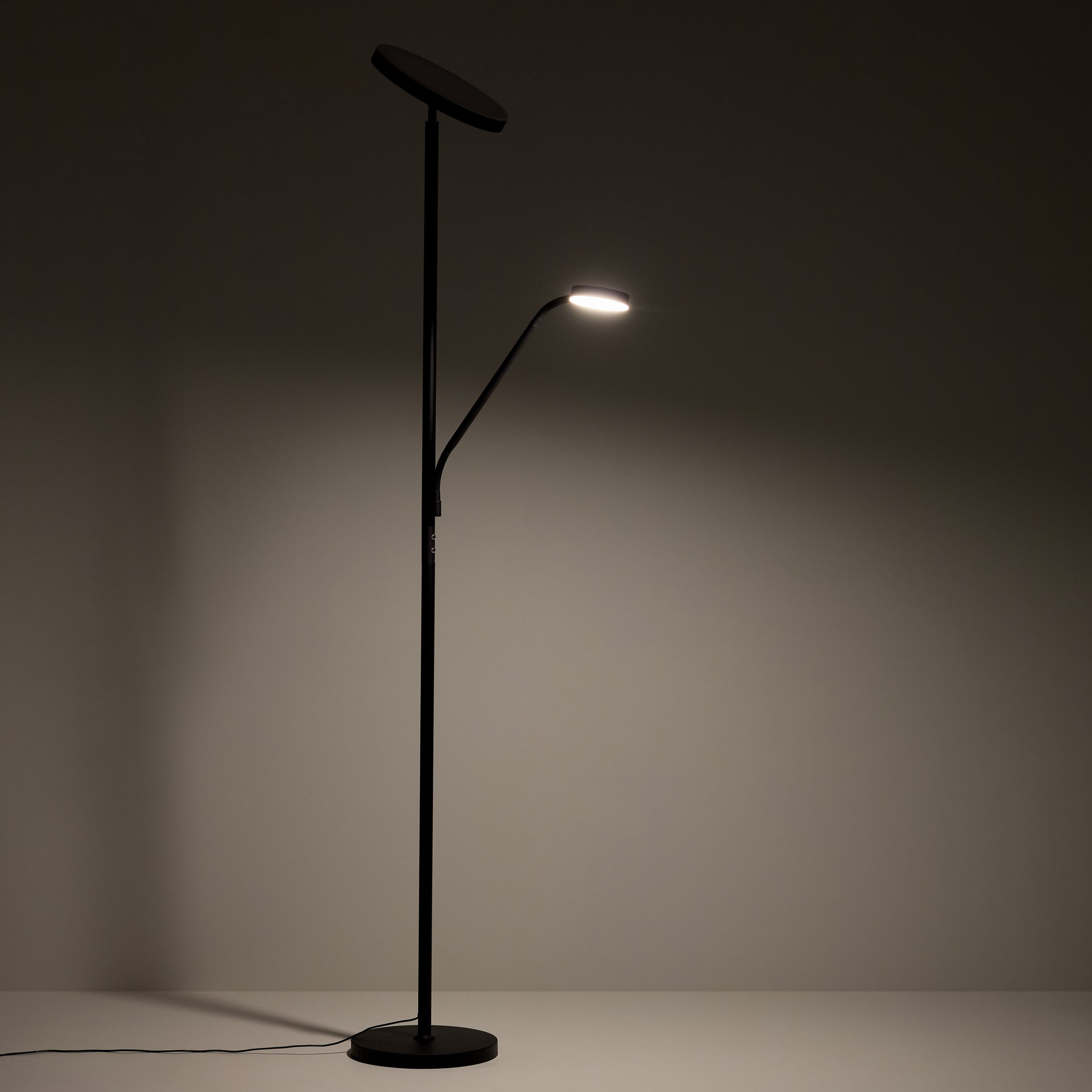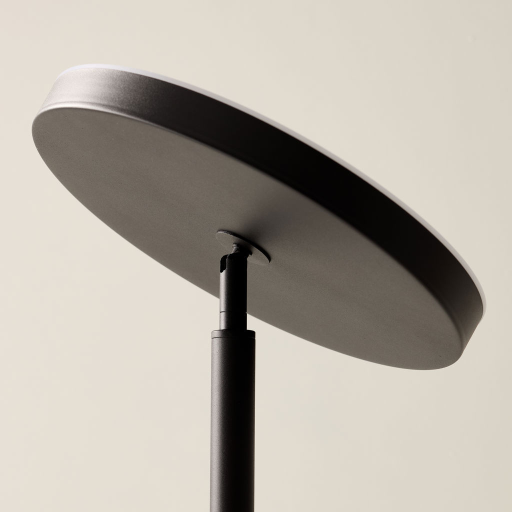 Its wide upward-facing diffuser creates a soft, warm ambiance in the room, while its adjustable light arm provides targeted illumination, perfect for reading.