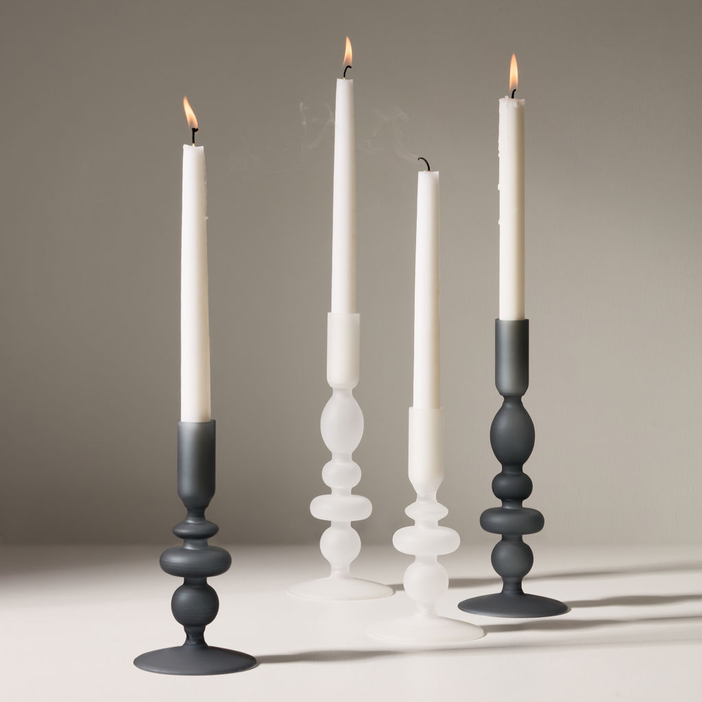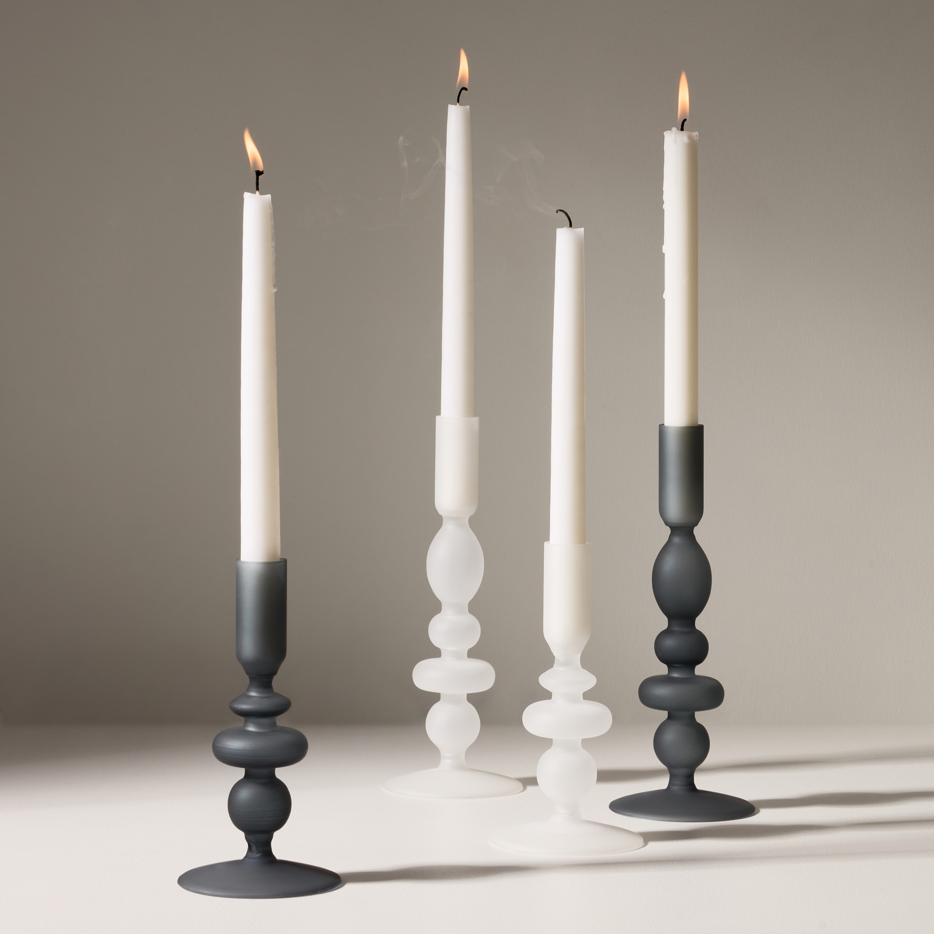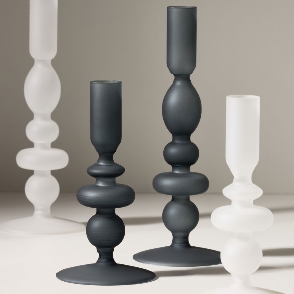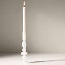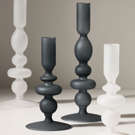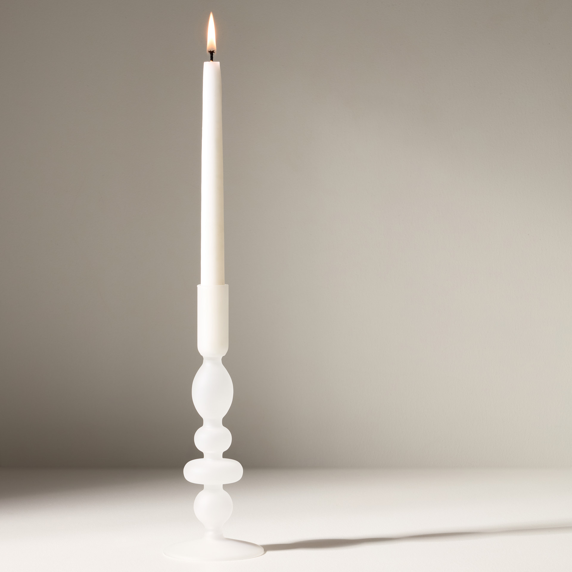 This candlestick has a modern, streamlined design, with a wide base for stability. Its rounded silhouette gives it a soft, elegant look.