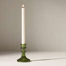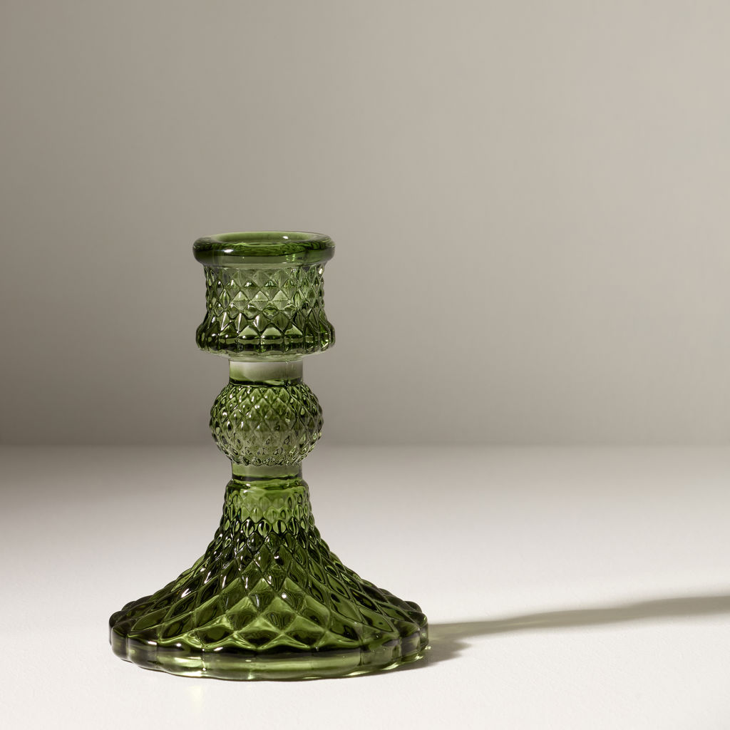 Emerald-green blown-glass candleholder in an elegant vintage design.