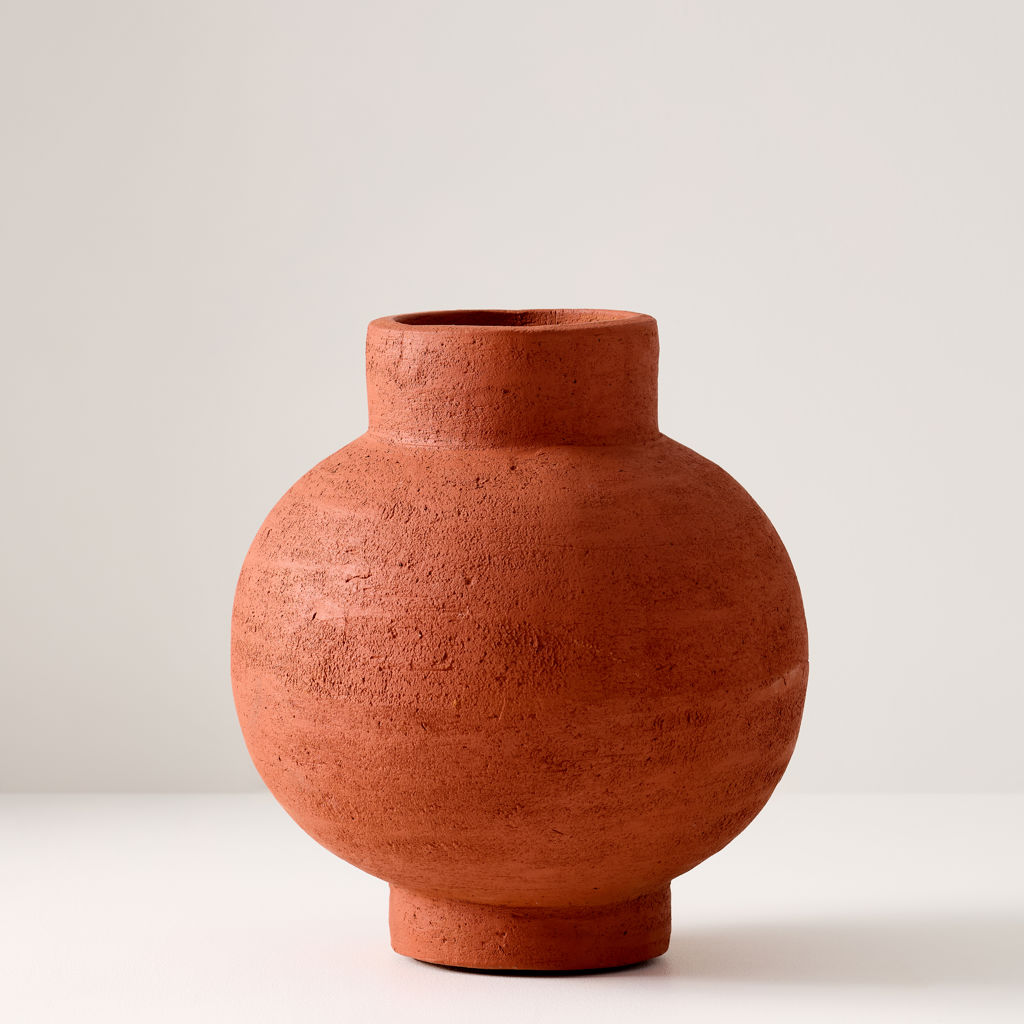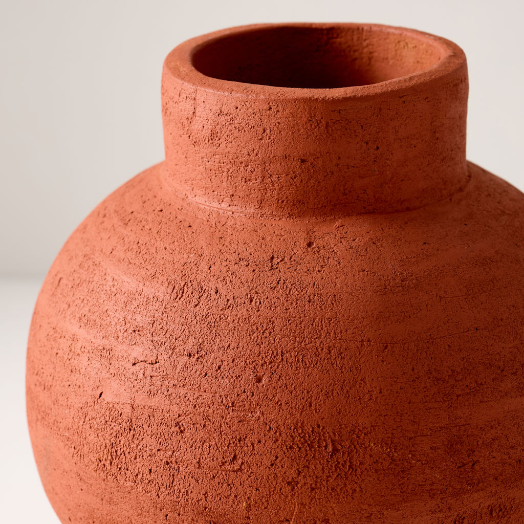 Handmade and hand-dyed by Indonesian artisans, the rustic Terracotta round vase features a natural terra-cotta finish and texture.
