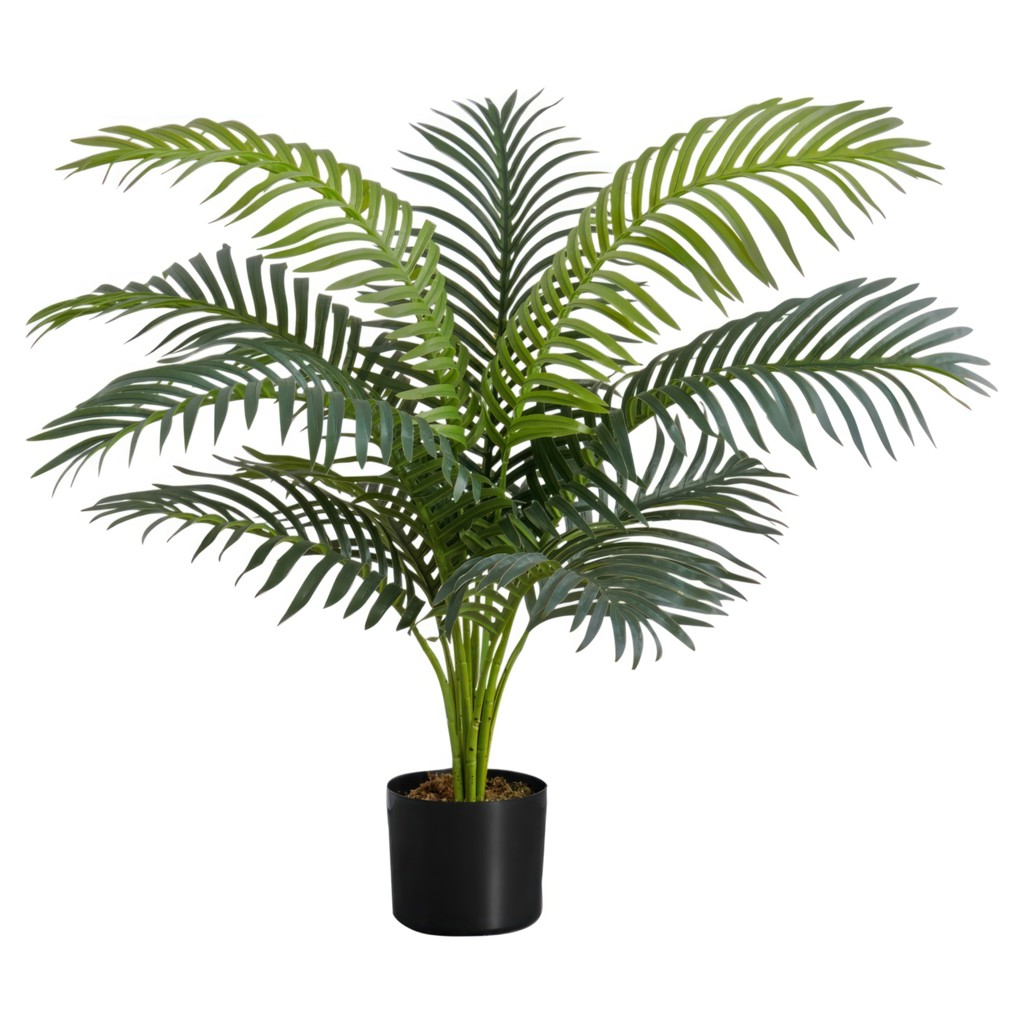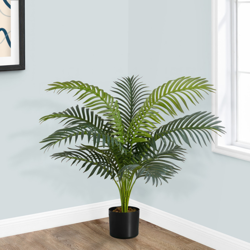 Take your home decor to the next level with this eye-catching 34" tall artificial Palm tree in a round, black 5" pot.