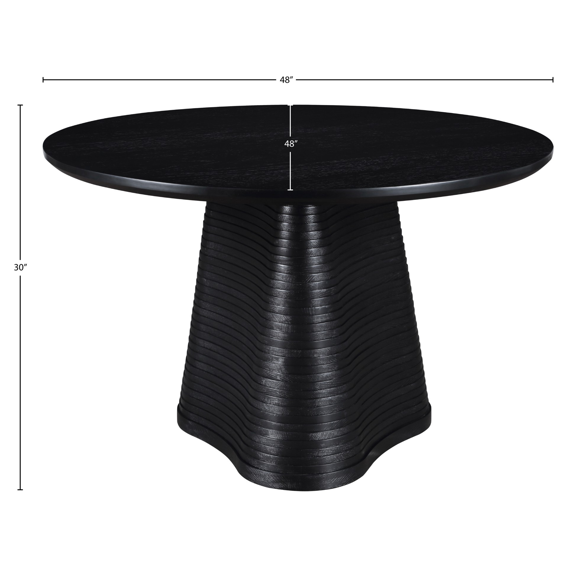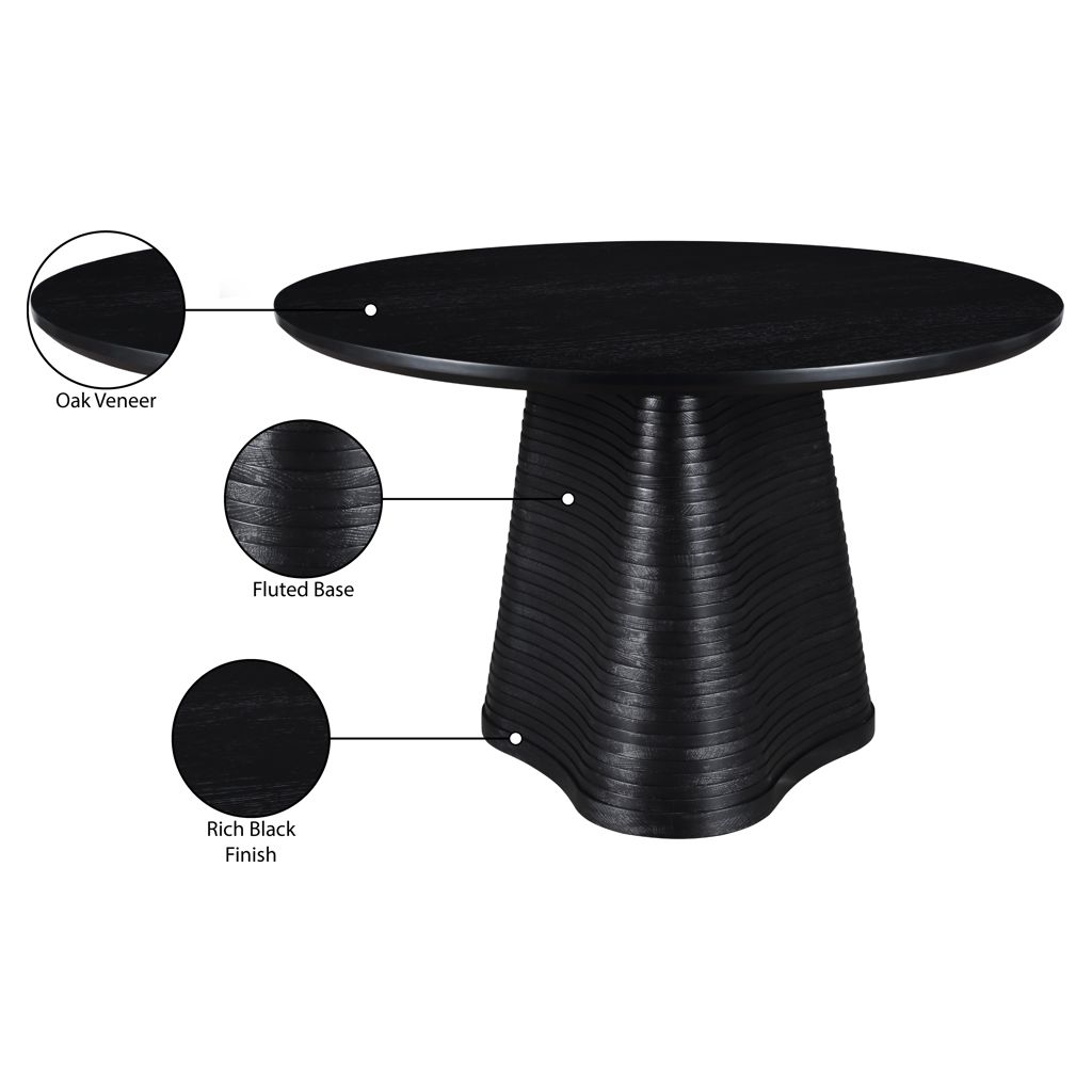 Indulge in the allure of the black Bernada Dining Table by Meridian Furniture. Its captivating design and luxurious black finish elevate any space with effortless elegance.