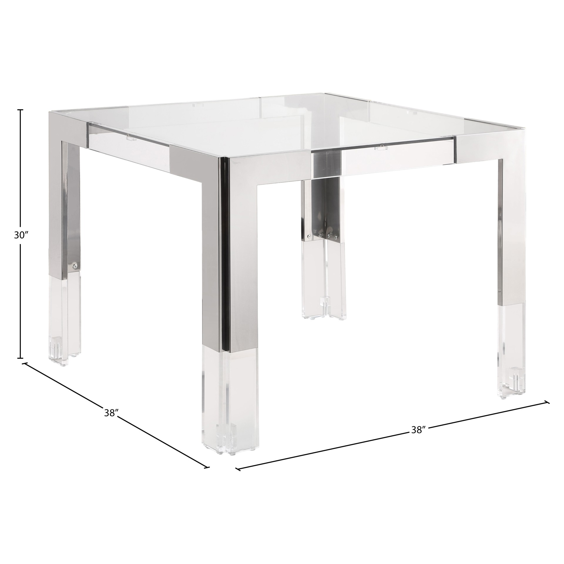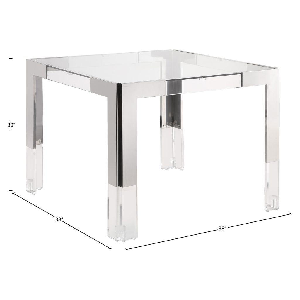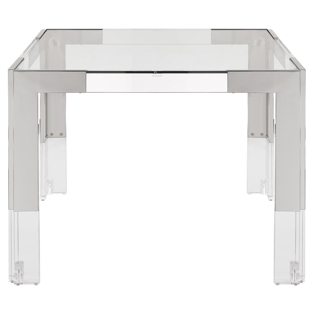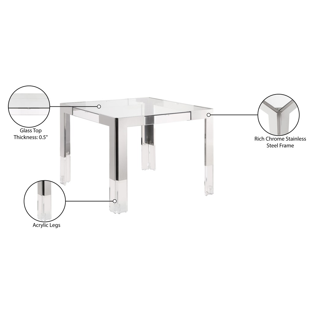 Acrylic legs crown the chrome stainless steel frame, adding to its contemporary feel.