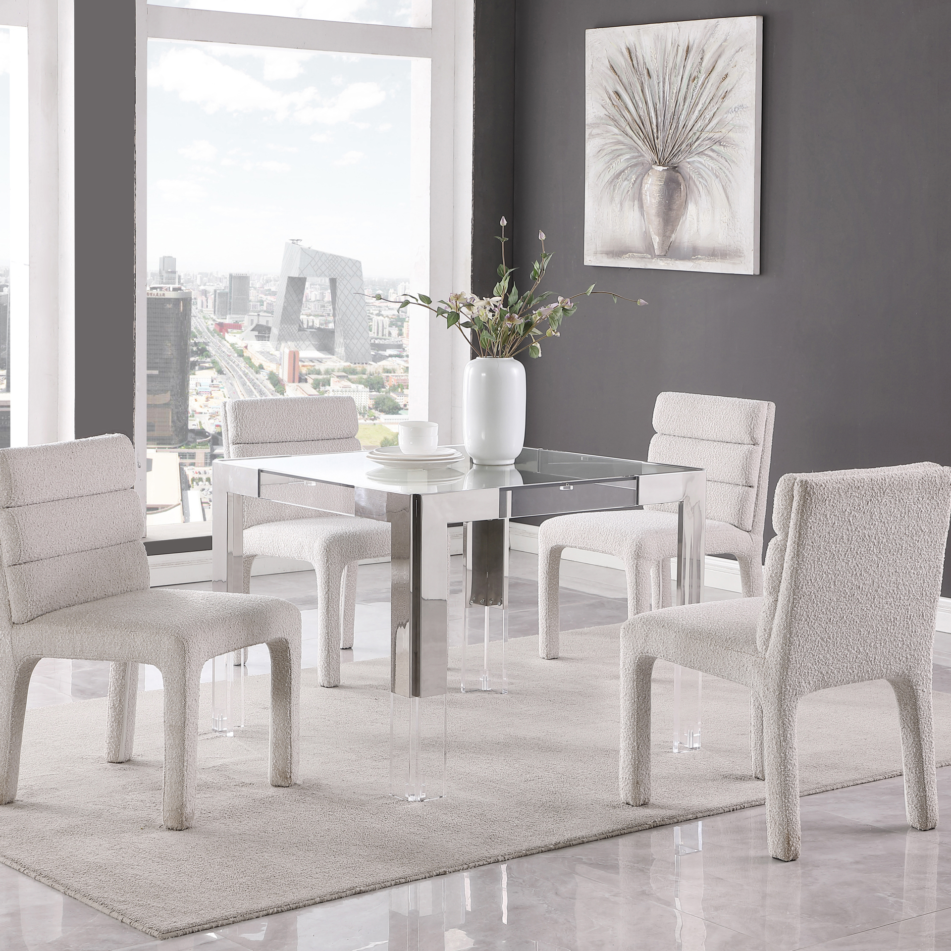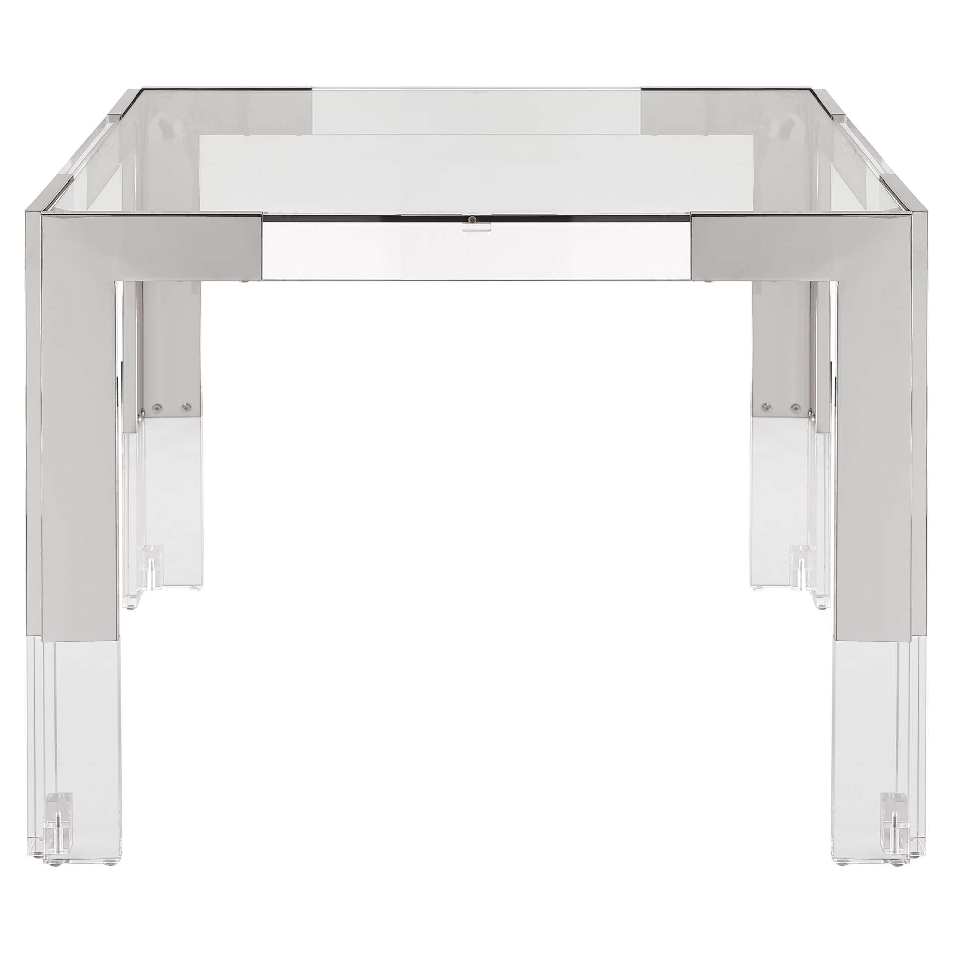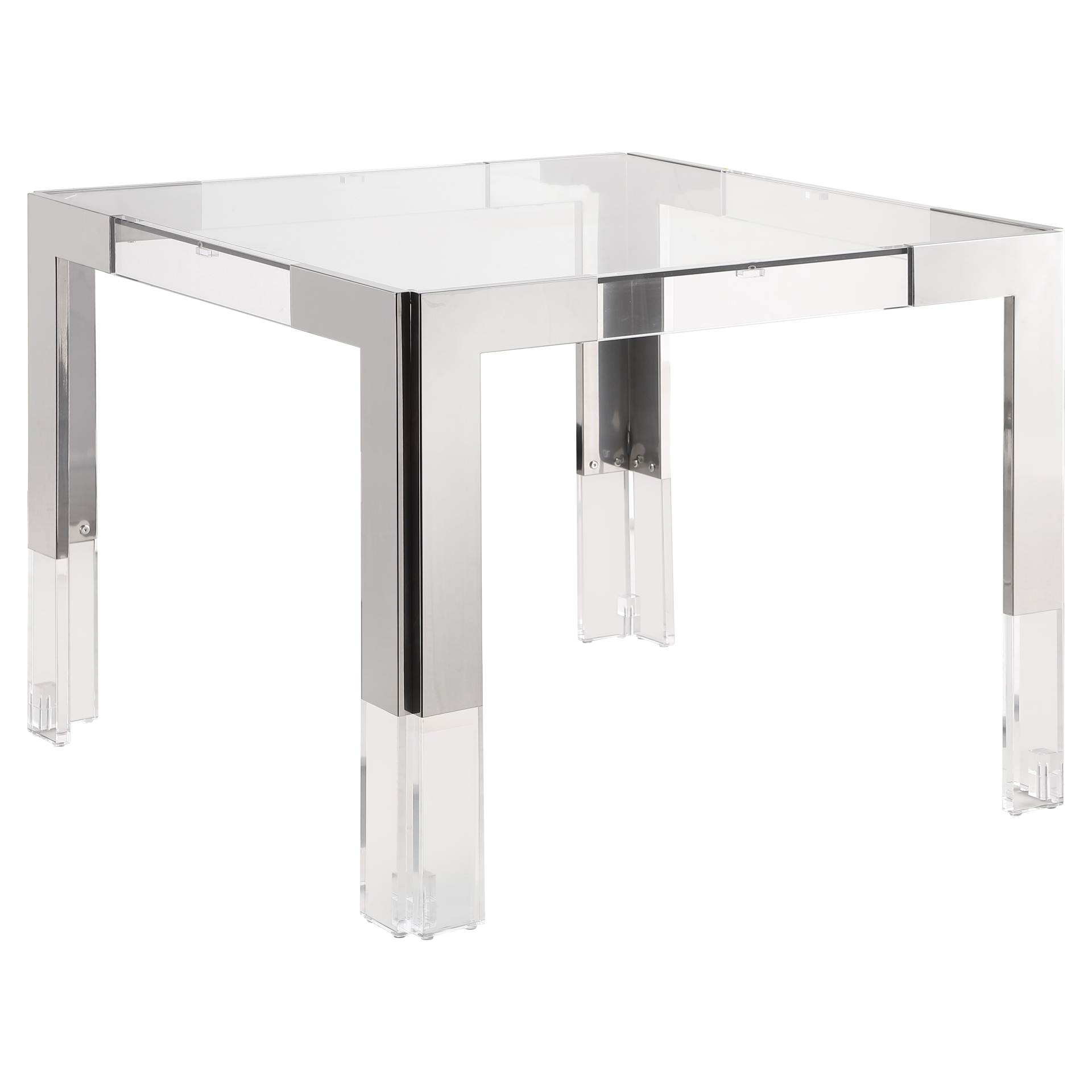 Acrylic legs crown the chrome stainless steel frame, adding to its contemporary feel.