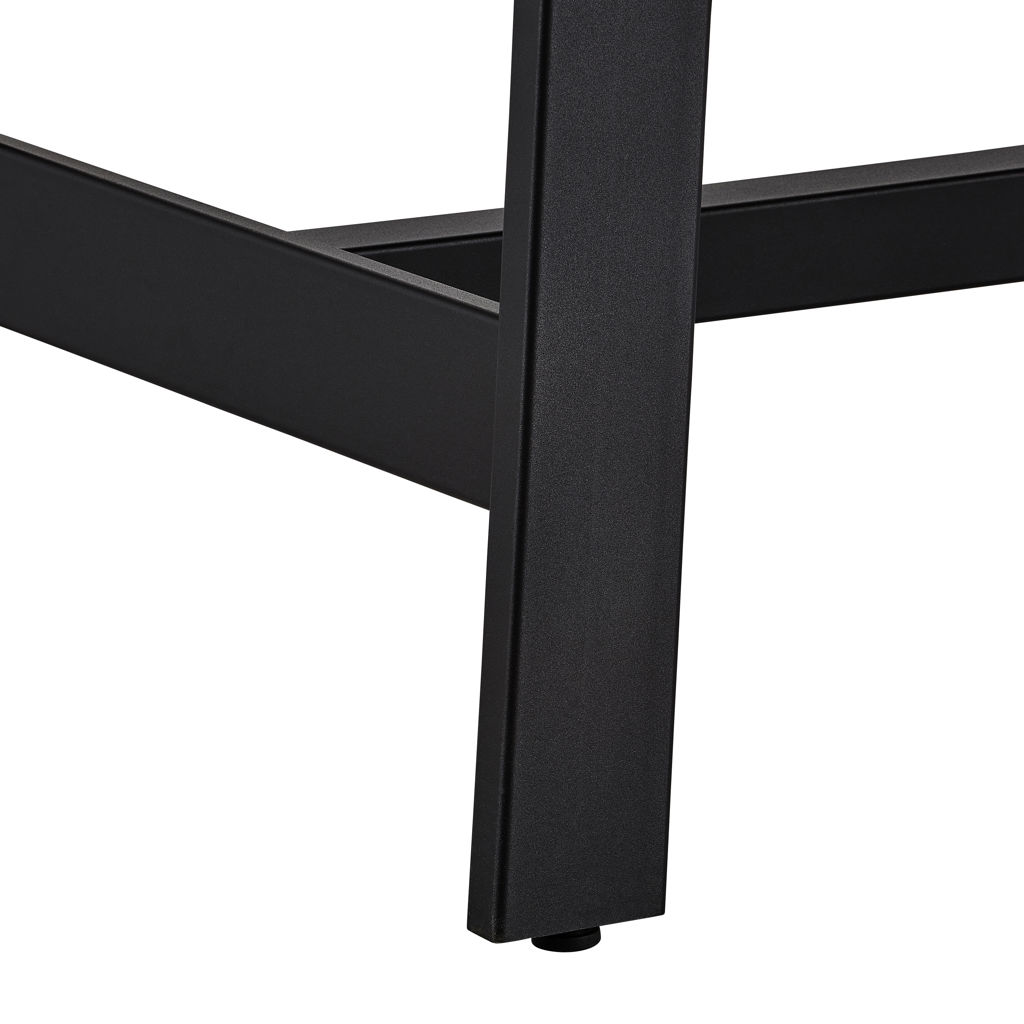 The black metal frame provides outstanding stability while creating a striking contrast. Unlike solid wood, this table is resistant to stains, scratches, and moisture, ensuring lasting beauty without demanding maintenance.