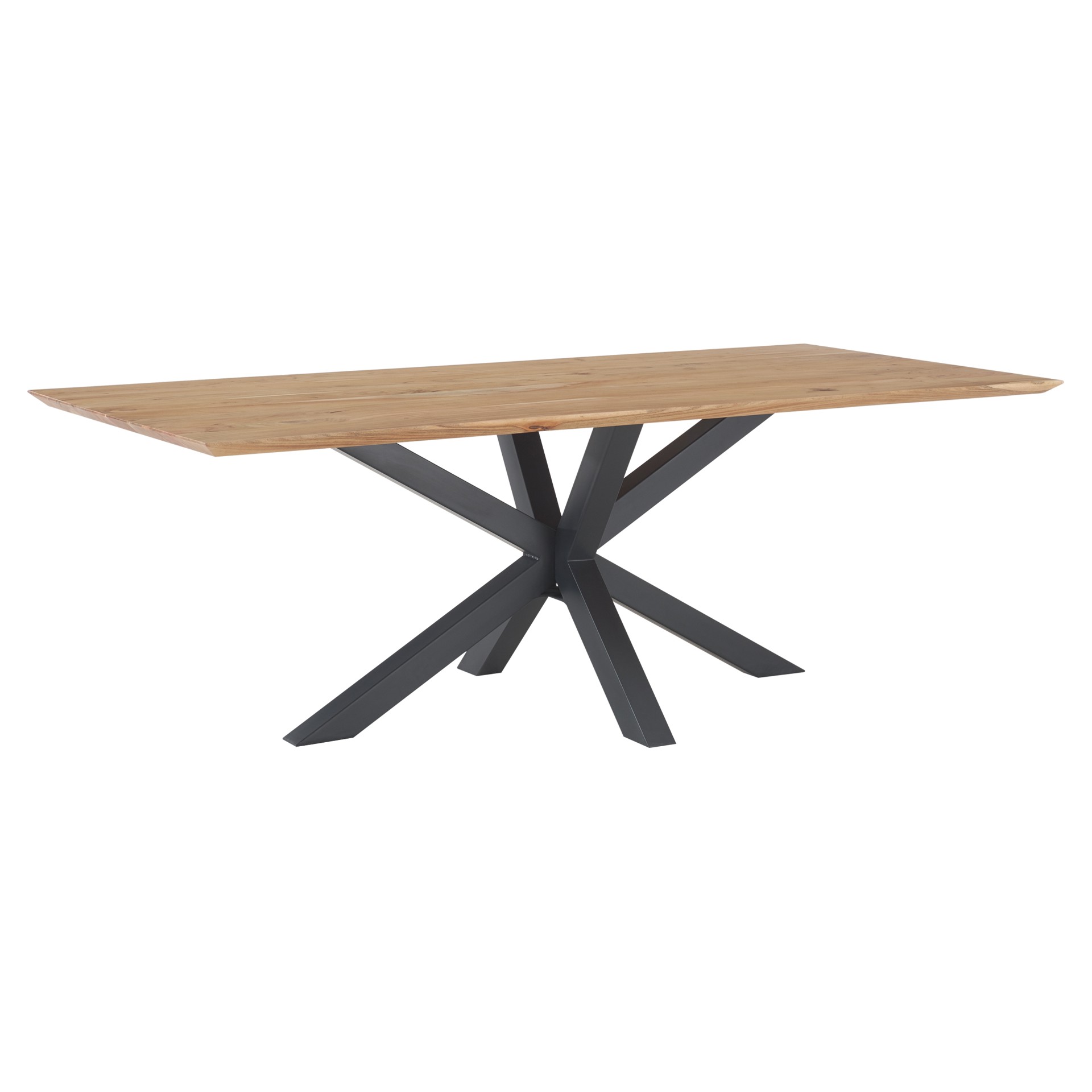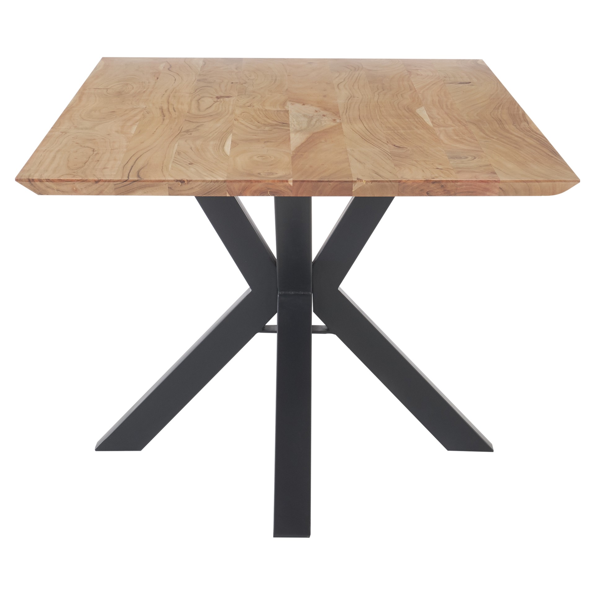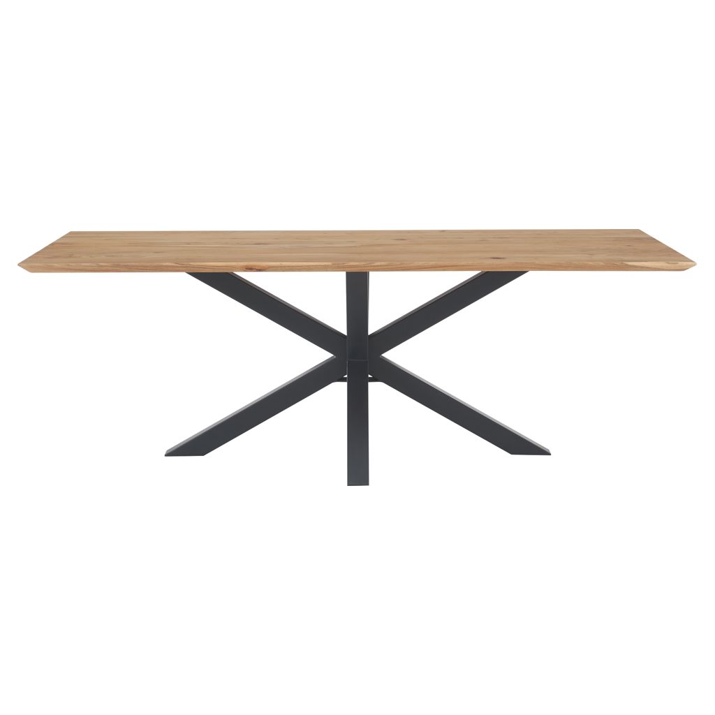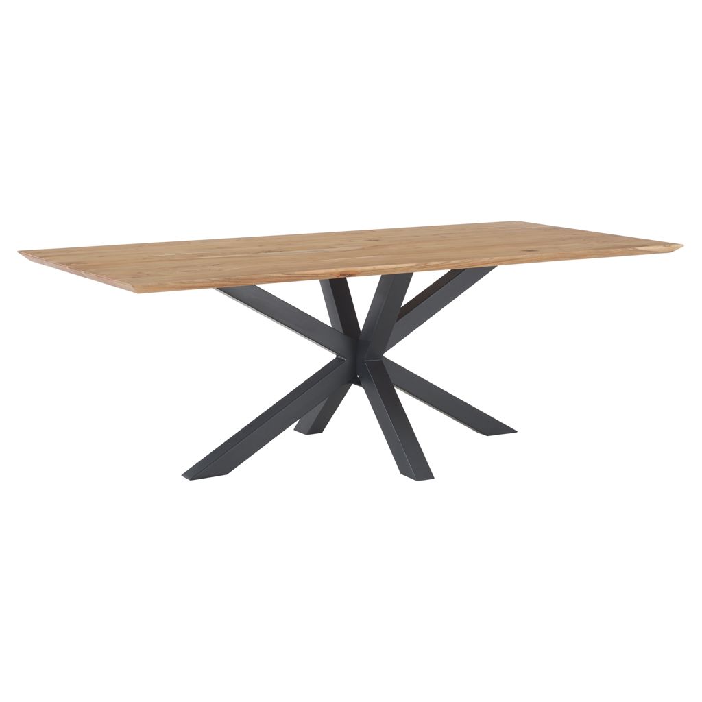 This dining table perfectly combines elegance and strength to create the heart of your home. Its natural wood tabletop with expressive grain brings warmth and authenticity to your space, while the black metal base ensures unwavering stability.