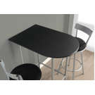 Beautify your dining room with this stylish bar table that won't go unnoticed in your home. Enhanced with a contemporary half-moon design, the bistro table features sturdy silver metal legs and a smooth black finished counter. At the perfect height, the table is ideal for cocktails, snacks and decorative items. This table sits well against a wall to save space, making it a versatile option in small homes, apartments or condos. Combine it with matching stools (not included) to complete your mini bistro. Enhanced with sturdy silver metal legs for a contemporary look. Ideal for small homes, condos and apartments, this bistro table seats 2 people. The bar table features a smooth black finished counter that is perfect for drinks, snacks and decorative items. Complete your home bar collection with a set of stools (sold separately).