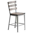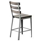 Here is the stool you need to complete the industrial look of your dining room. Its clean lines and slatted backrest with visible screws perfectly align with the expected style. Notice the angled corner design front legs and the others with a rectangular shape. It's all about the attention to detail!