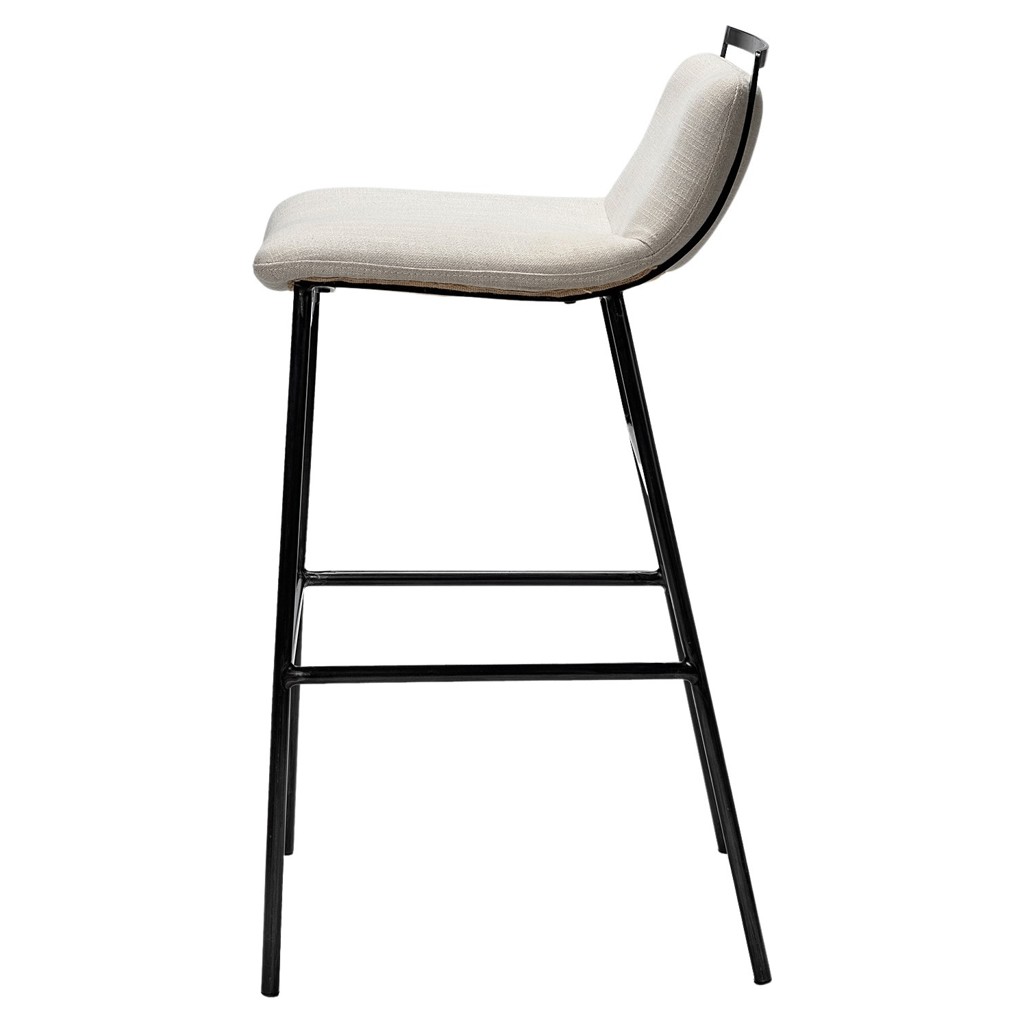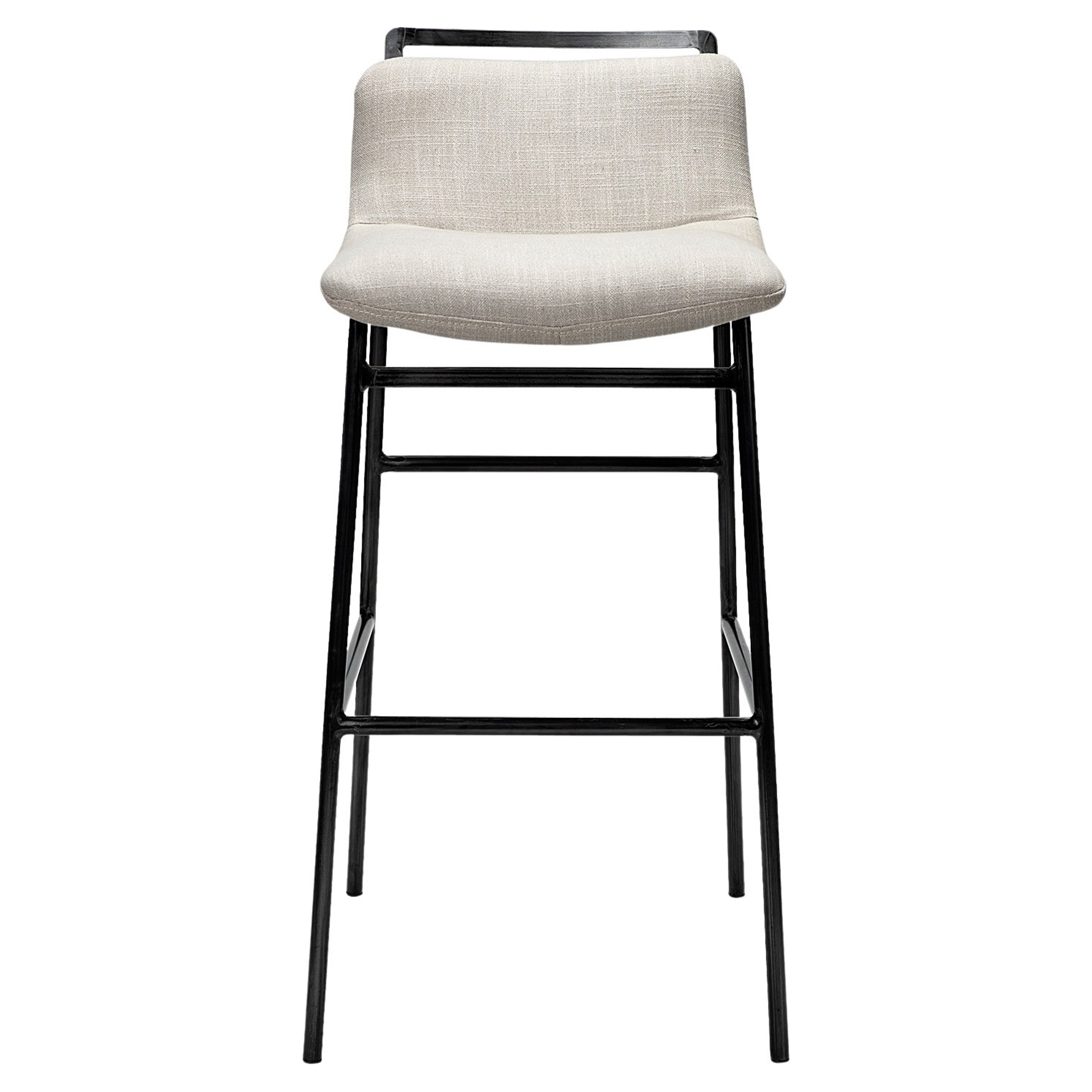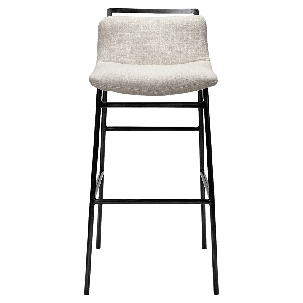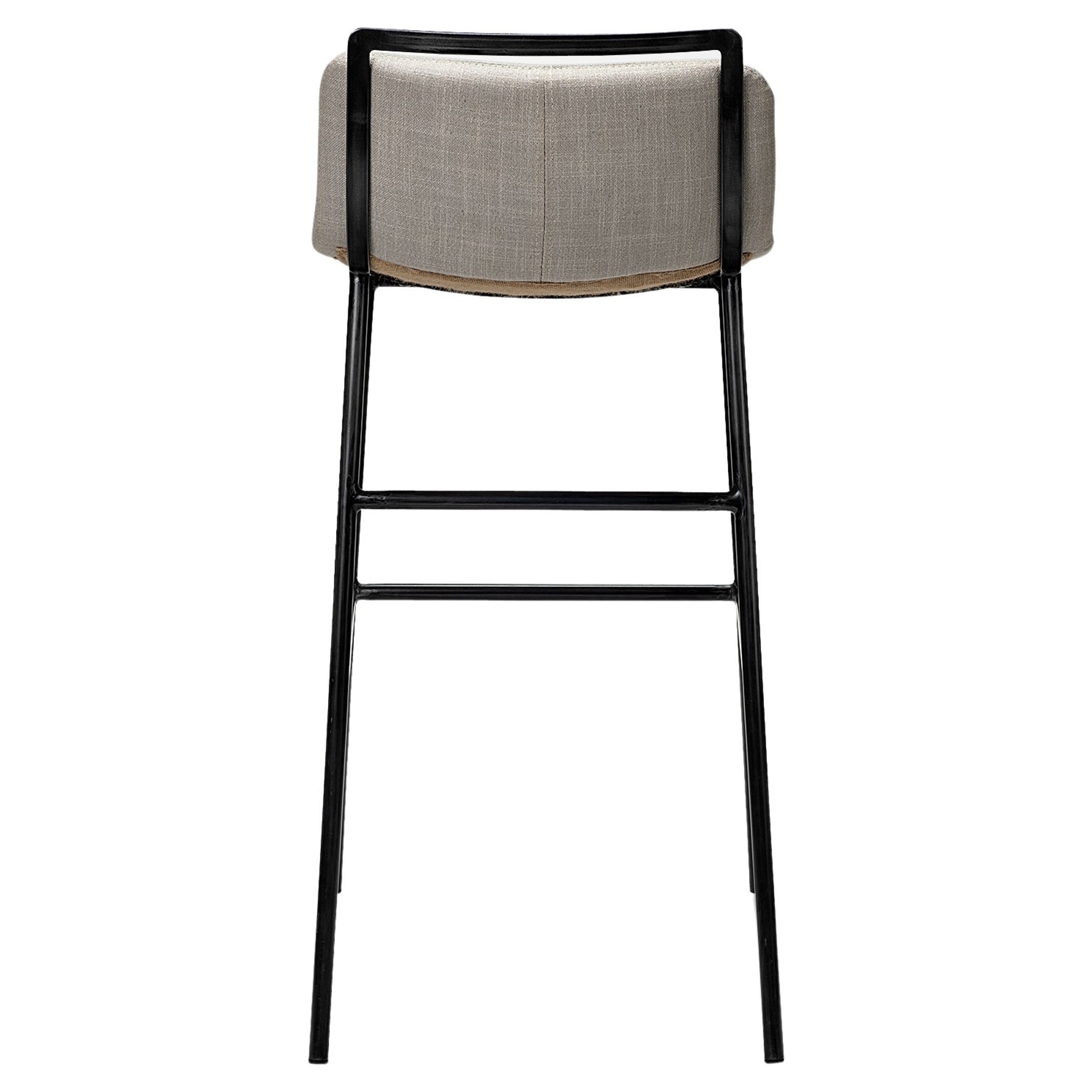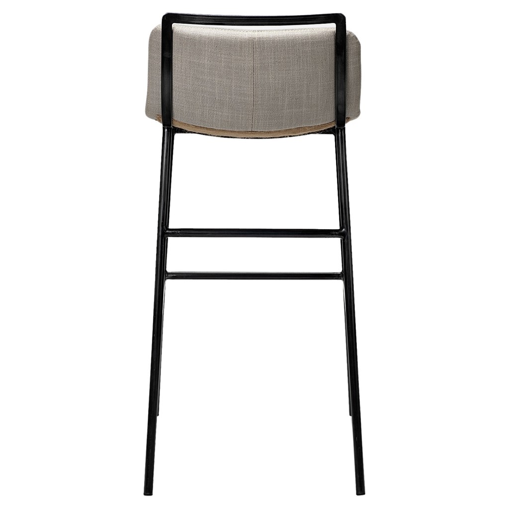 The seat is mounted on a sturdy matte black iron frame with a footrest to ensure comfortable seating.