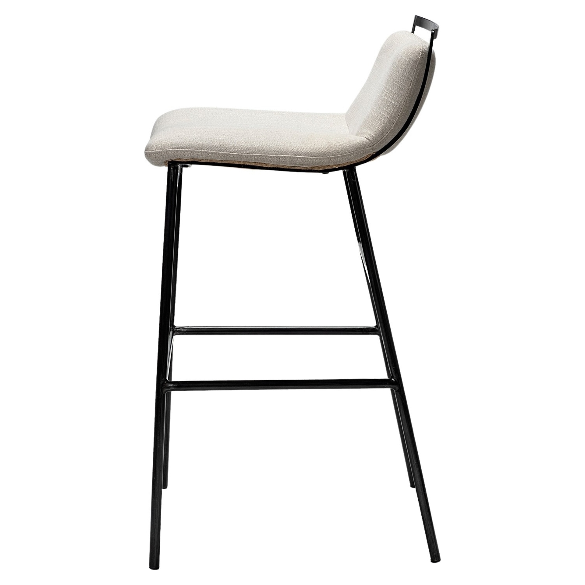 The Kavalan I is a counter stool with a low-back, fabric-covered seat.