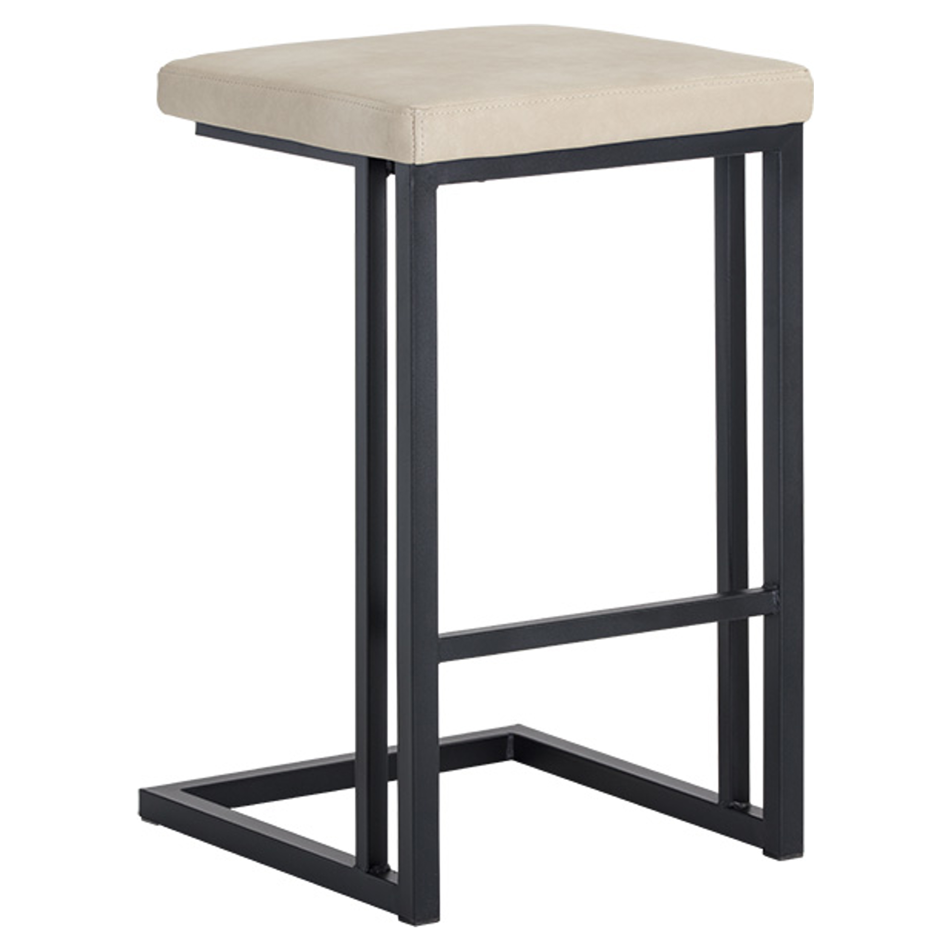 A modern industrial stool from our Urban Unity collection featuring a backless seat in onyx faux leather and a cantilever frame with footrest in grey powder coated steel. Designed for residential and commercial environments. Suitable for various dining, kitchen and bar spaces of all sizes.