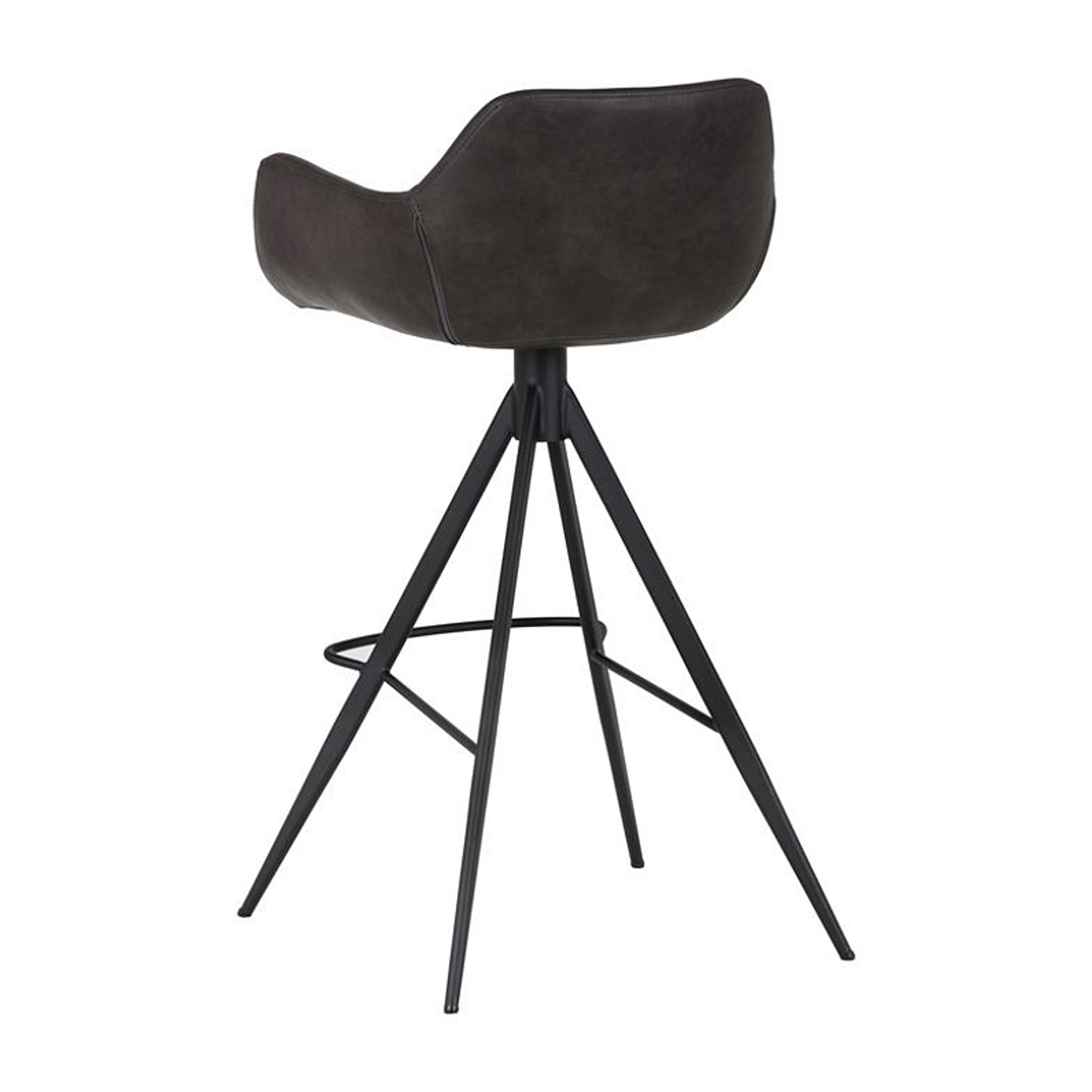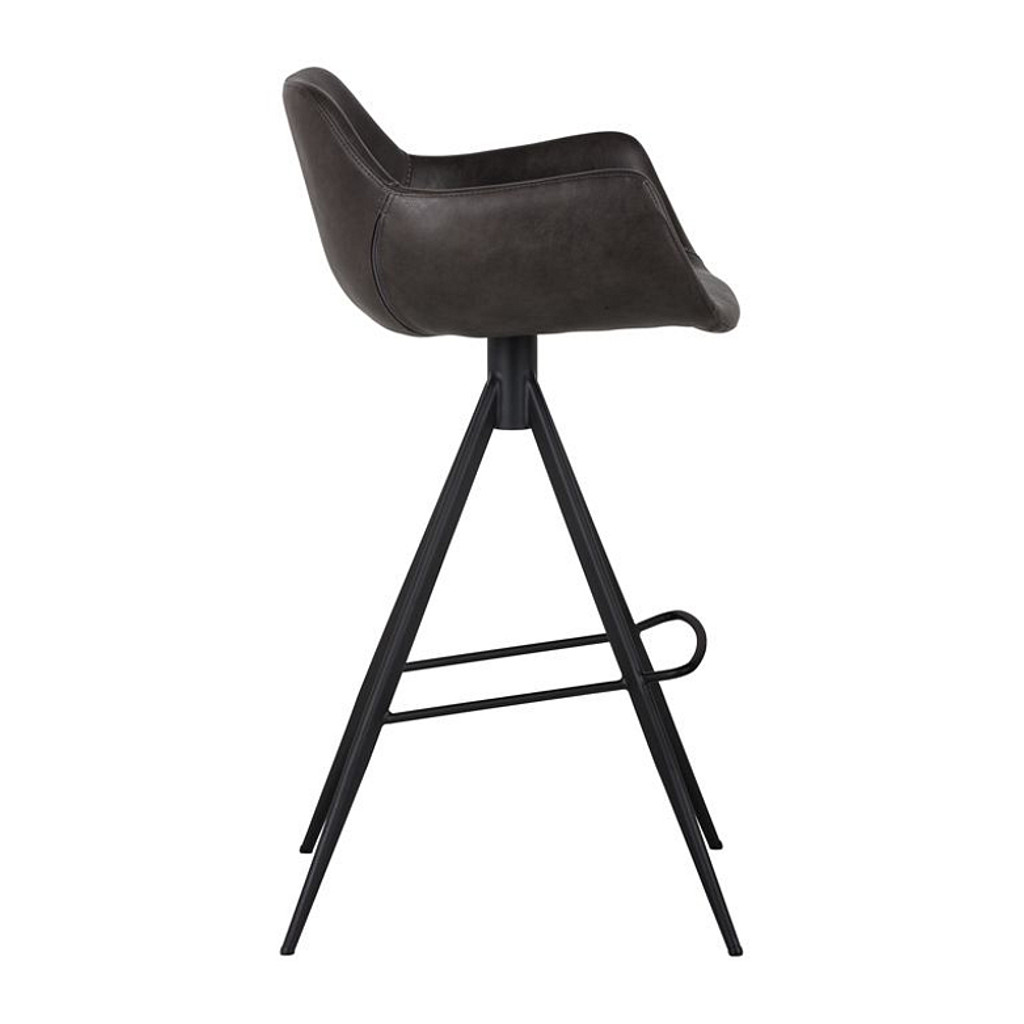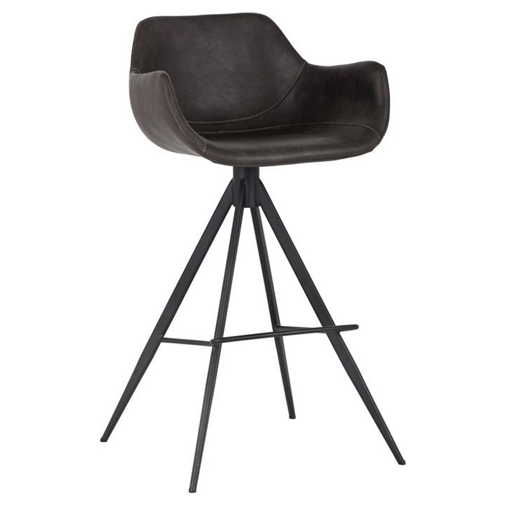 This comfortable swivel bar stool is a blend of modern and urban design. Made of leatherette with black powder-coated iron legs and footrest. Suitable for residential and commercial environments and a variety of dining, kitchen, and bar spaces of all sizes.