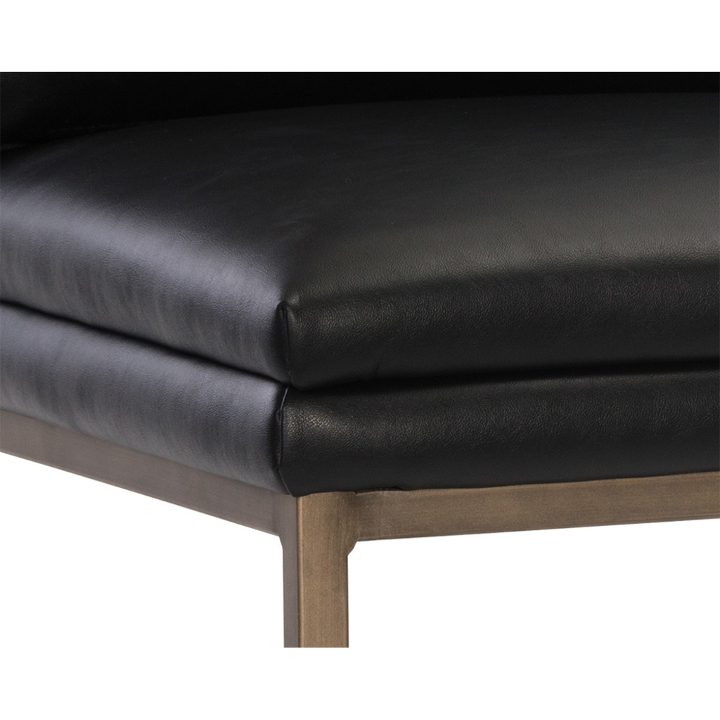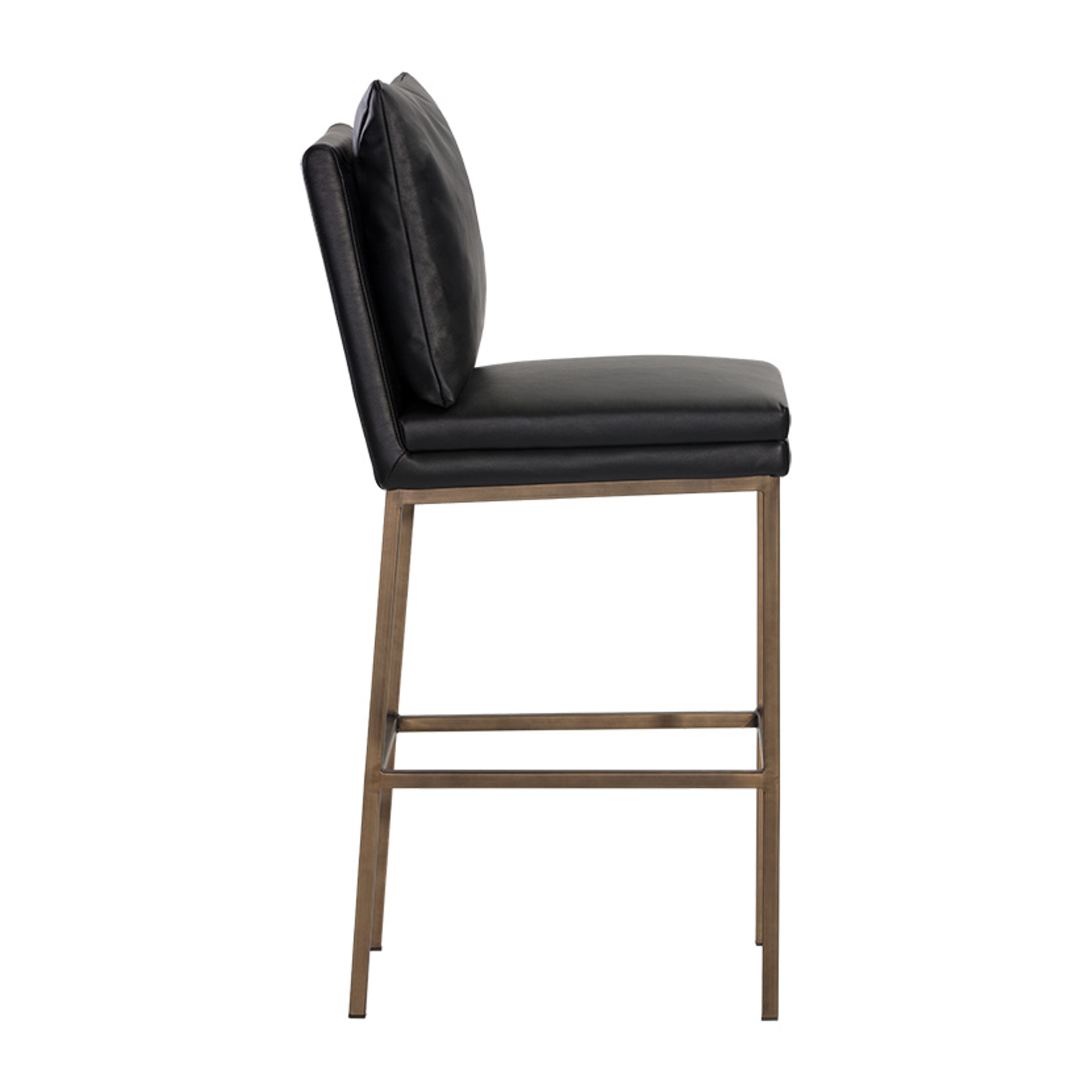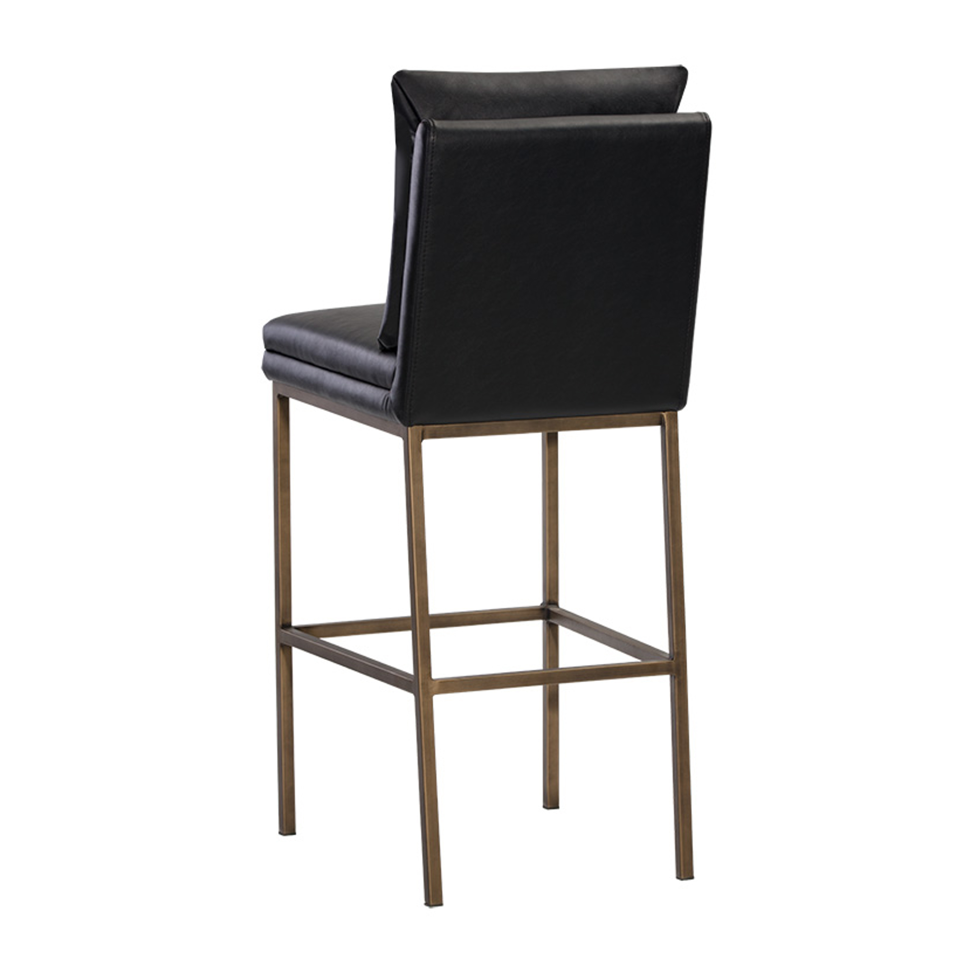 This stool from our 5West collection features a sleek and comfortable design. Designed with a black leatherette cushion back and antique brass finished iron legs. Also available in cream leatherette. Suitable for a variety of dining, kitchen, and bar spaces of all sizes.