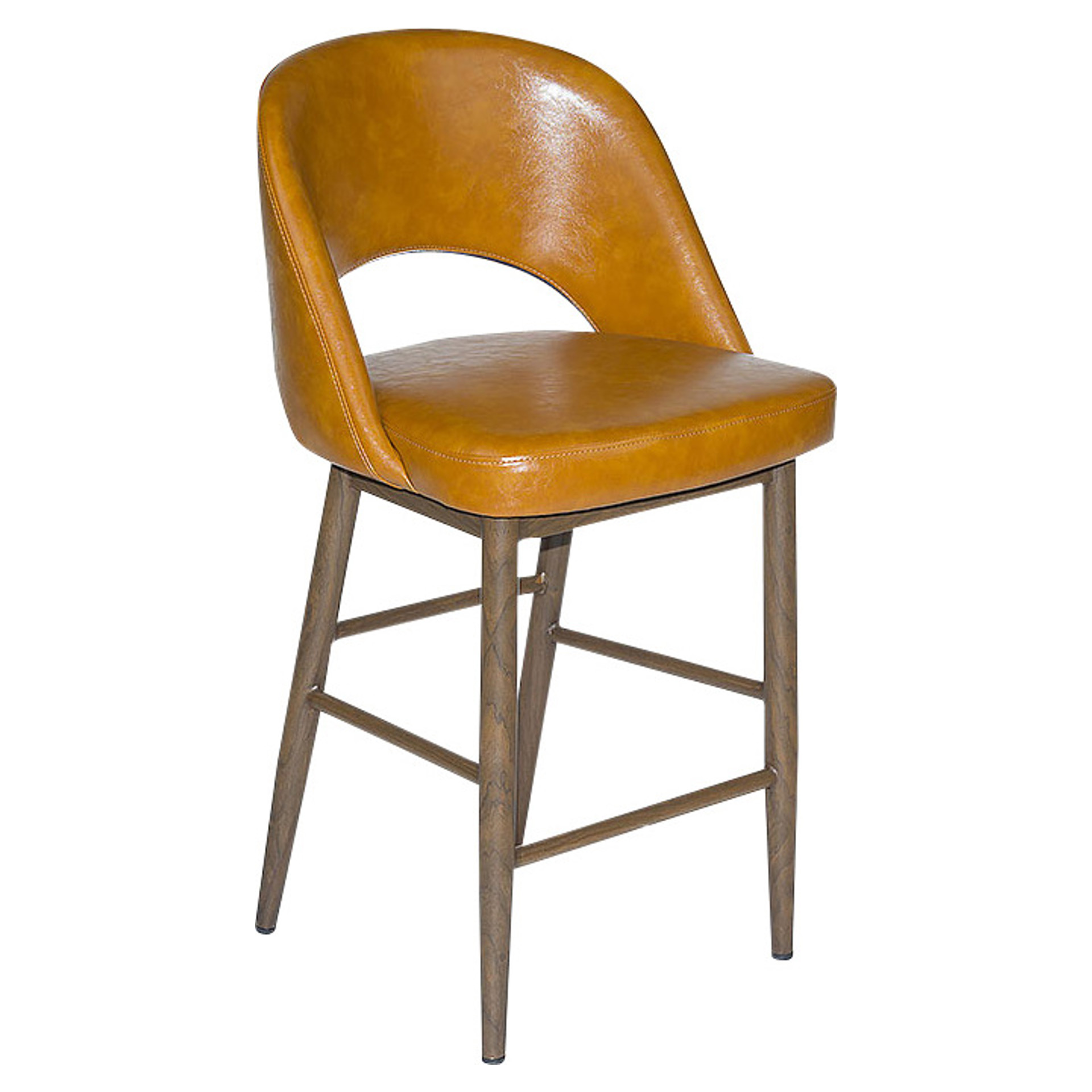 Transform your space with this refined counter stool. Its tan faux-leather seat provides exceptional comfort, while the ergonomic shape fits your contours perfectly. The elegant cutout in the backrest adds a modern, airy touch.