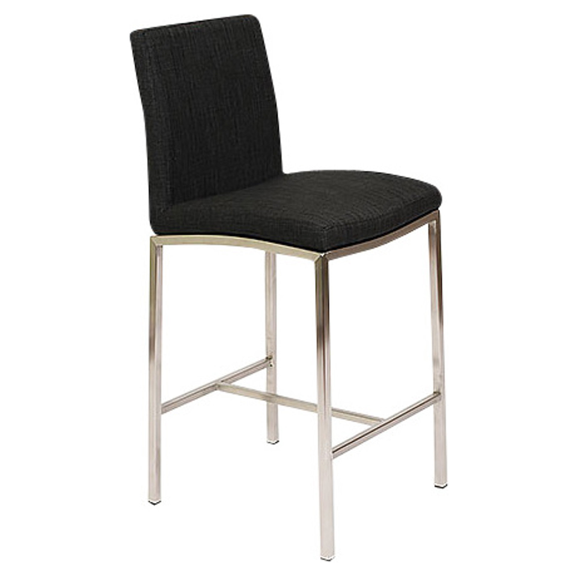 Adam is a bar stool that offers a slightly higher back than its peers. The back and seat are covered in black upholstered faux leather, supported by a stainless steel base with the addition of a footrest for maximum stability and comfort. Its timeless lines make it easy to blend into any kitchen design.