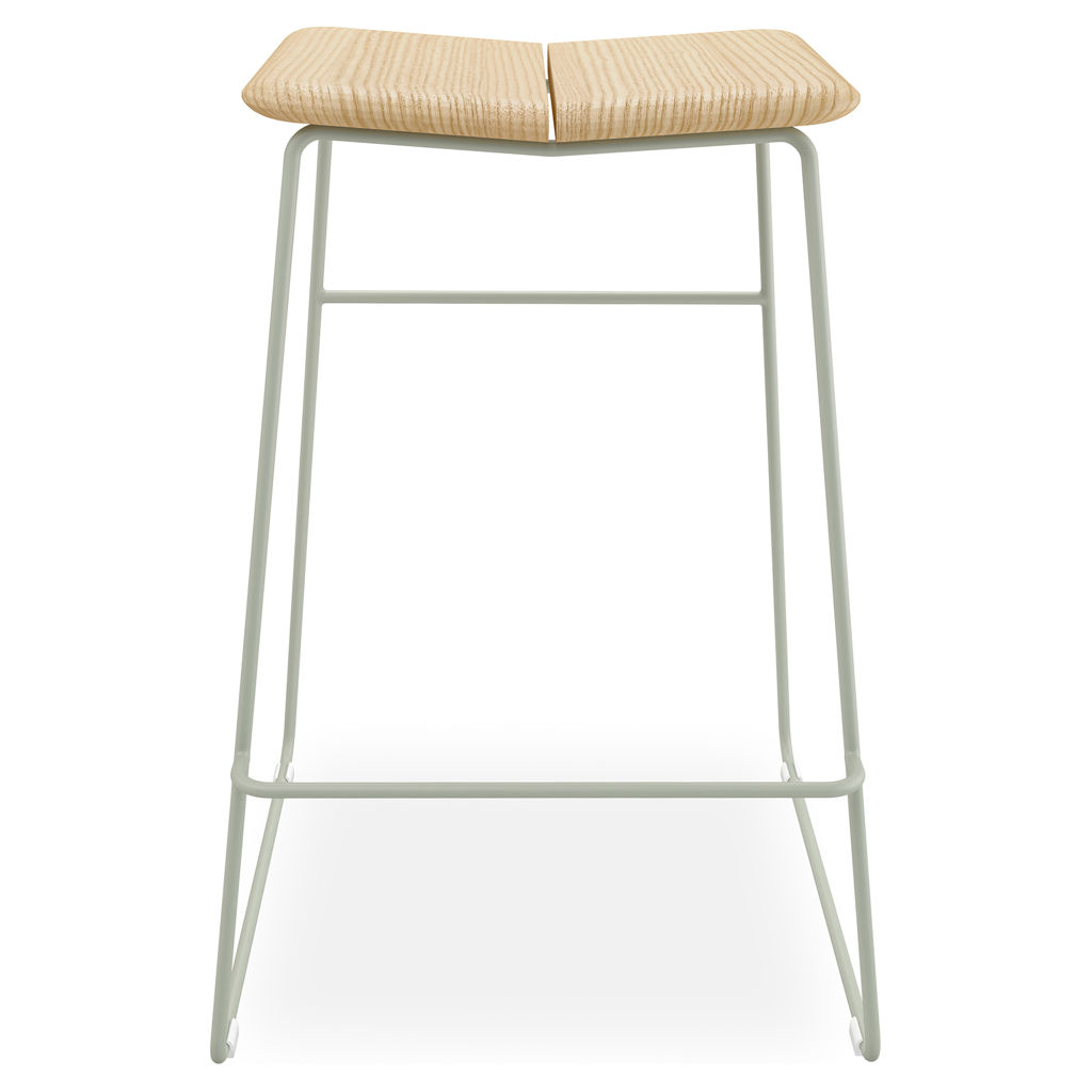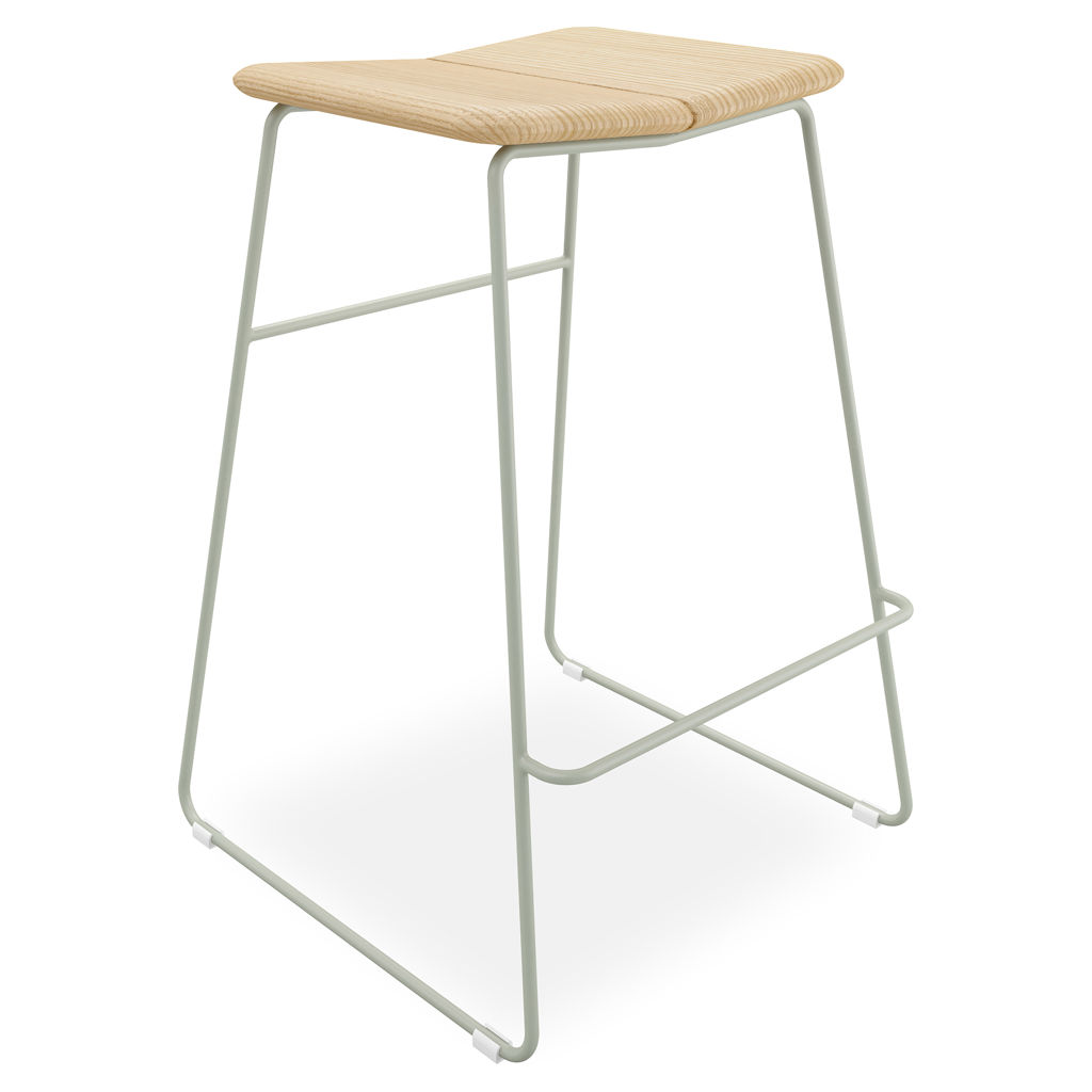 Inspired by contemporary Scandinavian design, the Aero bar stool features a gently rounded seat composed of two perfectly balanced pieces of FSC®-certified solid ash wood resting on an airy, curved metal frame. Playful and lightweight, it's the ideal perch for aperitif hour. Choose from three contemporary shades to bring your décor to life. Also available as a stool and counter stool.