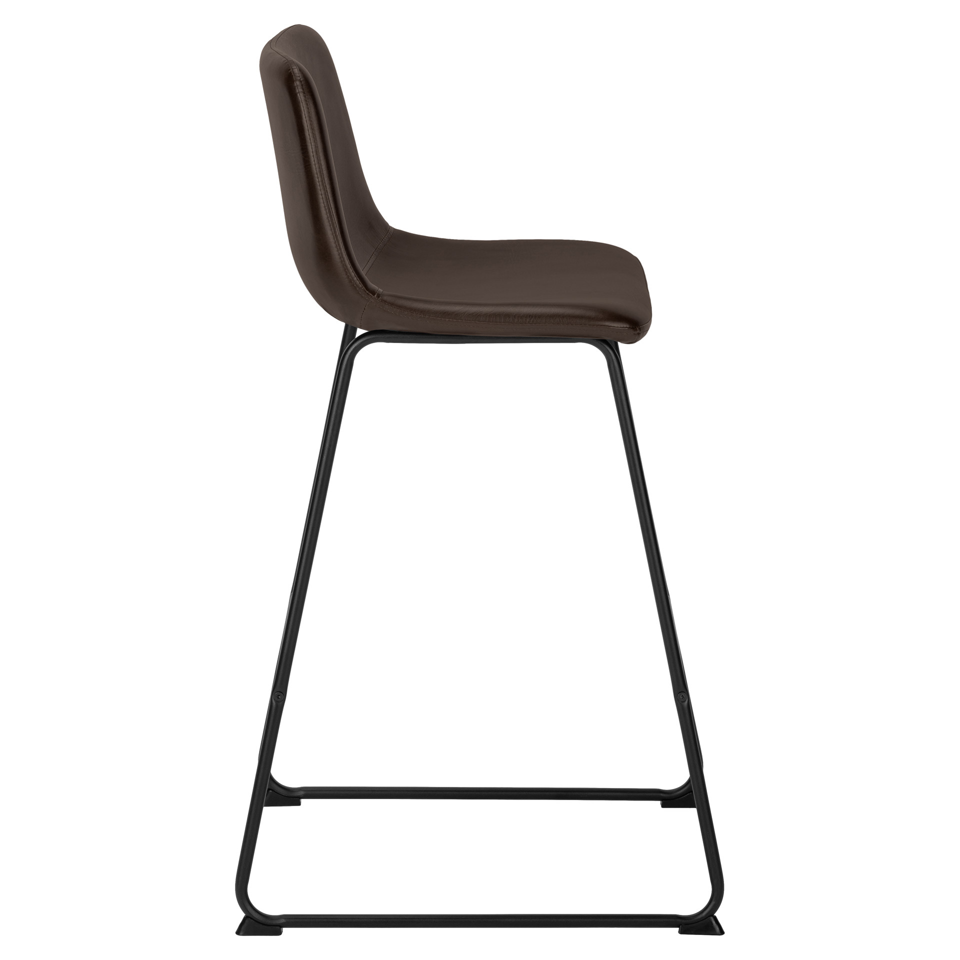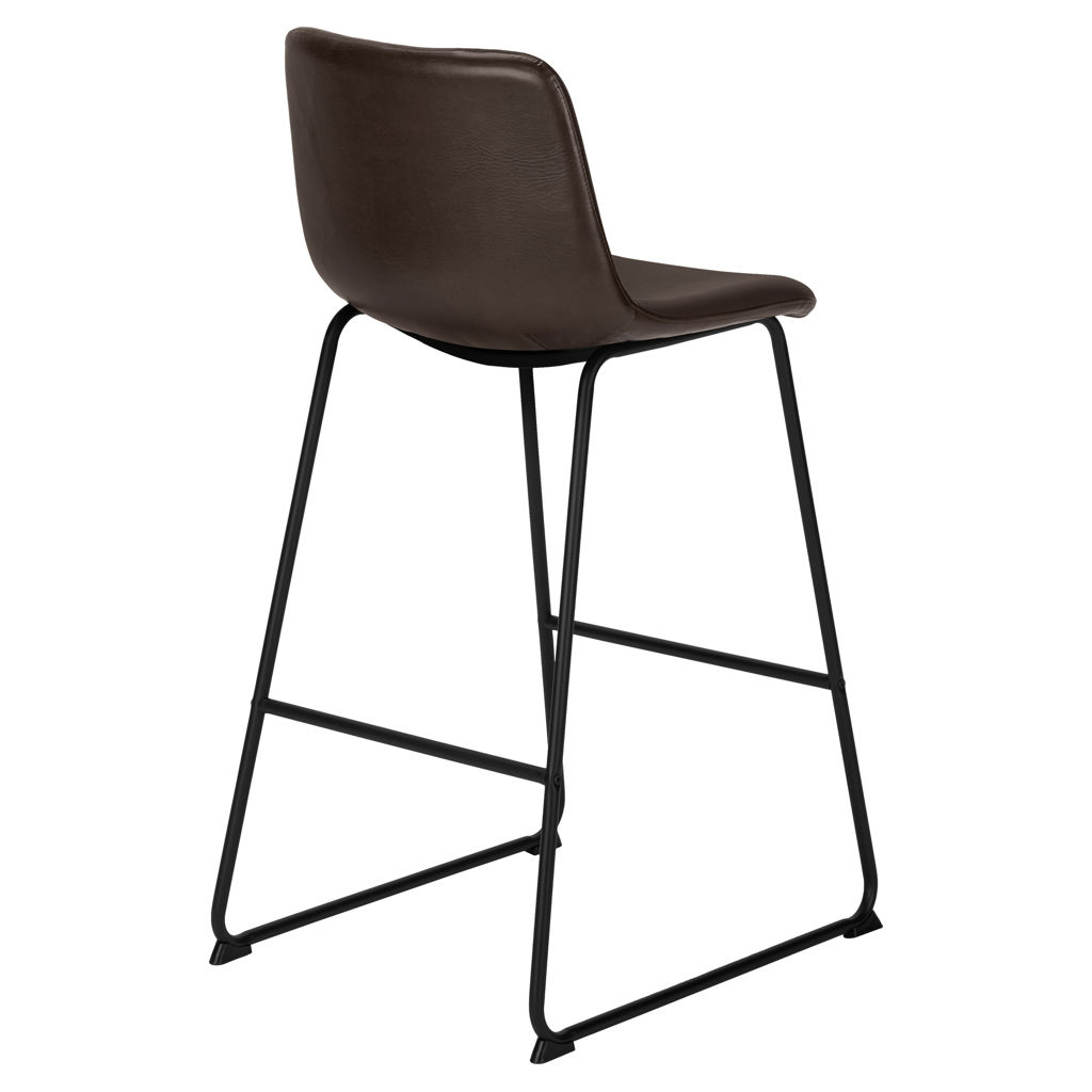 This highchair is ideal for standing offices. The curved back and comfortable seat are supported by a slim white metal frame. It can also be used as a bar stool, adding style to any kitchen or home bar. The seat is covered in a brown leatherette upholstery and is well padded. It’s ideal for either a long day at work or for a late-night drink. The lower support bar allows you to rest your feet on it.