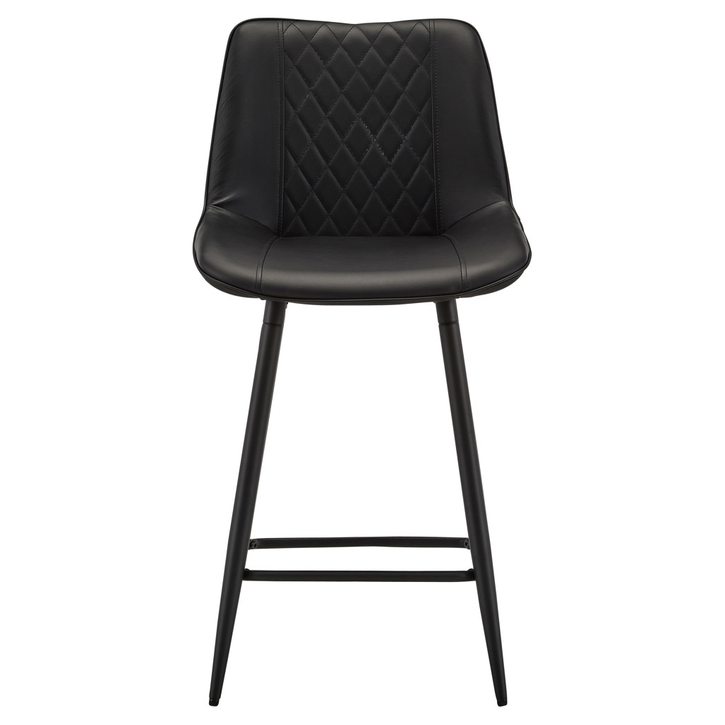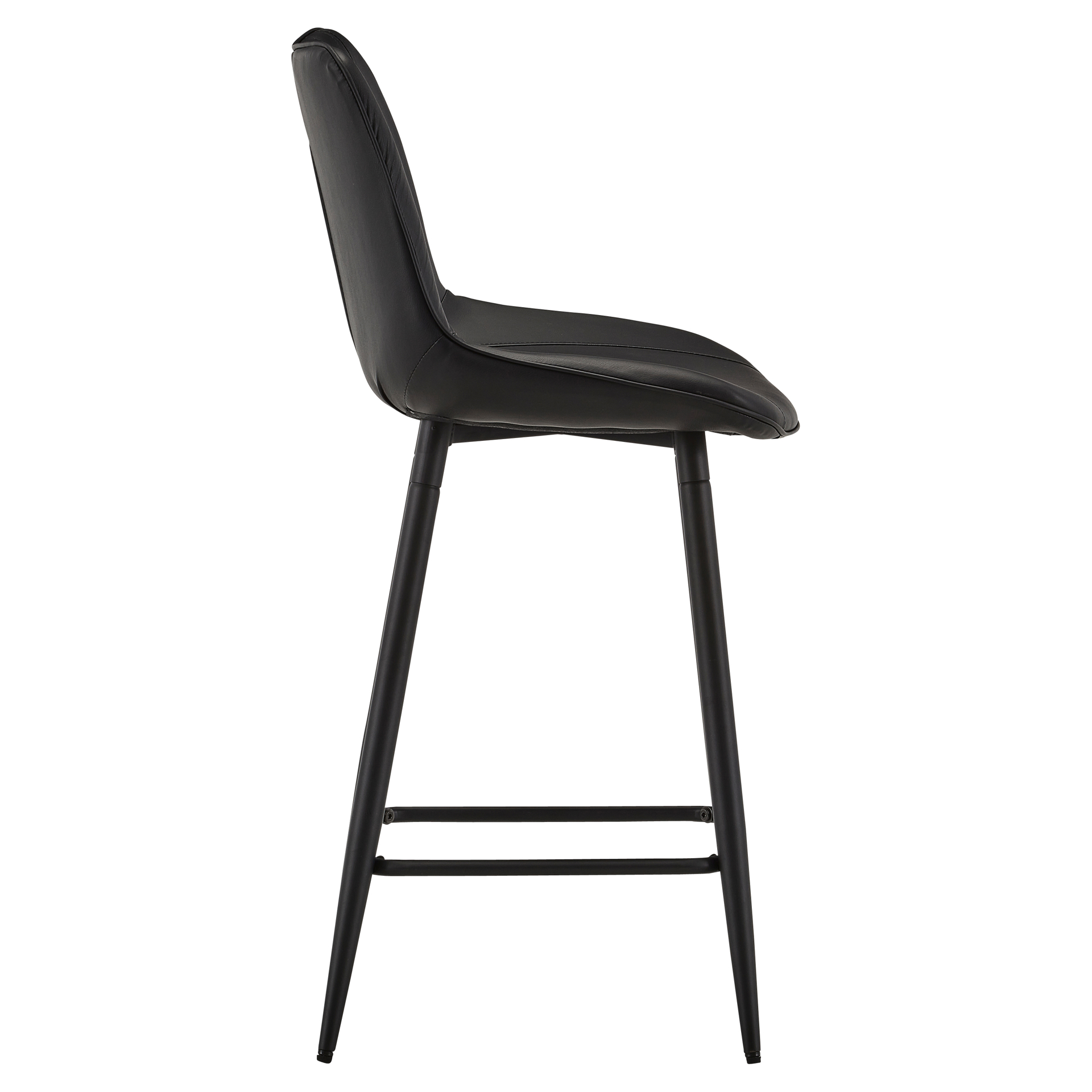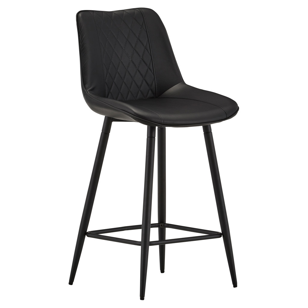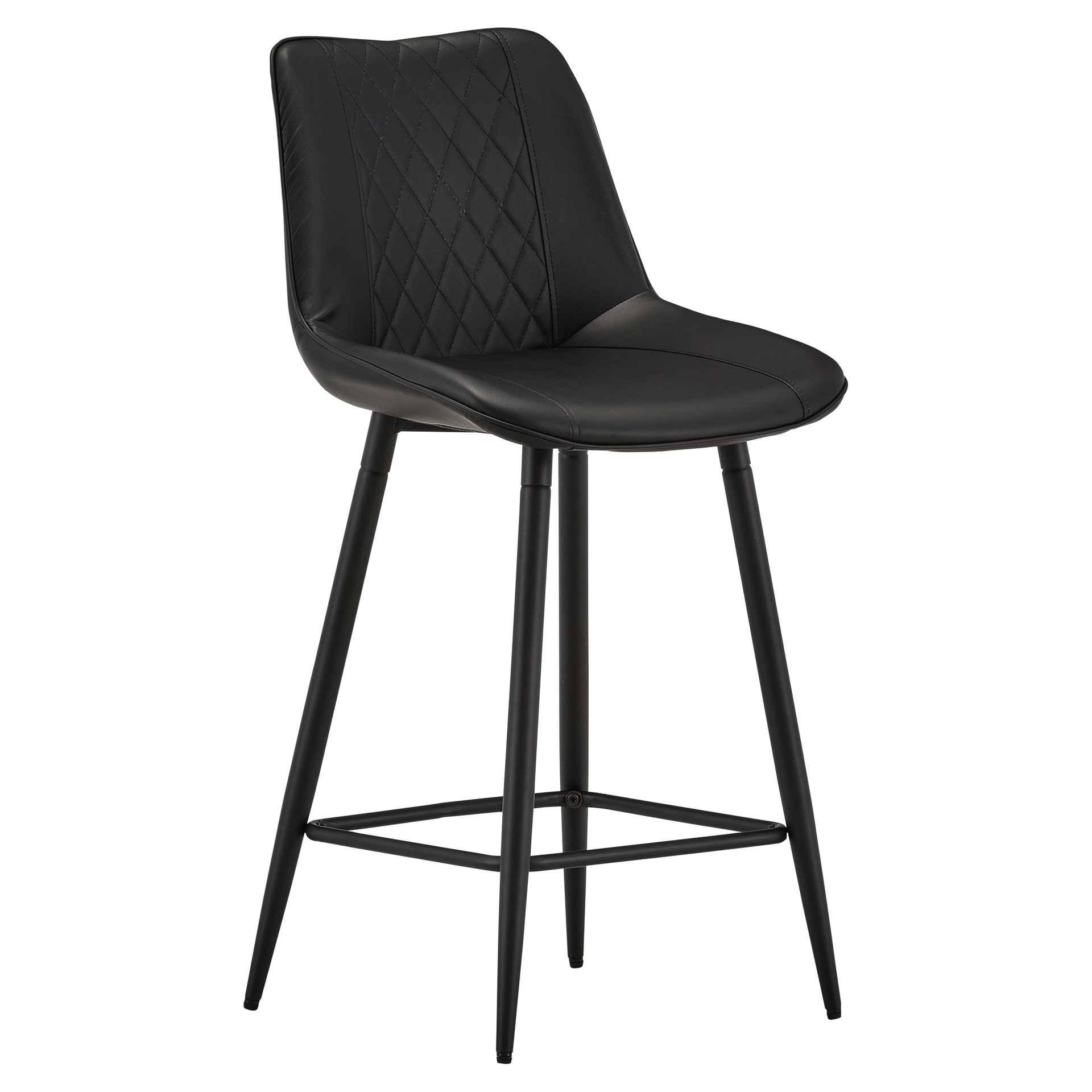 Transform your space with this counter stool featuring a contemporary design. Its black faux leather upholstery offers a sophisticated look that blends seamlessly with any décor, while the quilted details on the backrest add a refined touch.