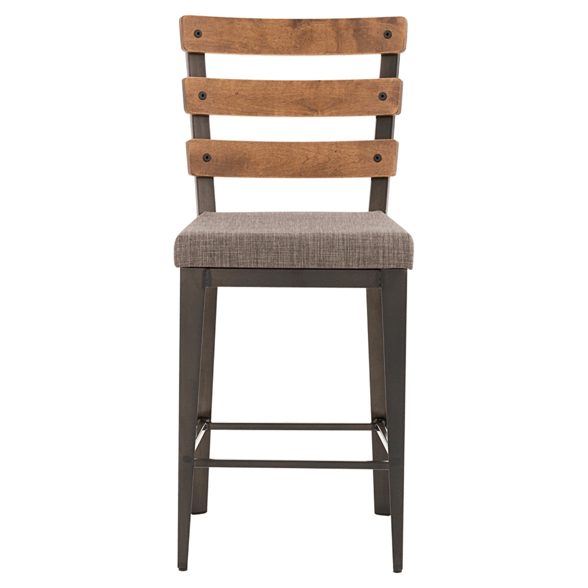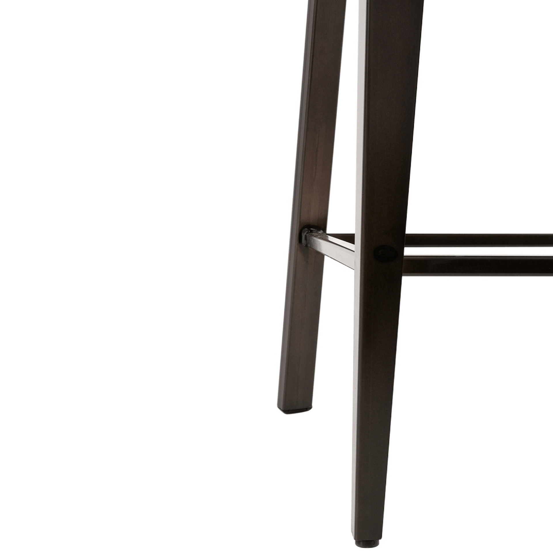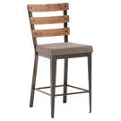 Here is the stool you need to complete the industrial look of your dining room. Its clean lines and slatted backrest with visible screws perfectly align with the expected style. Notice the angled corner design front legs and the others with a rectangular shape. It's all about the attention to detail!